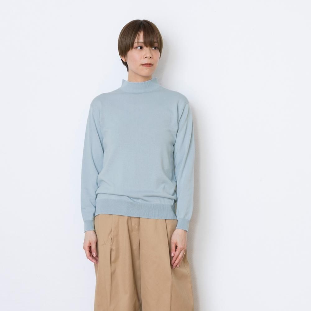 1枚で着ても様になって、ちゃんと存在感のあるハイネックセーターは日常の頼れる味方。 カーディガンやジャケットとのコーディネートにも使いやすい、ベーシックなコットンニット。 風の冷たい春先や秋の始まり、気温が下がる梅雨時期など季節を問わず着られるプルオーバーニットです。