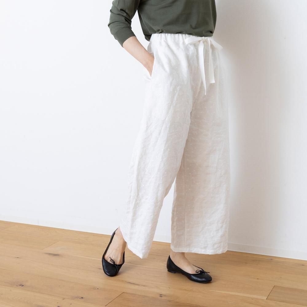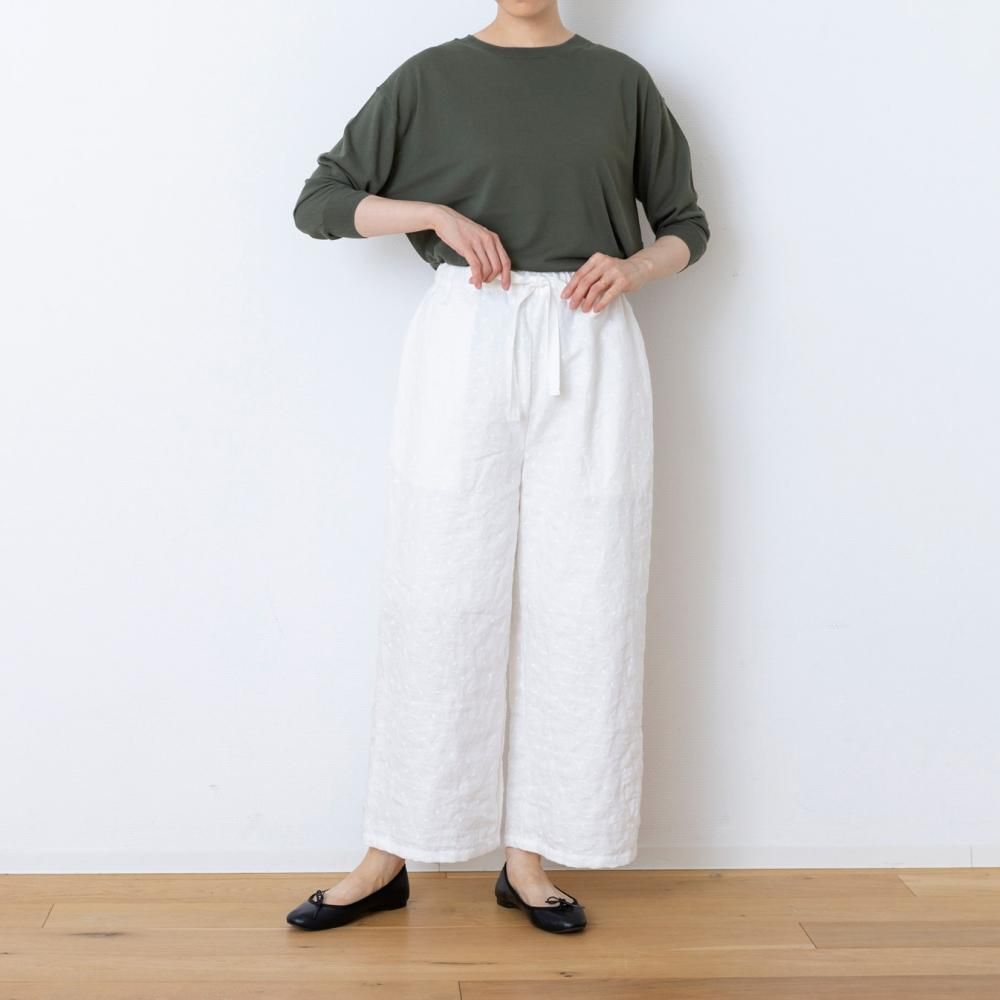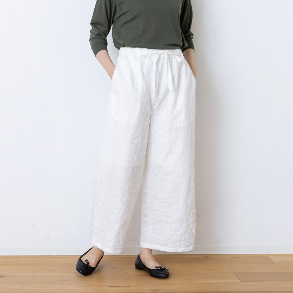 おでかけにもリラックスにも。刺繍リネンパンツ