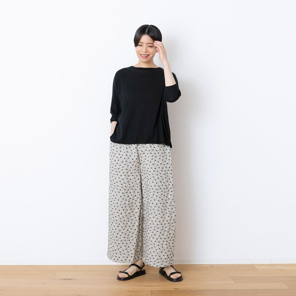 モデル168cm 着用カラー:ベージュ×クロ刺繍