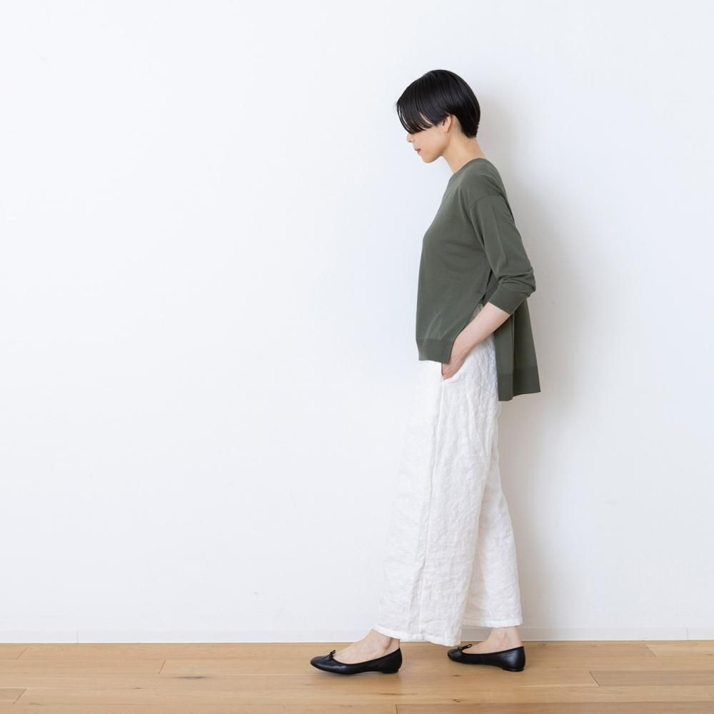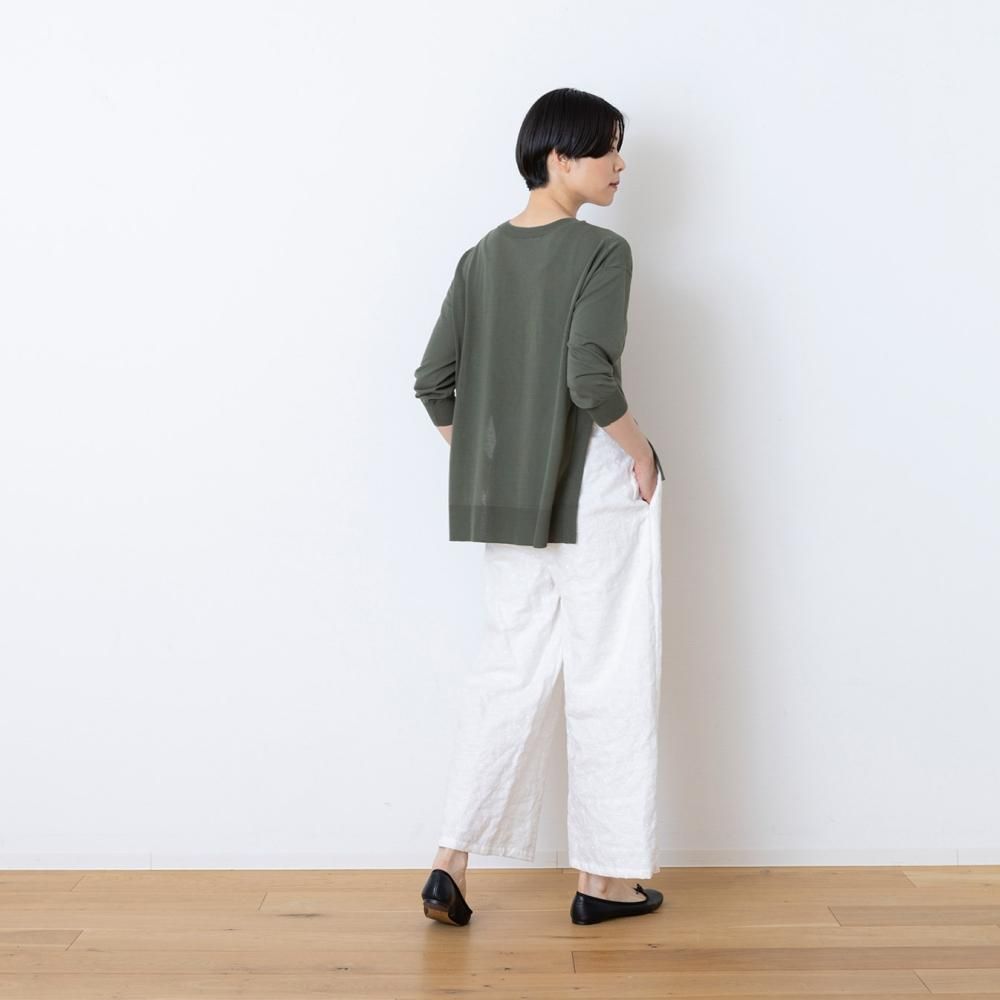 汗をかいた肌にもさらっとドライタッチで気持ち良いリネンパンツ。 ゆったりとしつつ、すっきりときれいなストレートシルエットです。 リネンならではのシワやナチュラルな風合いは、使うほどに表情をかえ愛着が増していきます。