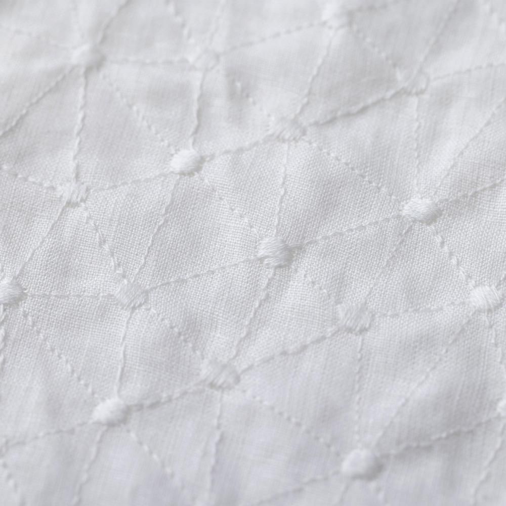 刺繍は星座をモチーフにした「メルッキ」刺繍。 金沢の刺繍作家、高知子さんのデザインを元にエンブロイダリーレースを施しました。 キラキラと光る星座を思わせるモダンな印象の刺繍です。
