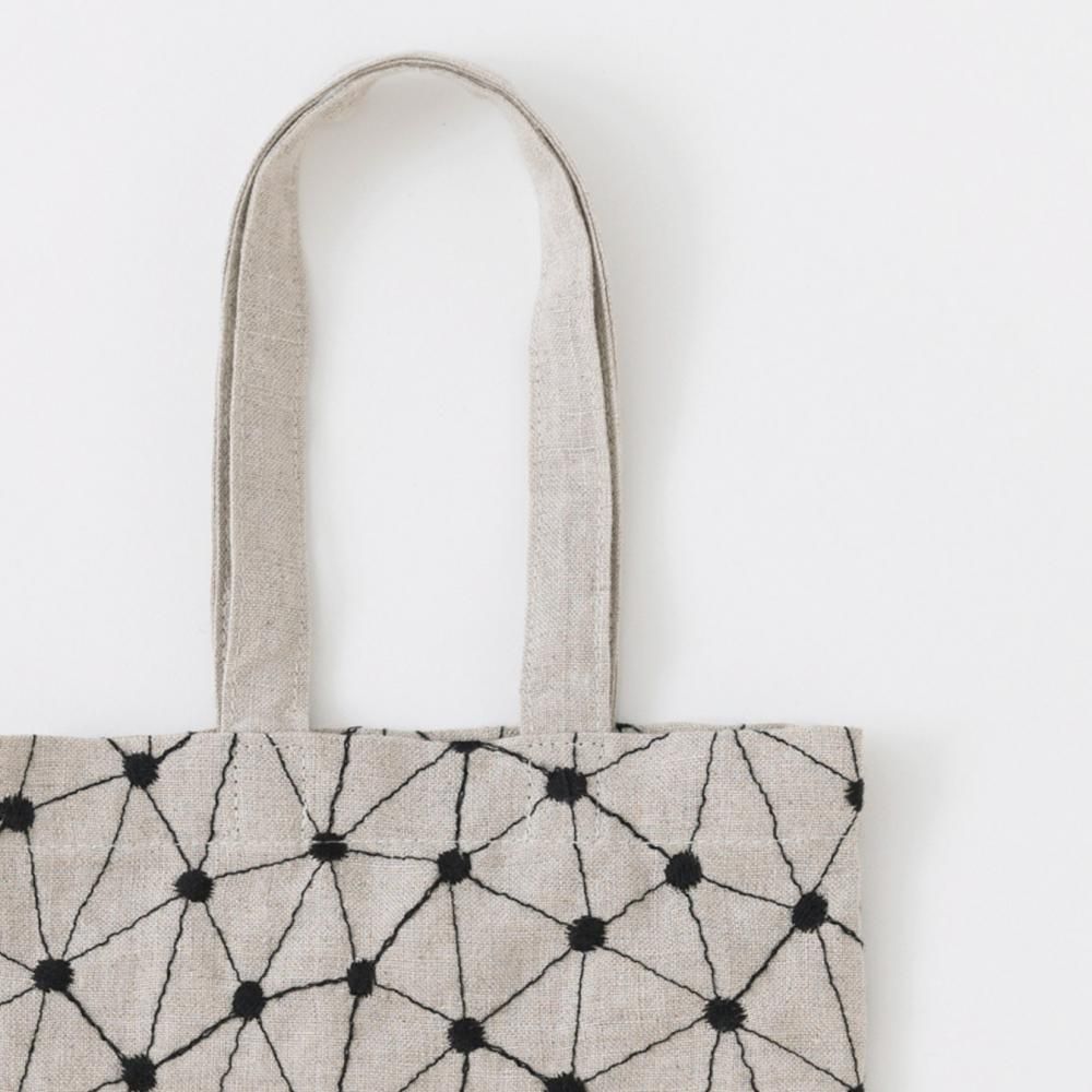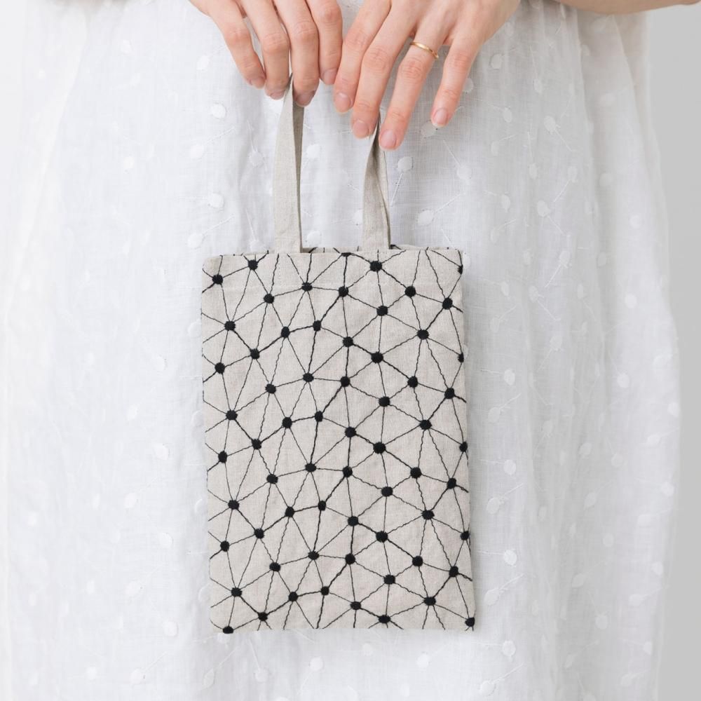 フィンランド語で「星座」を意味する「メルッキ」刺繍をあしらった小さなリネンバッグ。 お財布、スマートフォン、ハンカチに鍵…日々の必需品がちょうど納まるミニサイズ。 ご近所でのちょっとしたお買い物やバッグインバッグに使い勝手の良いリネンバッグです。