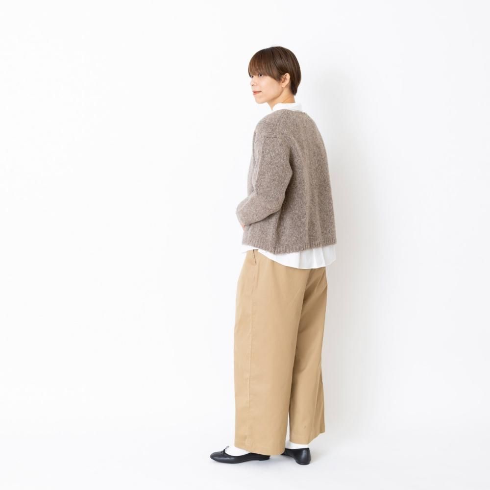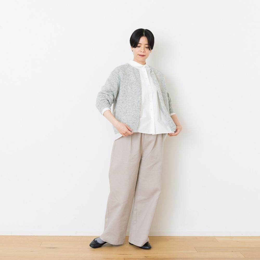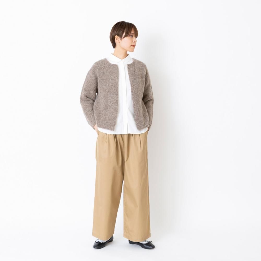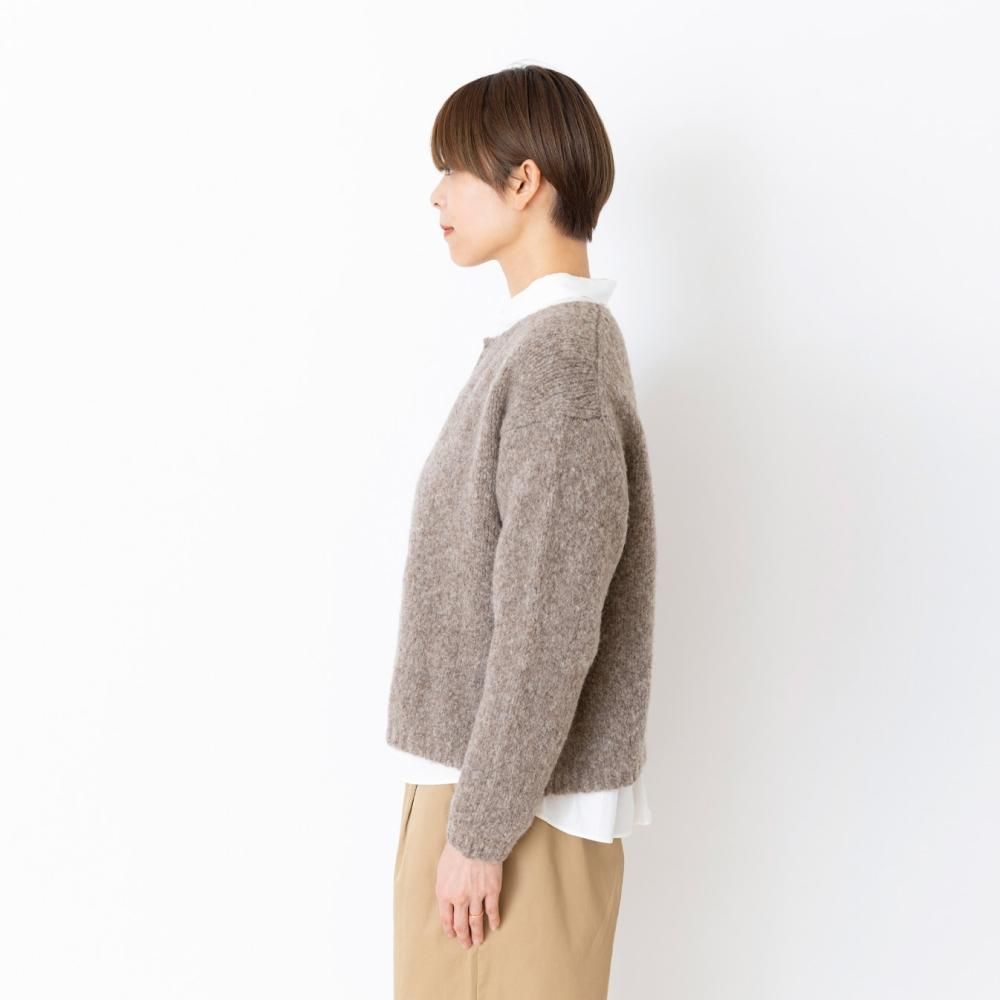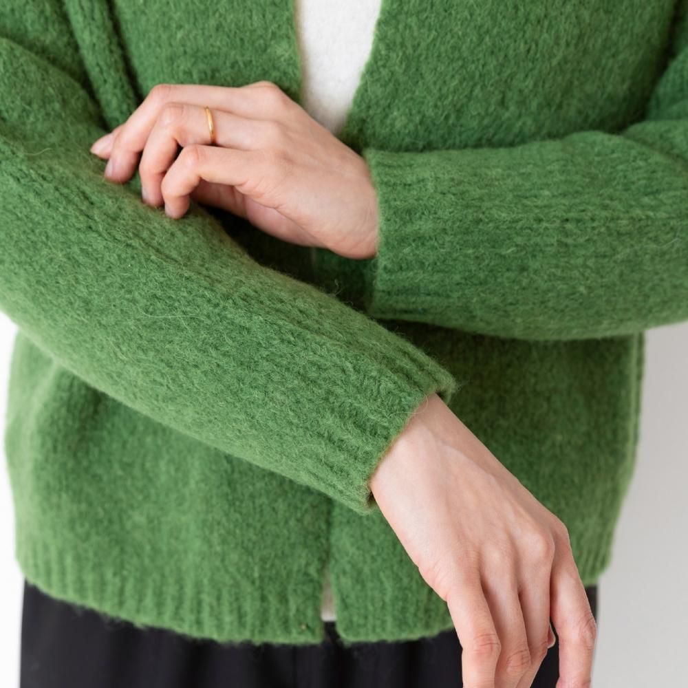 フロントにボタンのないシンプルなエアリーウールカーディガン。 ニットの柔らかさにジャケットのようなきちんと感を兼ね備えたきれいなフォルムが魅力の一枚。 たっぷりと空気を含んだベビーアルパカを使用しているため、ふわっと軽くてあたたかく、袖を通すたびに身体になじむ着心地です。