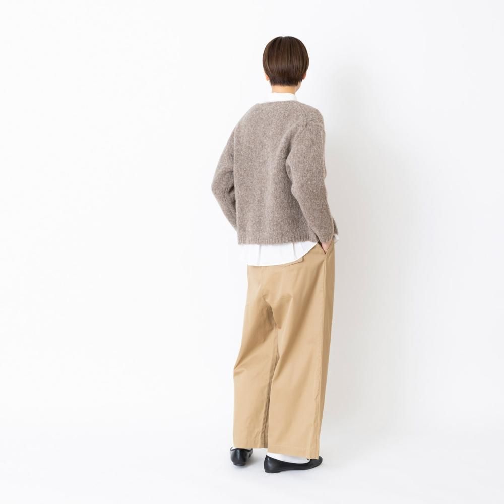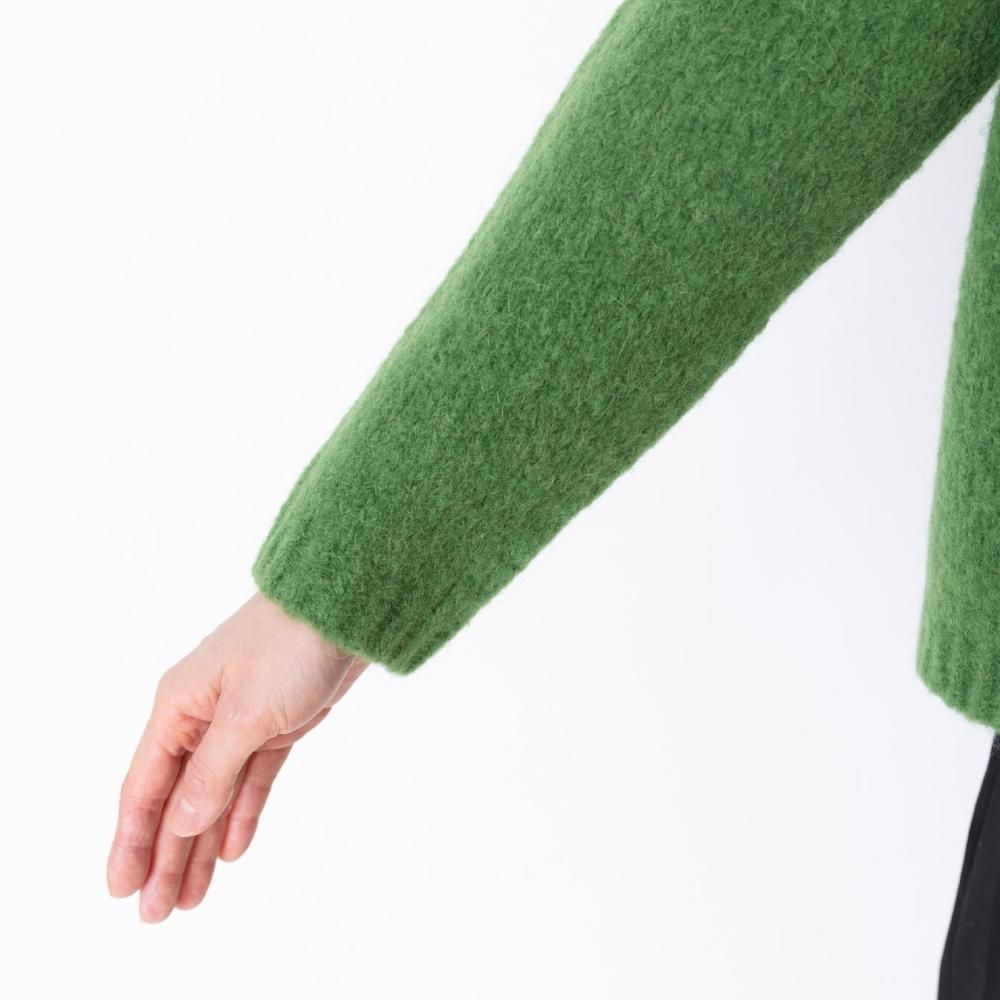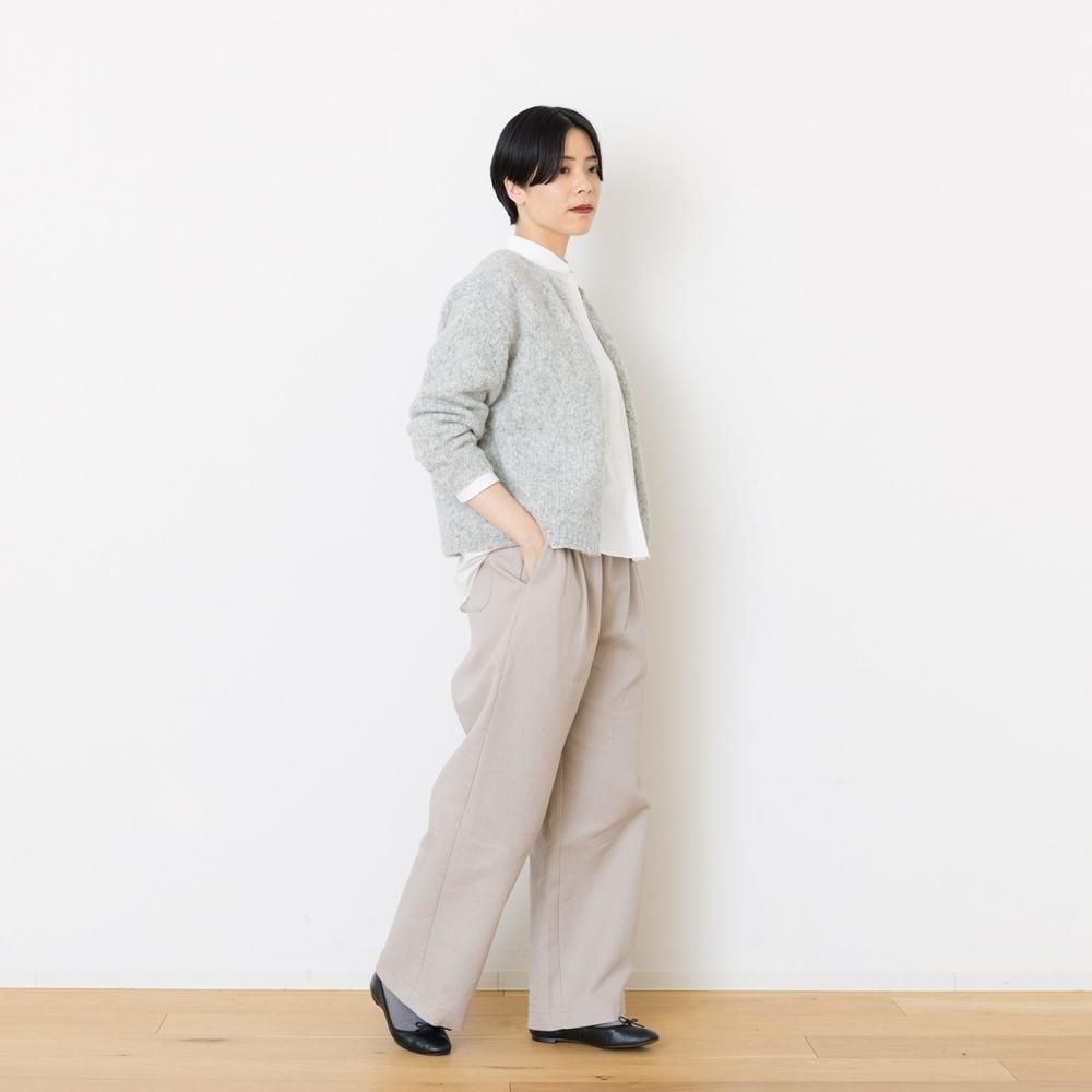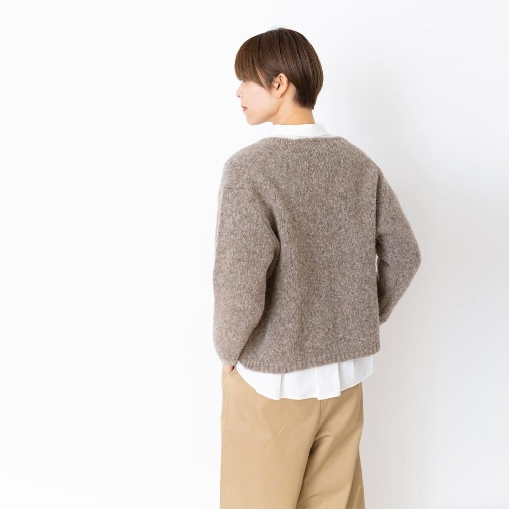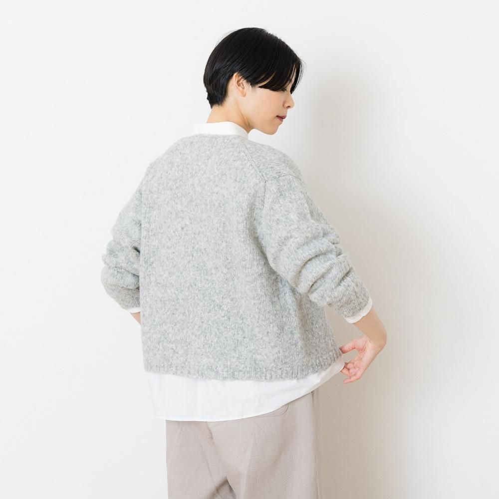 フロントにボタンのないシンプルなエアリーウールカーディガン。 ニットの柔らかさにジャケットのようなきちんと感を兼ね備えたきれいなフォルムが魅力の一枚。 たっぷりと空気を含んだベビーアルパカを使用しているため、ふわっと軽くてあたたかく、袖を通すたびに身体になじむ着心地です。