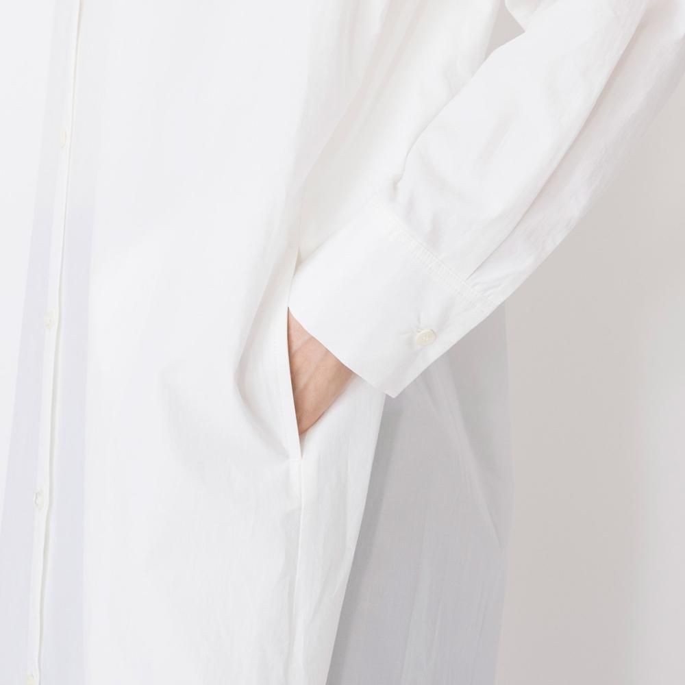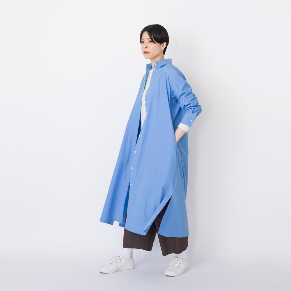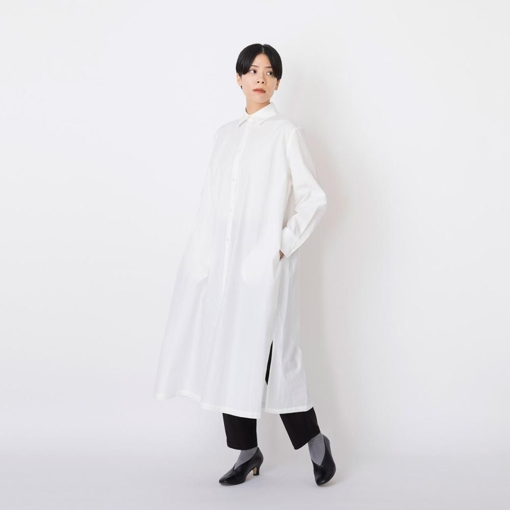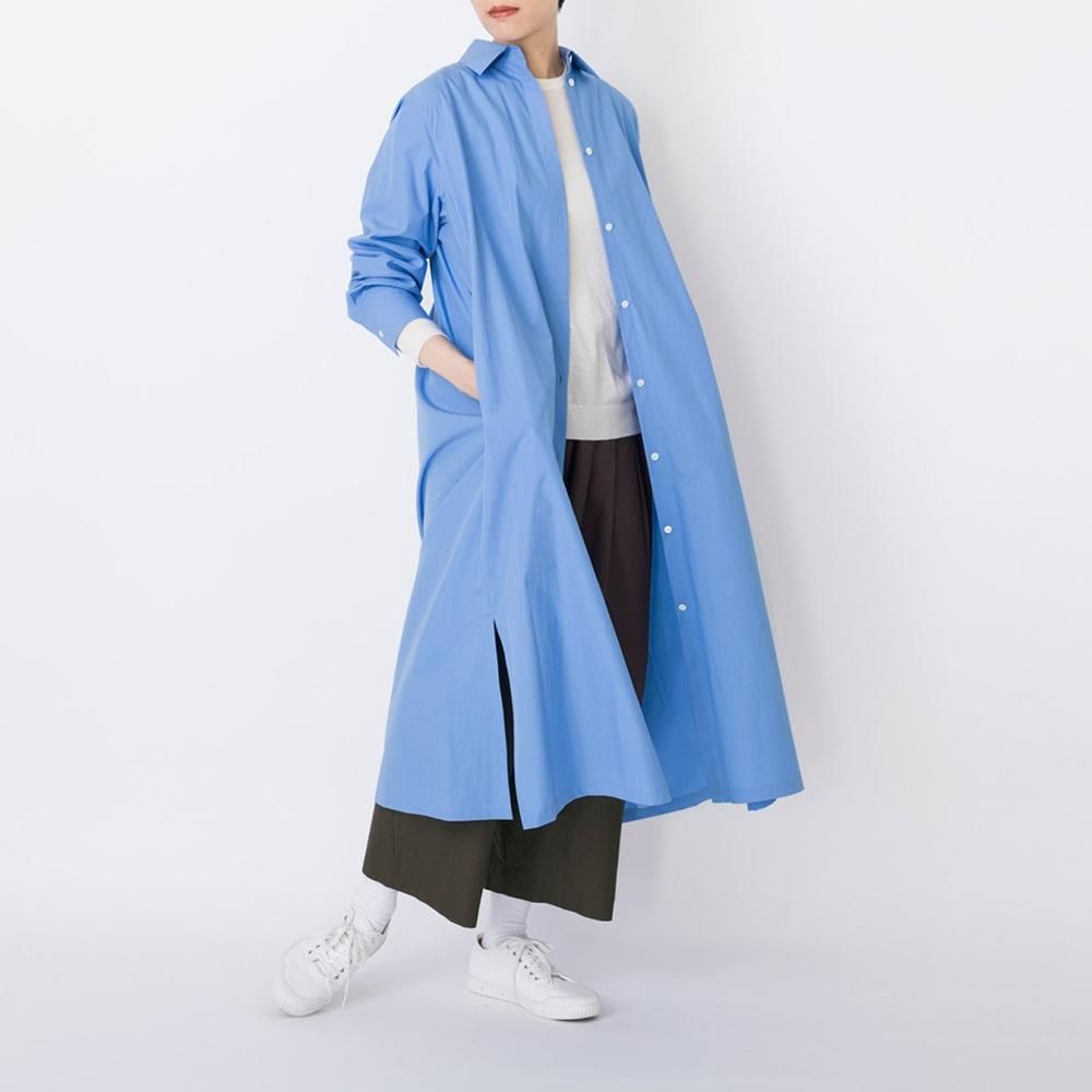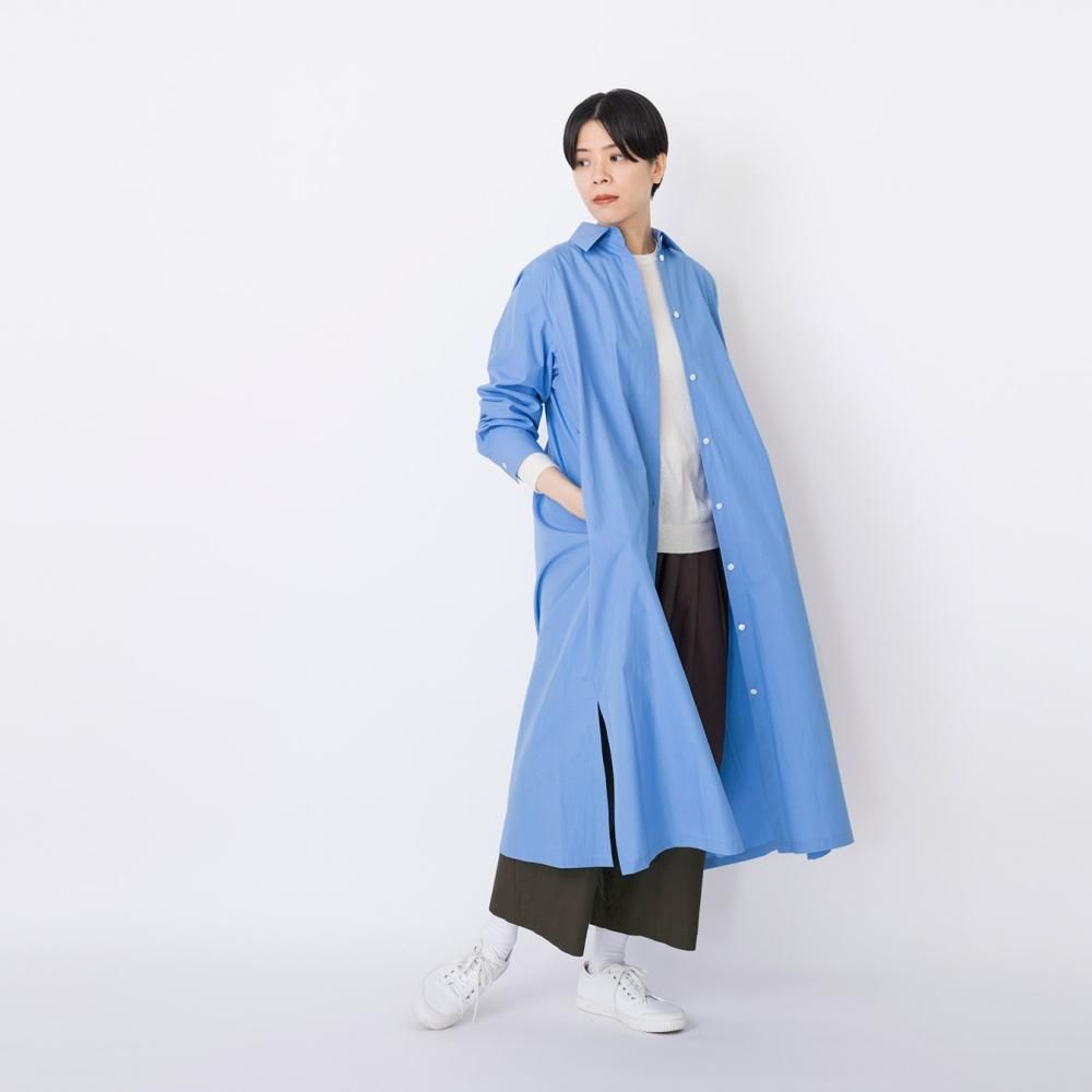 ワードローブに1着あると心強いコットンロングシャツワンピース。 合わせるアイテムを選ばずオールマイティに使えるのが無地シャツワンピースのいいところ。 ワンピースとしてはもちろん、ボタンをあけて軽い羽織のようにしても、気温の下がる季節にはニットとの組み合わせも楽しめます。 腰の両サイドにはポケット付き、裾には深めのスリット入りで足さばきも快適です。