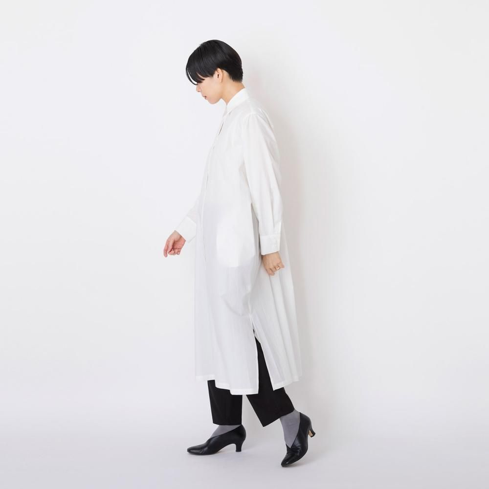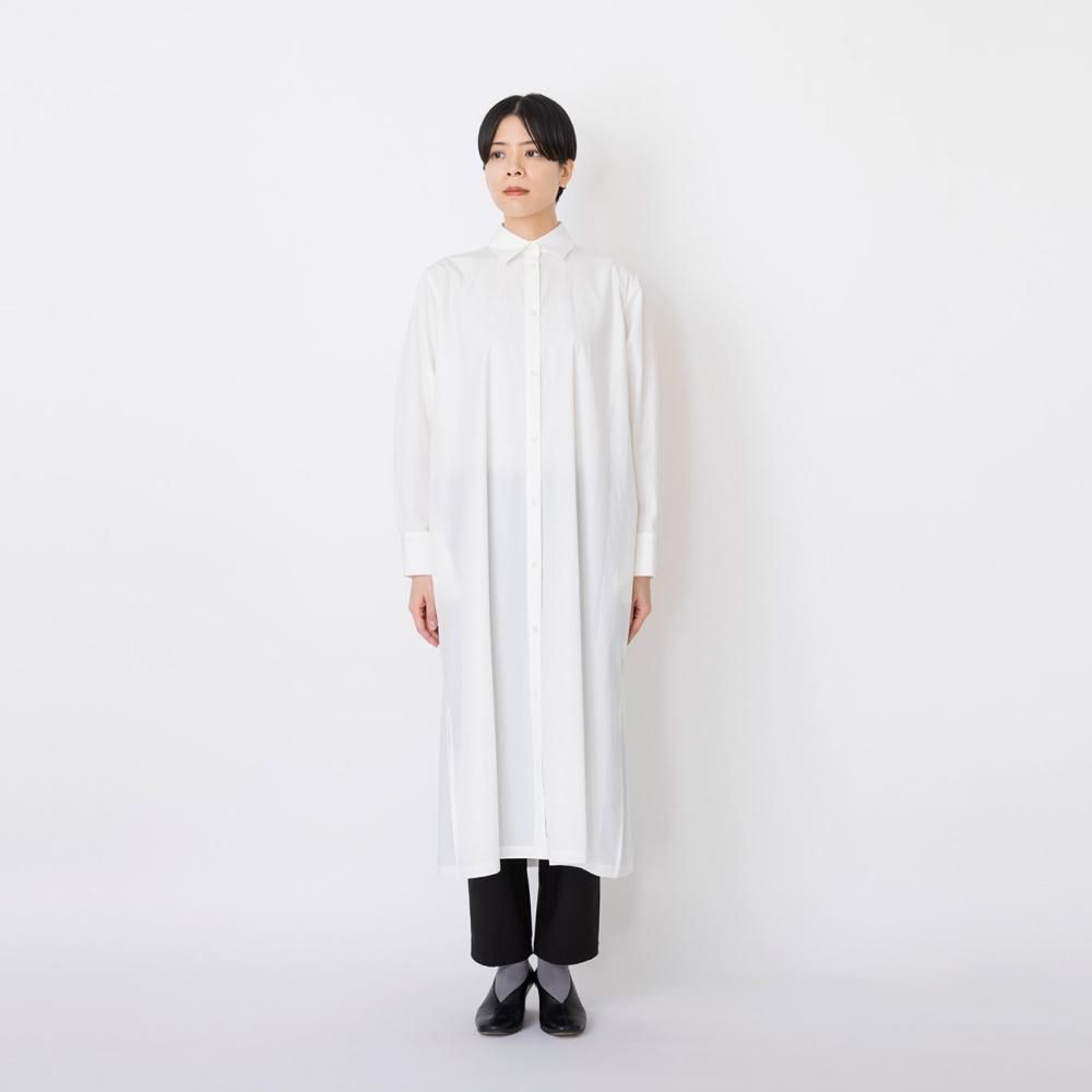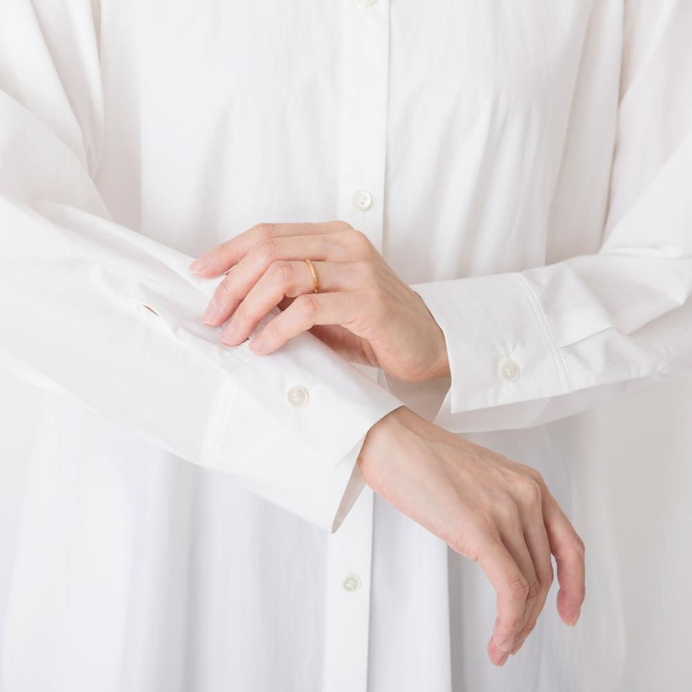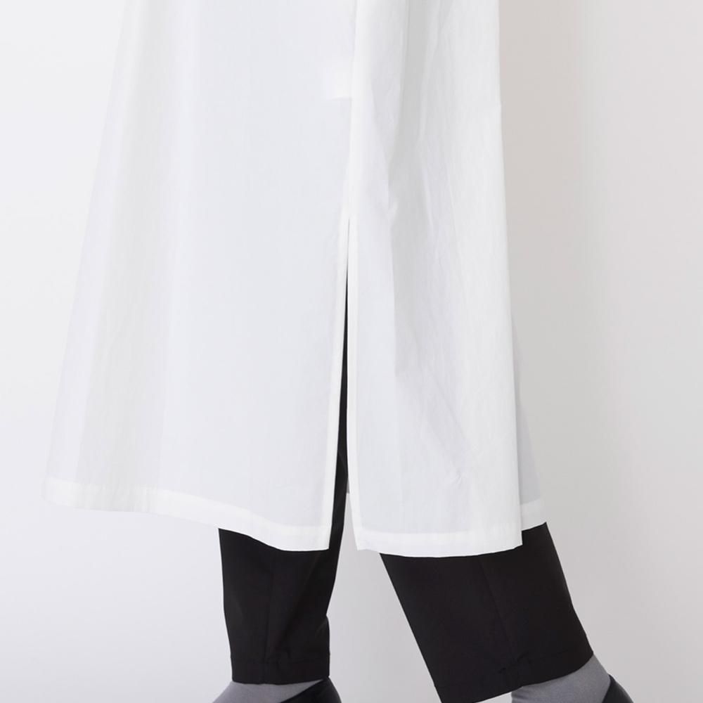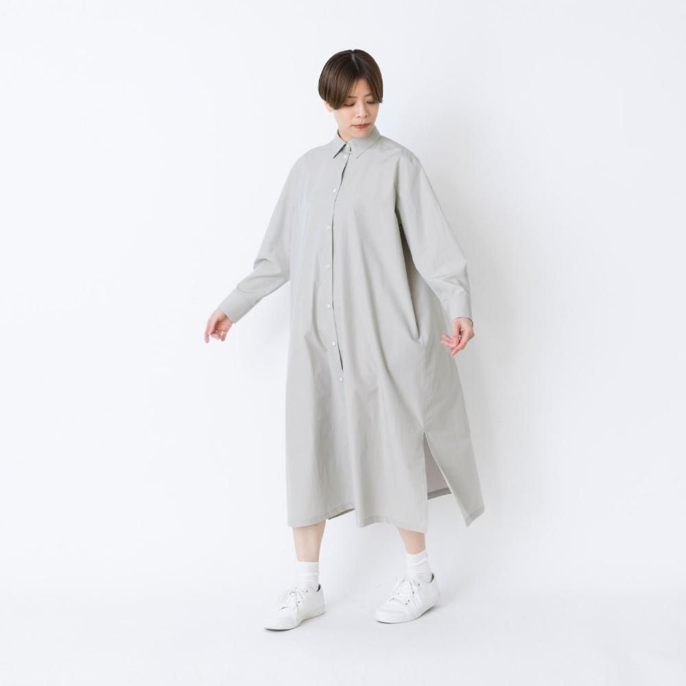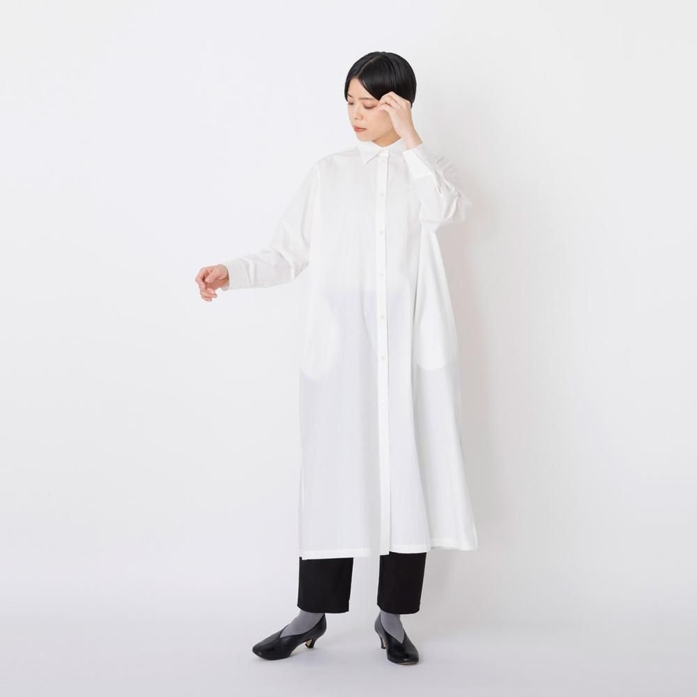 ワードローブに1着あると心強いコットンロングシャツワンピース。 合わせるアイテムを選ばずオールマイティに使えるのが無地シャツワンピースのいいところ。 ワンピースとしてはもちろん、ボタンをあけて軽い羽織のようにしても、気温の下がる季節にはニットとの組み合わせも楽しめます。 腰の両サイドにはポケット付き、裾には深めのスリット入りで足さばきも快適です。