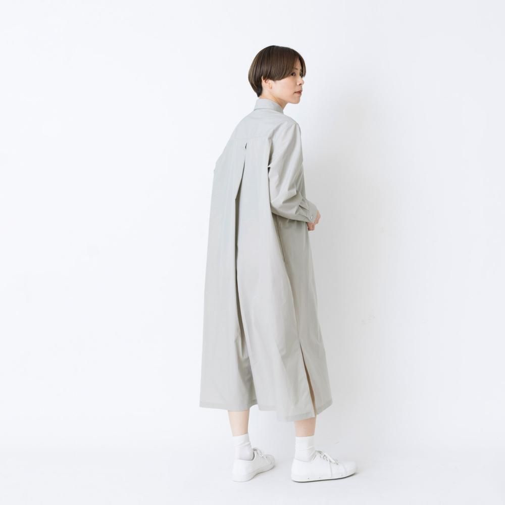 クリーンでさわやかな印象なコットン生地は「パラシュートクロス」。 ペーパーライクのドライな風合いで高密度に織られているため透け感も少なく季節を問わず着用できる素材です。 余計な装飾のないシンプルなデザインで、生地の良さを引き立てます。