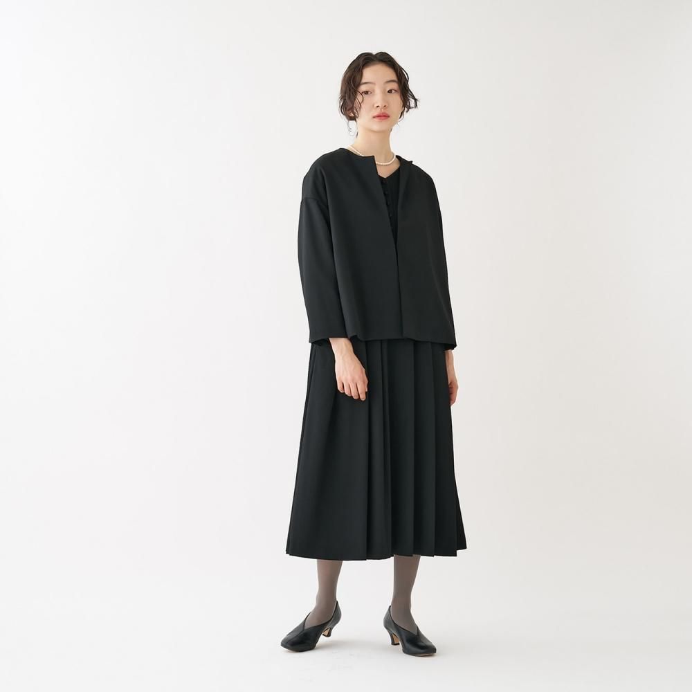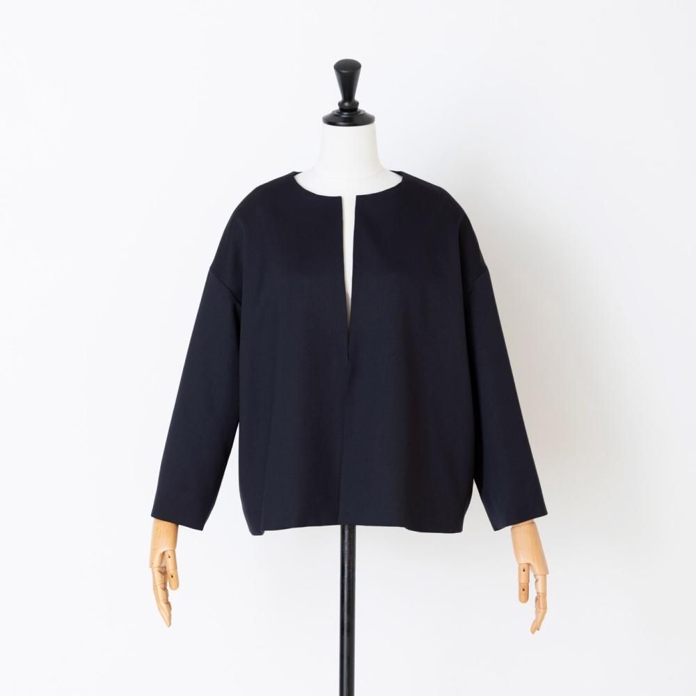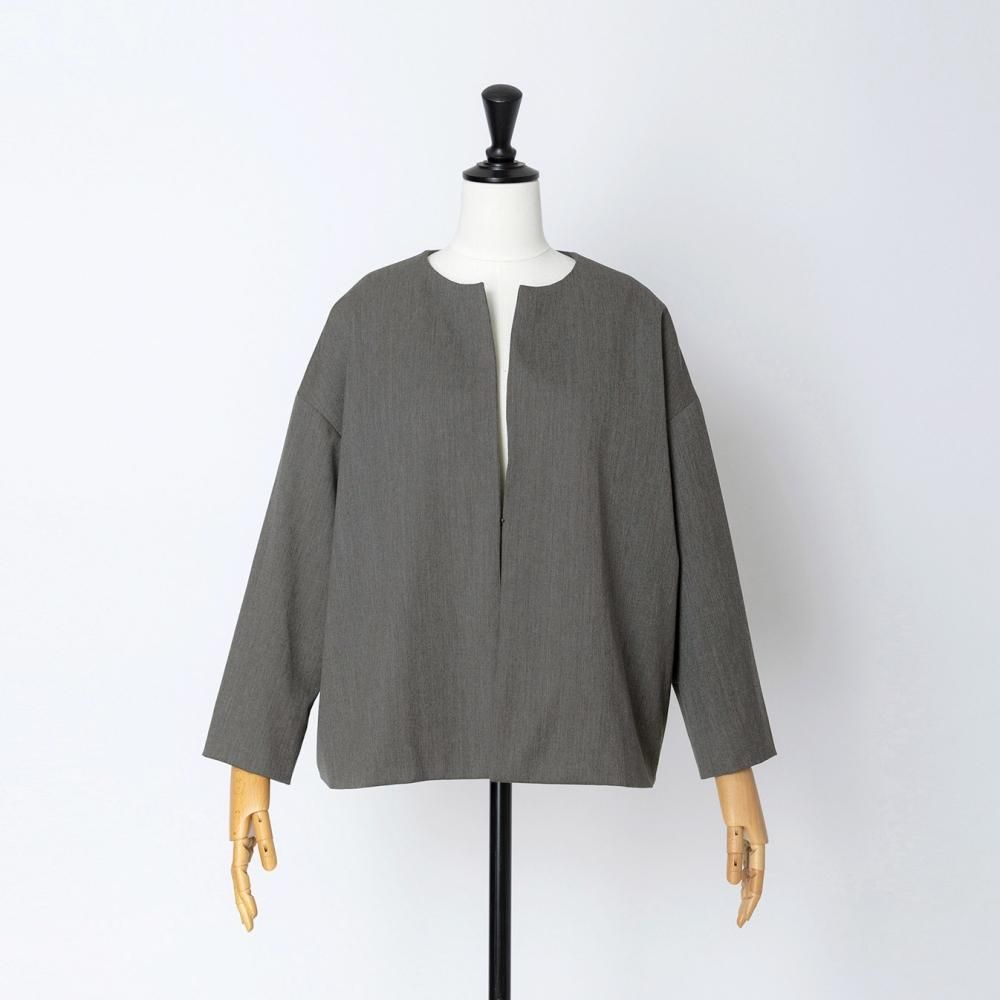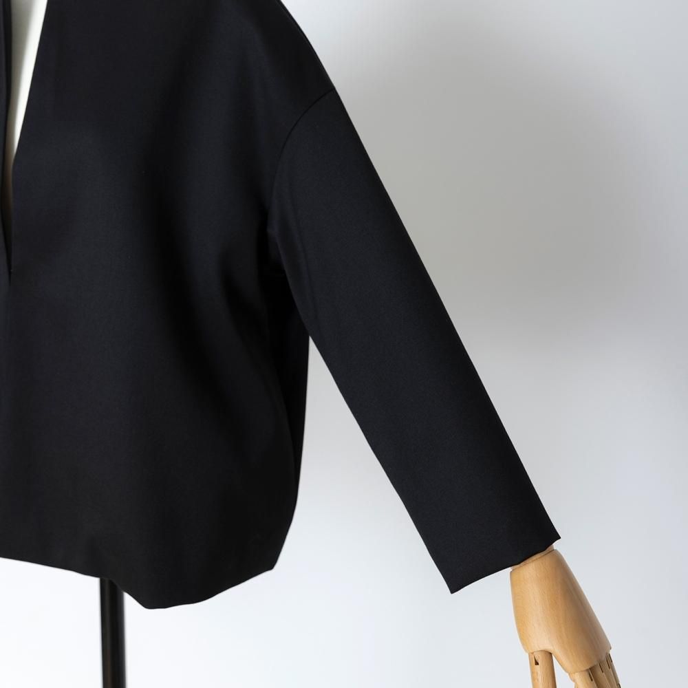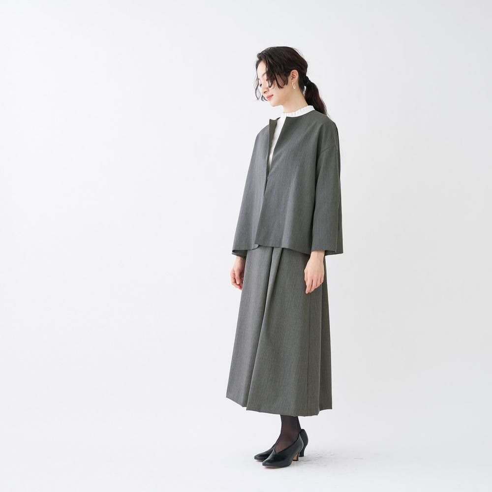 フロントにボタンのない、ミニマルなノーカラージャケット。 やや肩の下がるドロップショルダーでゆとりのあるデザイン。 袖丈や裾丈はすっきりとした短めのシルエットで、自然と上半身をスリムに見せてくれます。 同素材のスカートやワンピース、パンツと組み合わせてお気に入りのセットアップスタイルをお楽しみください。