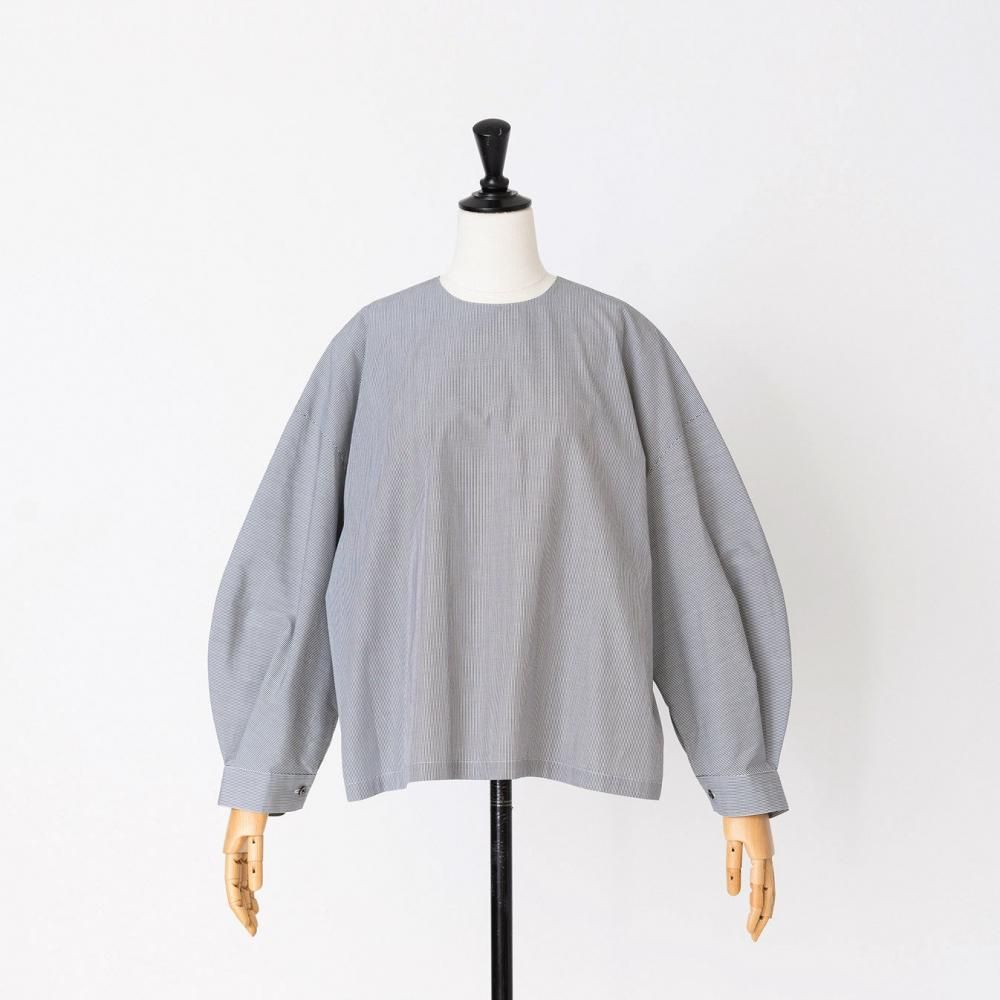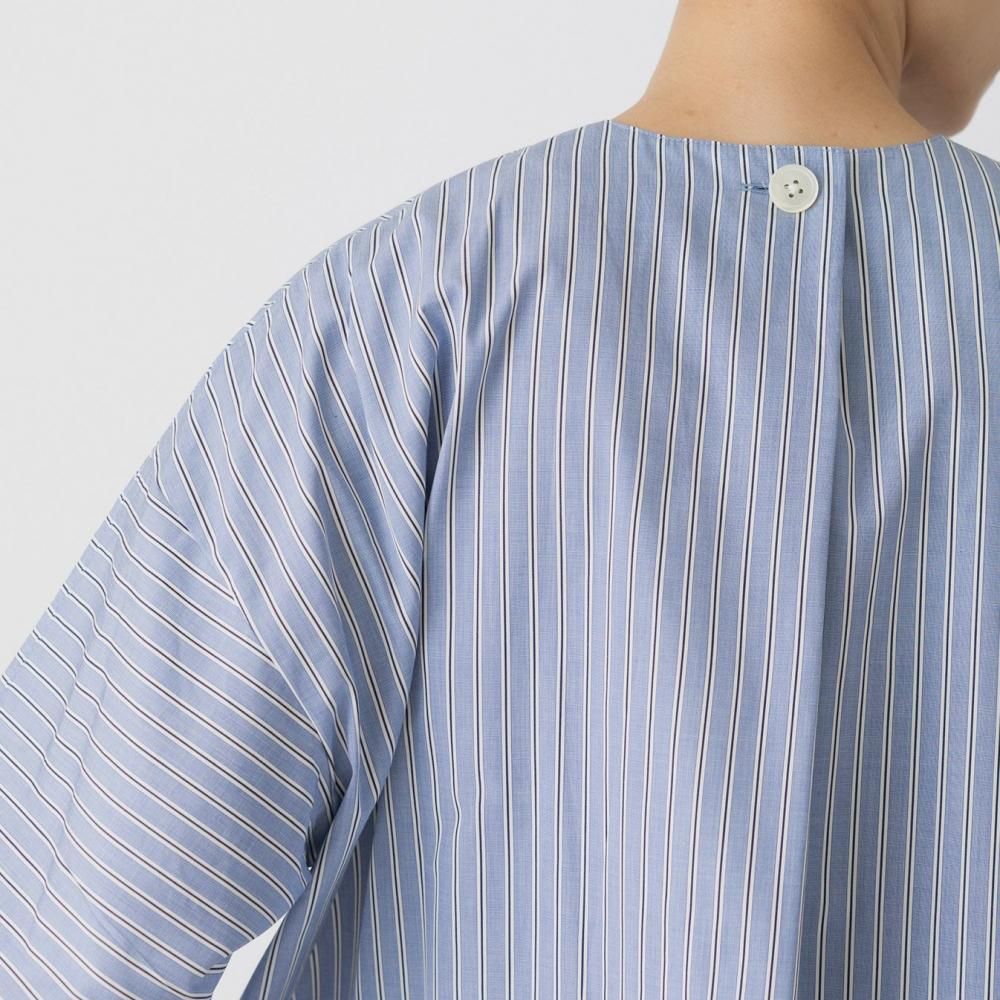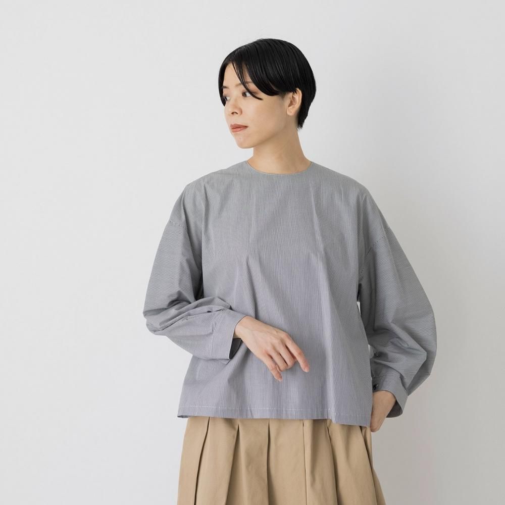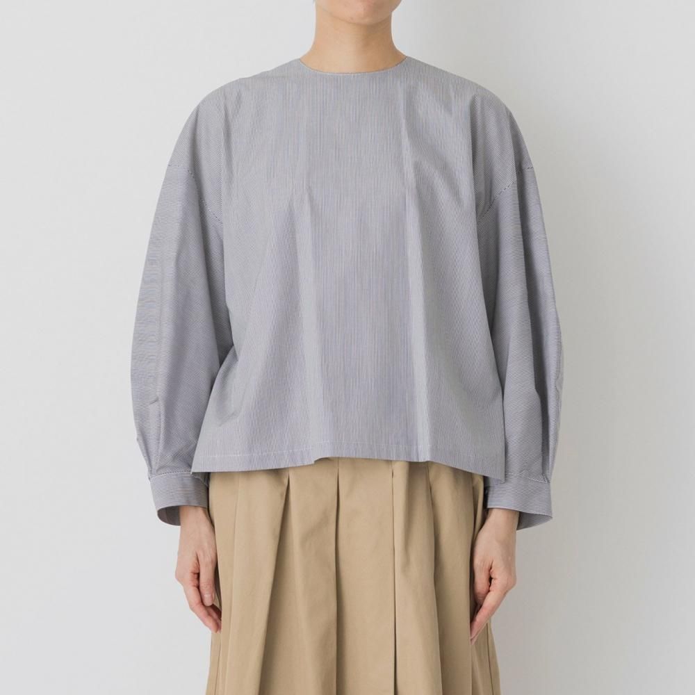 一見ごくシンプルなプルオーバーブラウス。 さらっと1枚着るだけで様になる、立体的で遊び心あるデザインが魅力です。 極細の綿糸で織られた生地はしなやかで光沢があり、カジュアルな中にも大人の雰囲気を感じさせます。