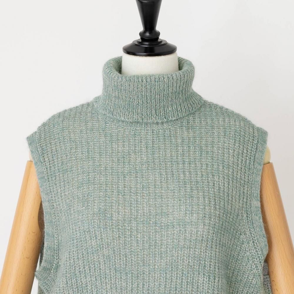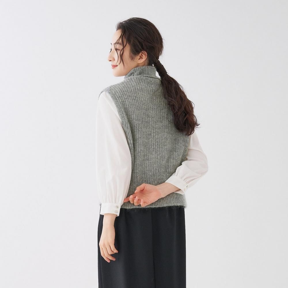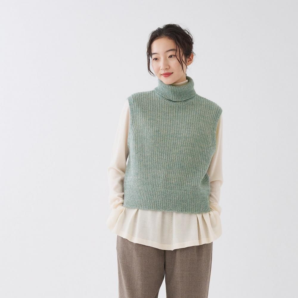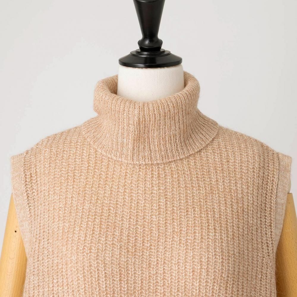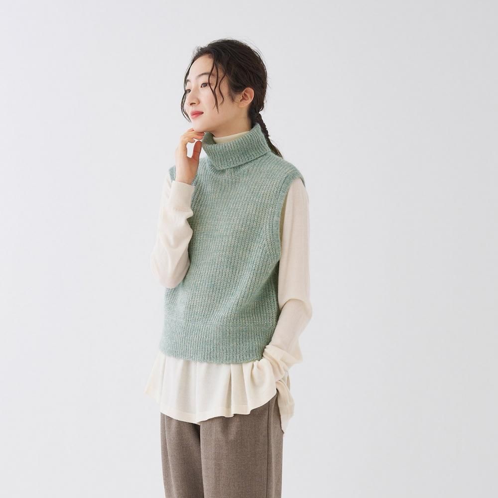 モヘヤのやわらかな風合いが、見た目にもあたたかなタートルネックベスト。