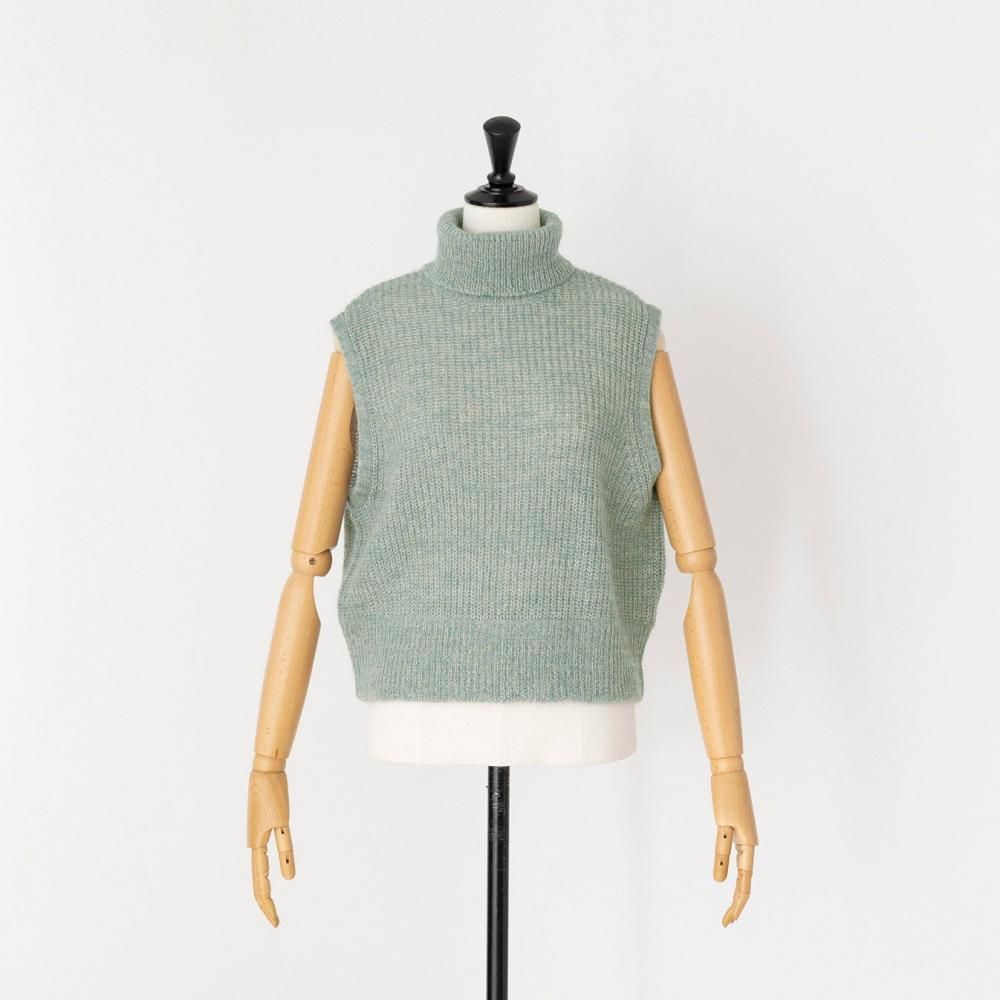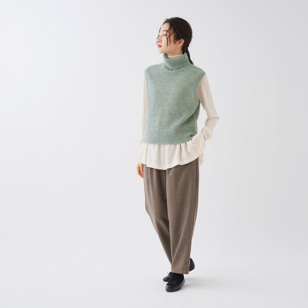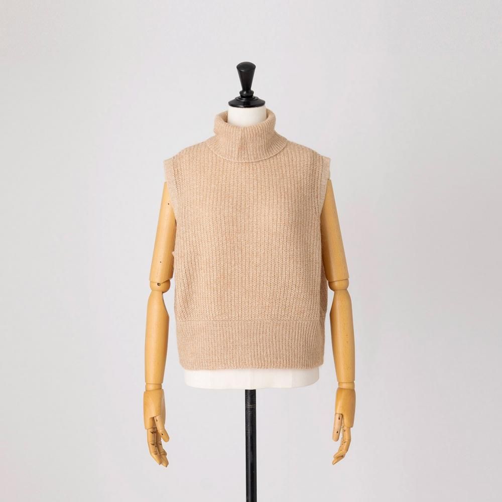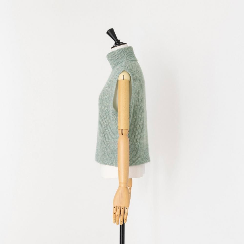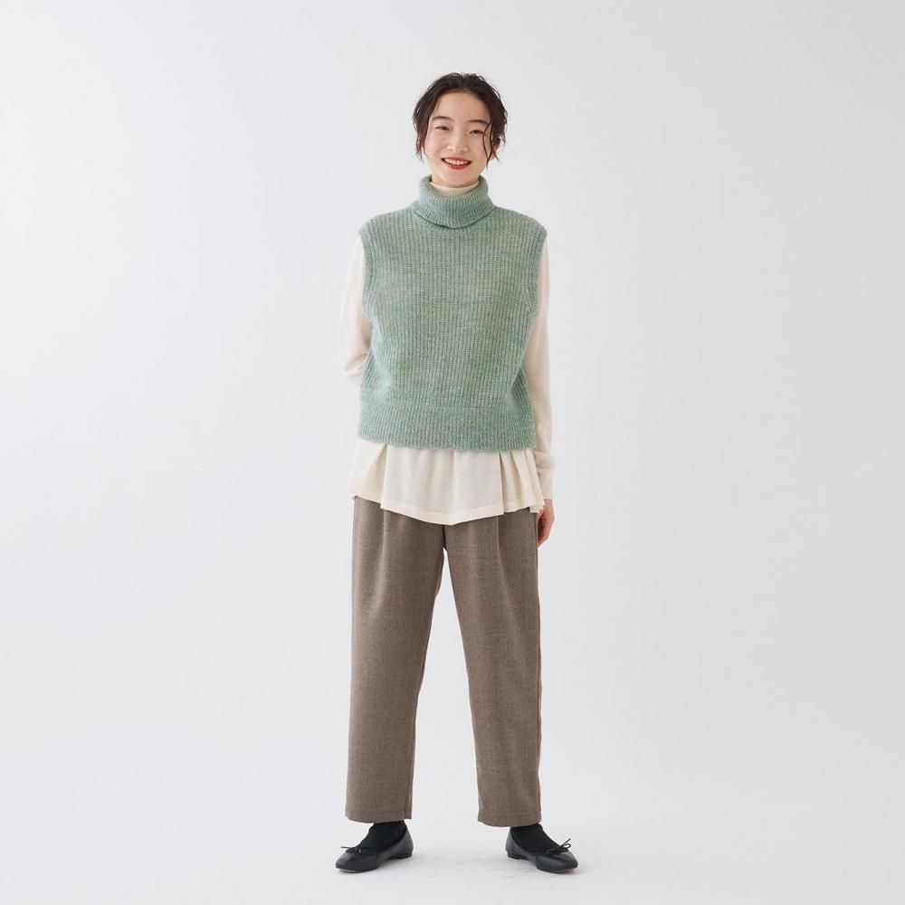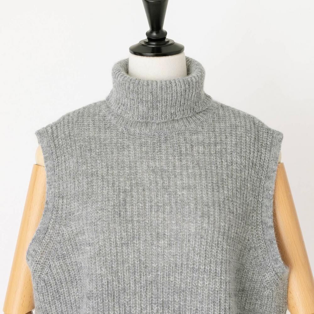 モヘヤのやわらかな風合いが、見た目にもあたたかなタートルネックベスト。