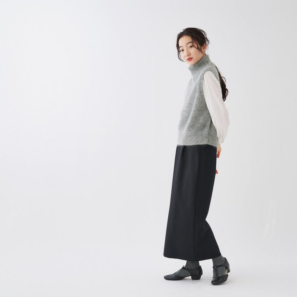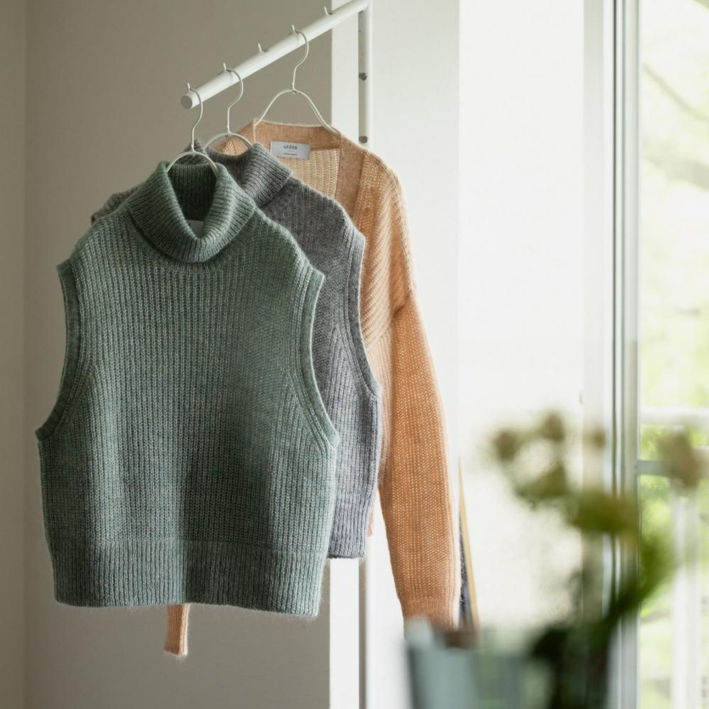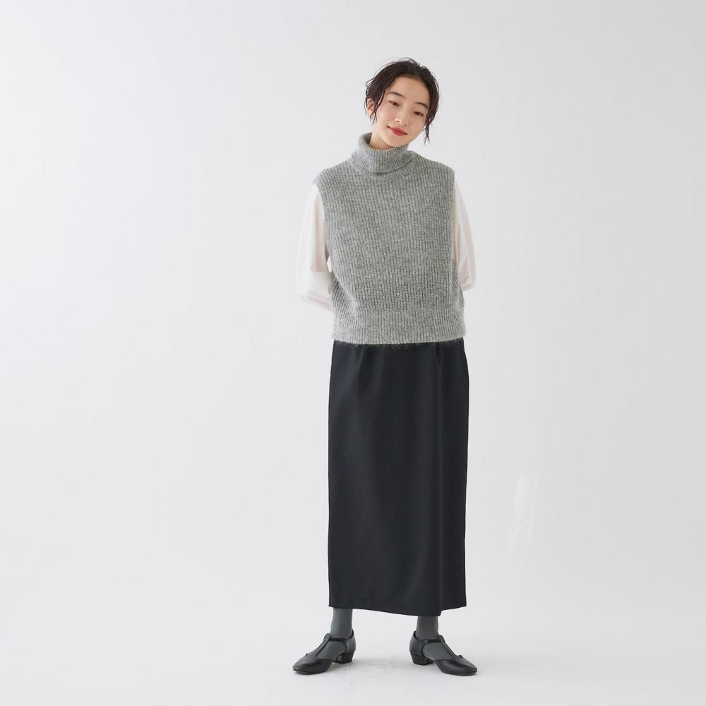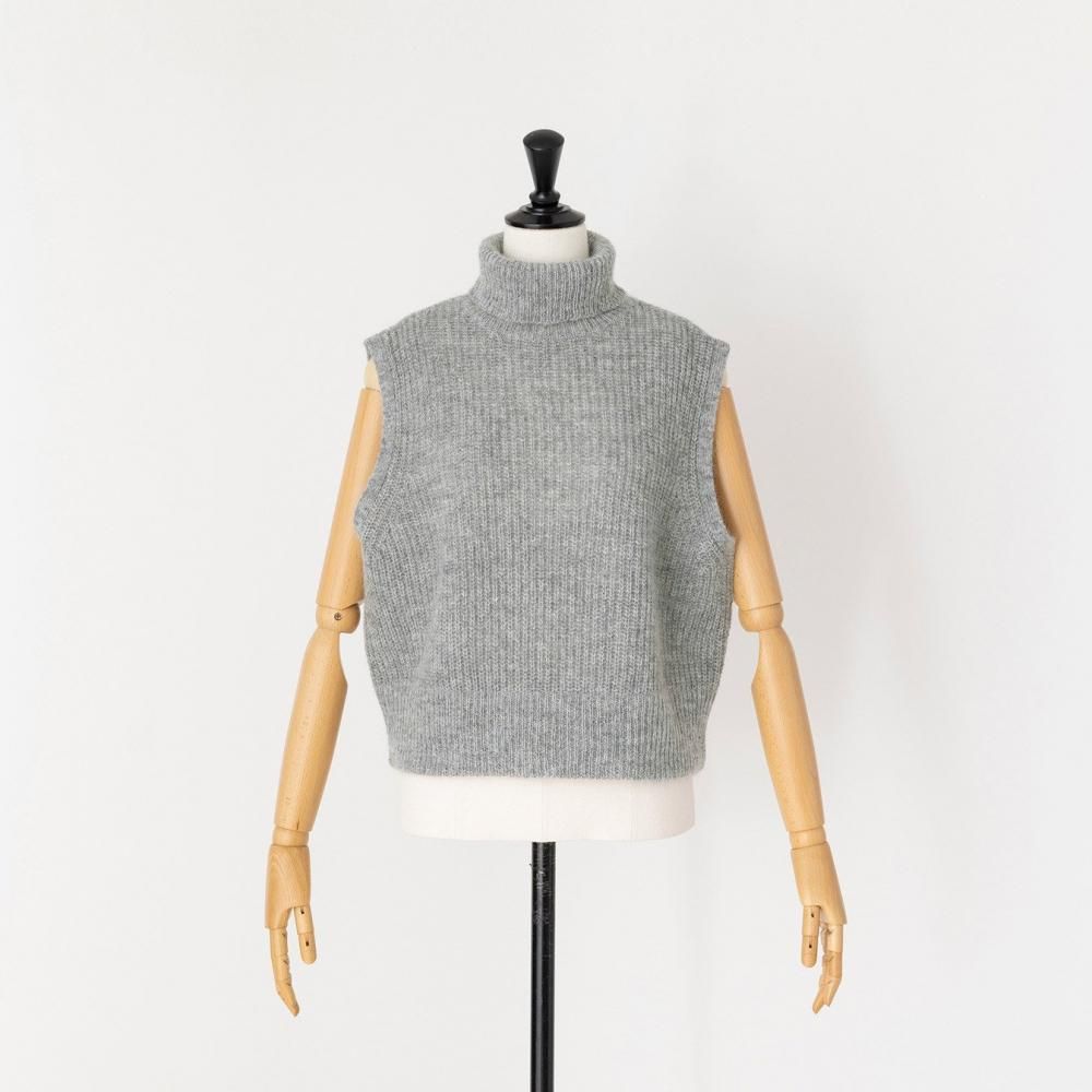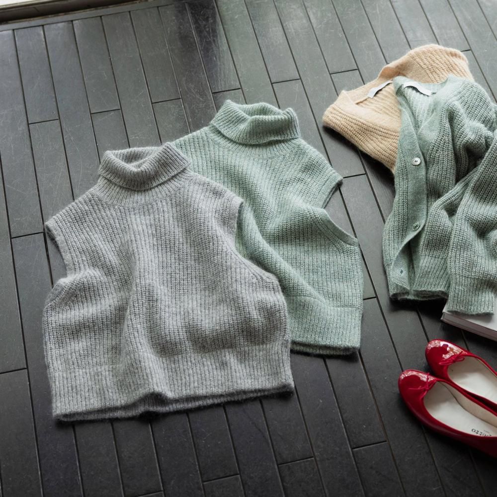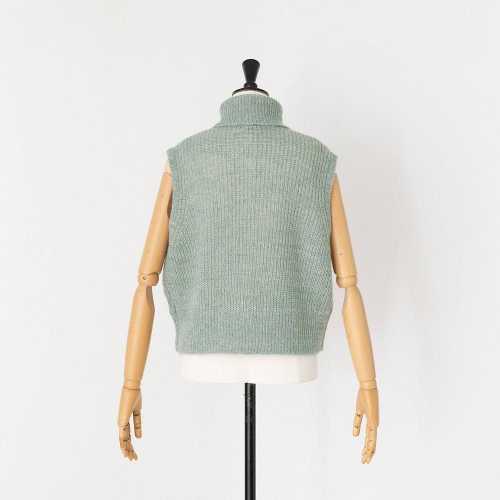 モヘヤのやわらかな風合いが、見た目にもあたたかなタートルネックベスト。
