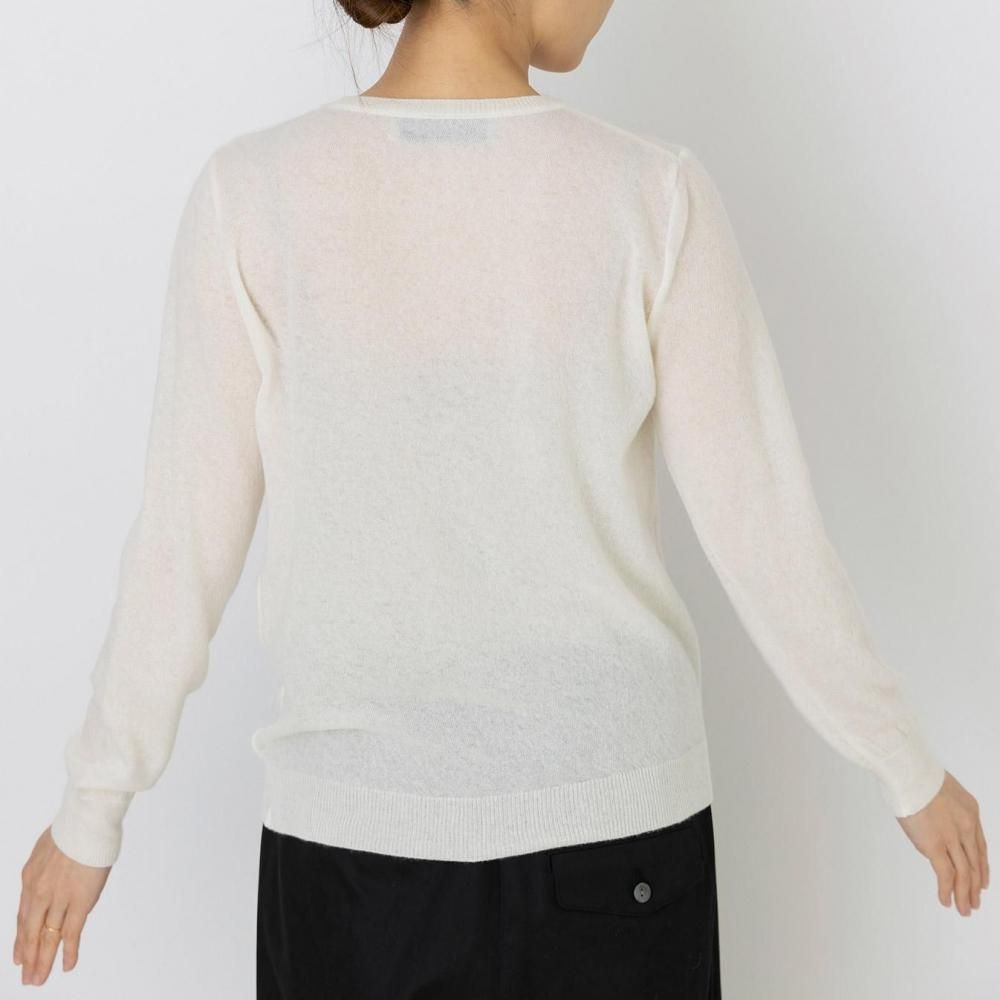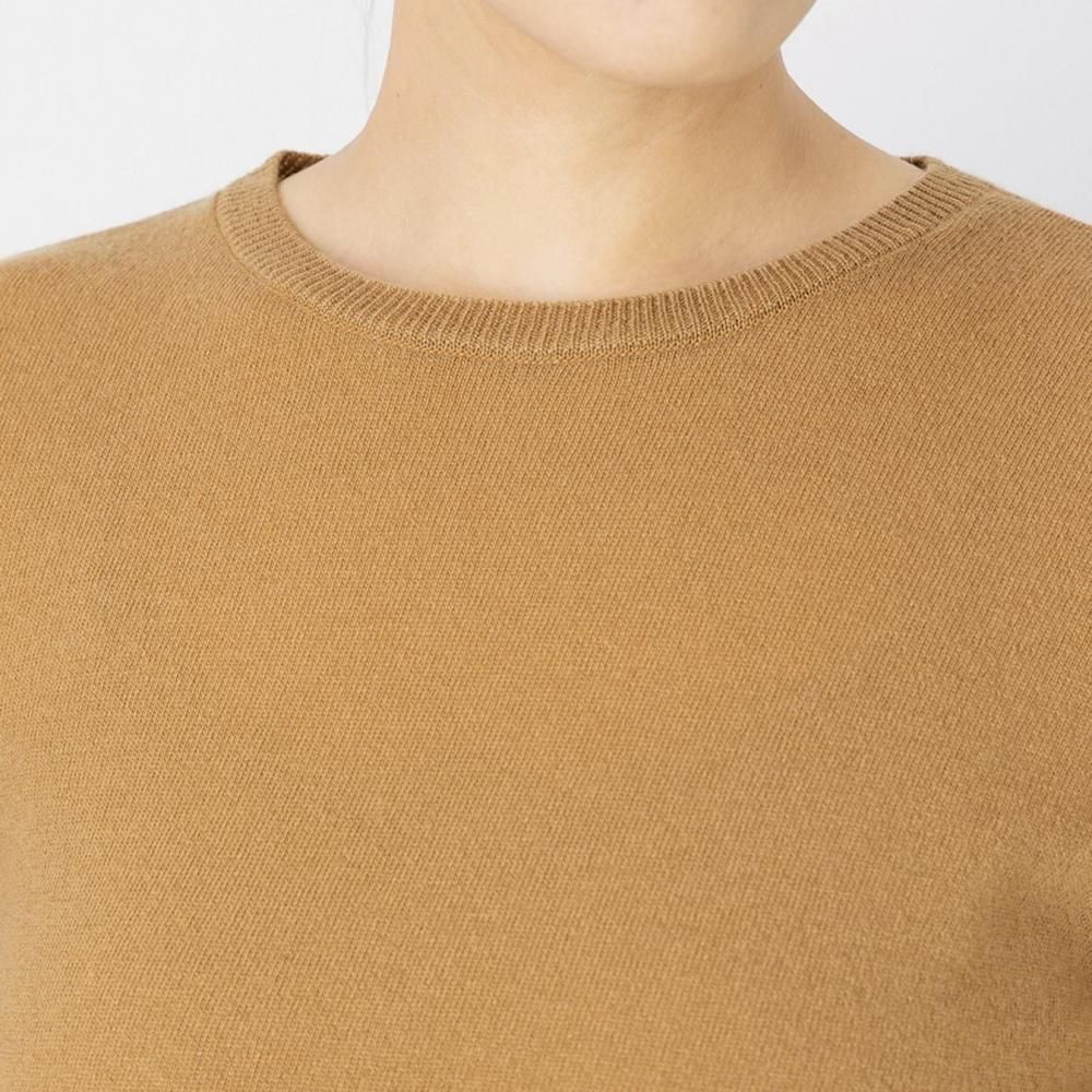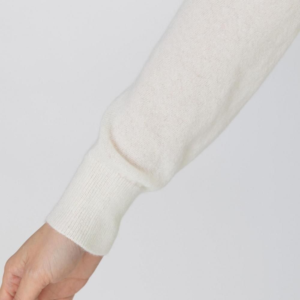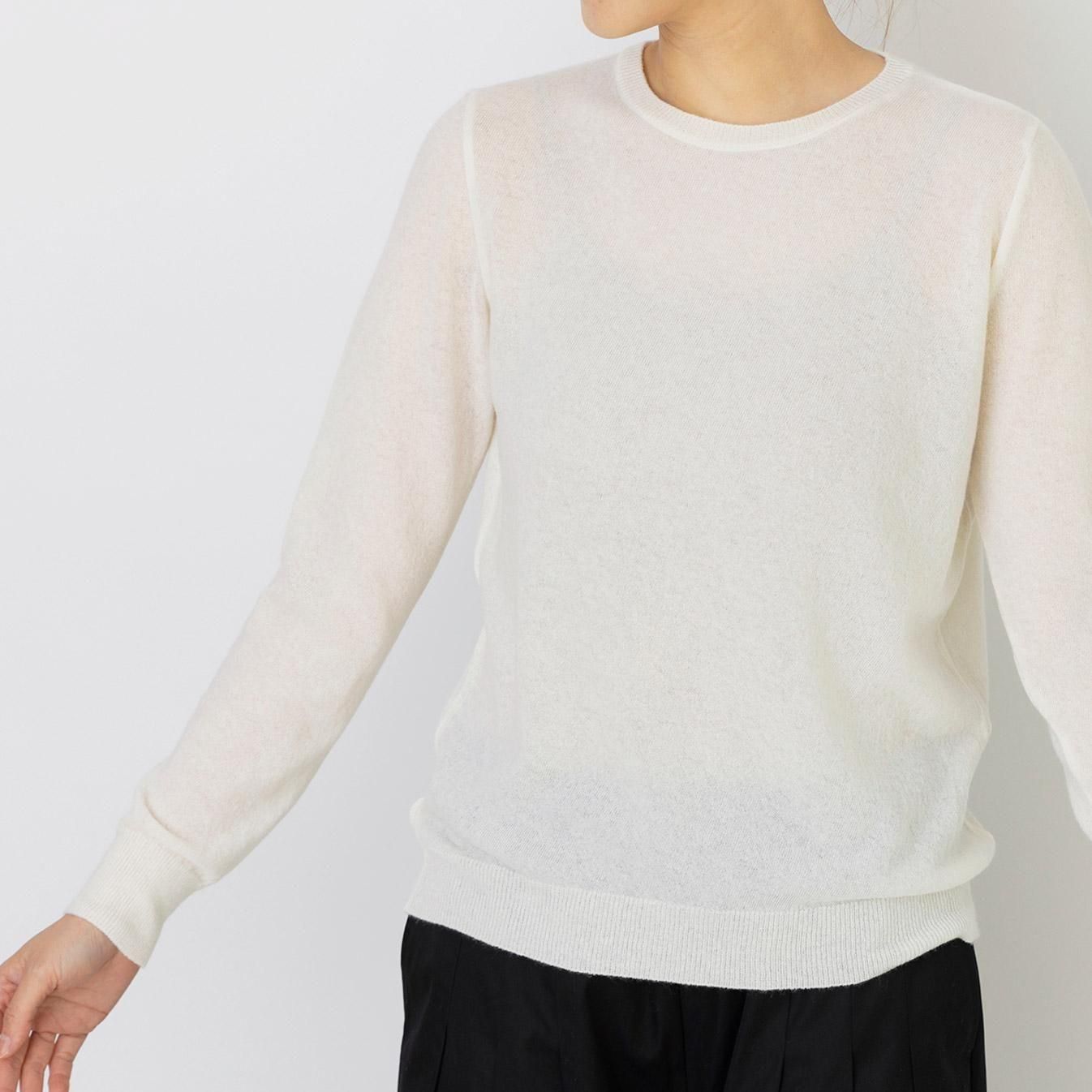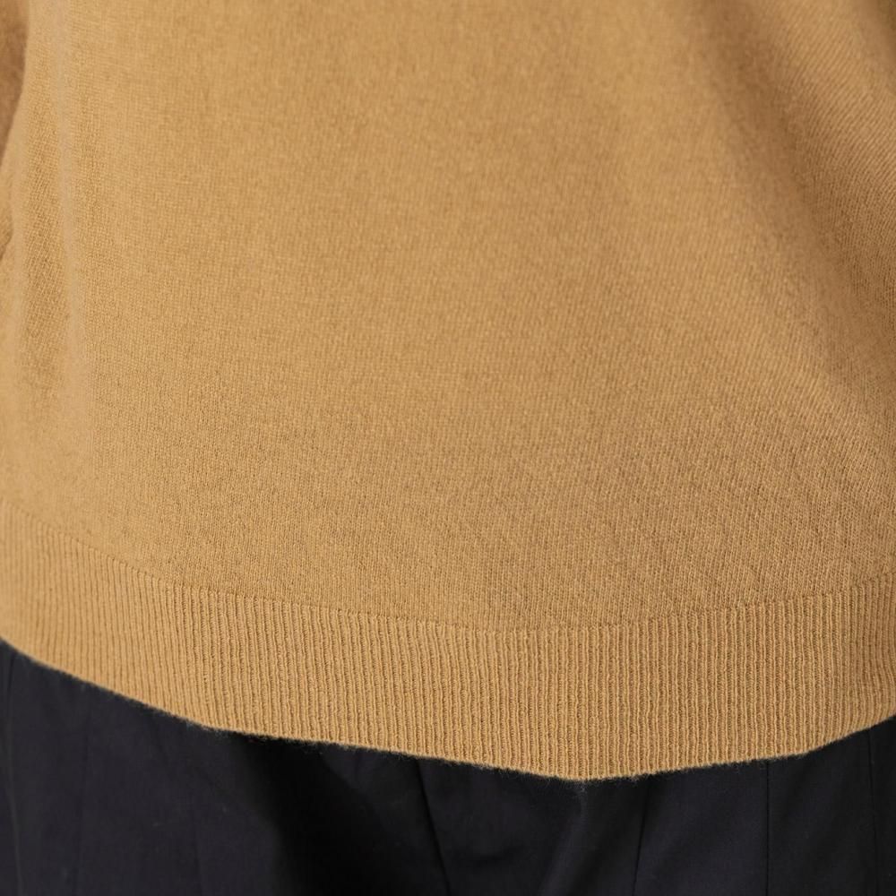 そのためカシミヤそのままのやわらかな風合いが生かされて、ふっくらと軽くやさしいぬくもりを感じるニットです。