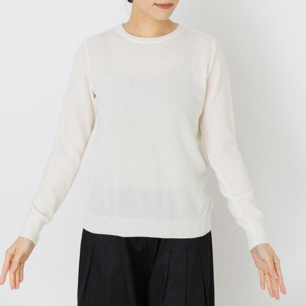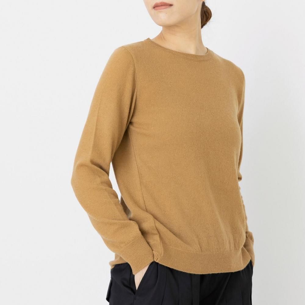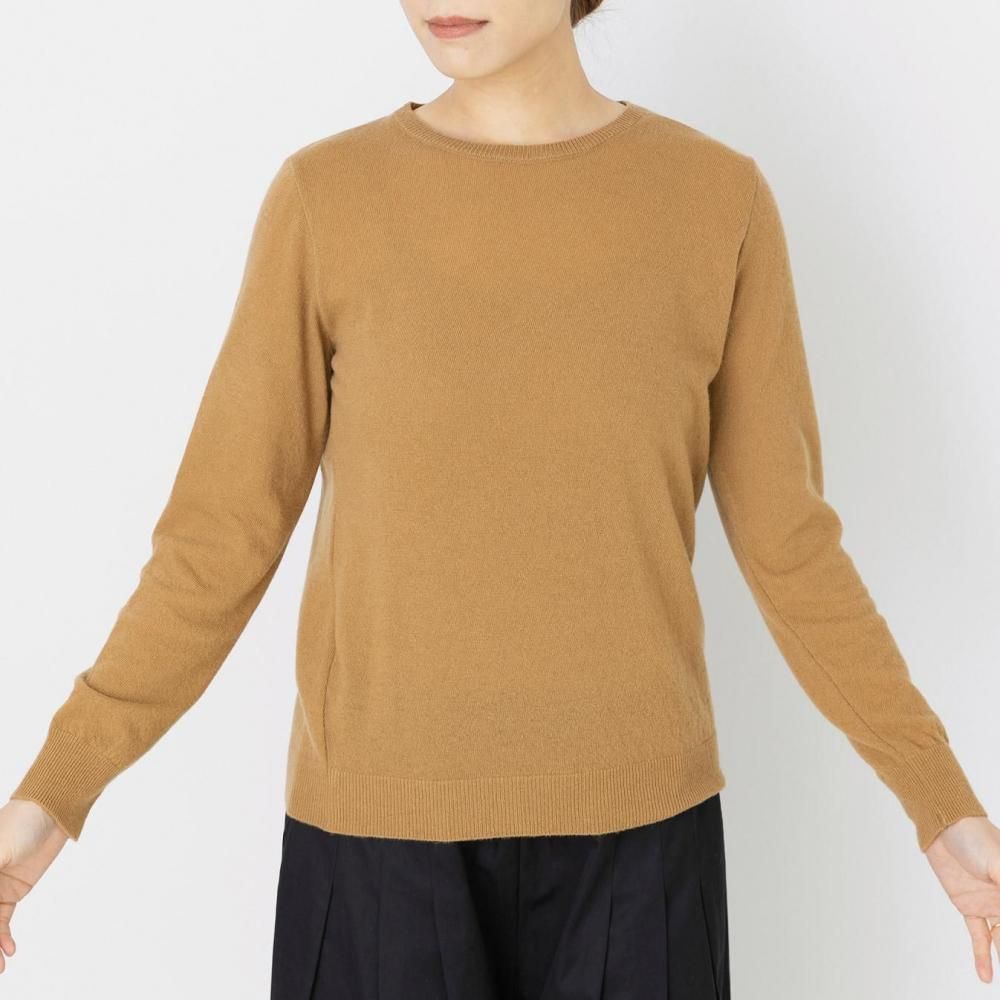 1枚で着ても、カーディガンやジャケットとのコーディネートにも使いやすい、ベーシックなカシミヤニットです。