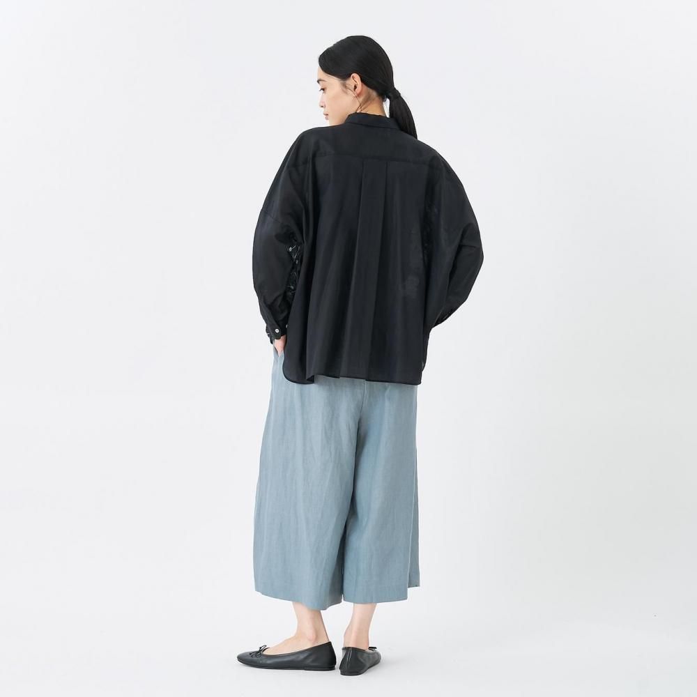 フルレングスより少し短めのクロップド丈が足元に抜け感をつくり、暑い季節にも心地よく着られる一枚です。