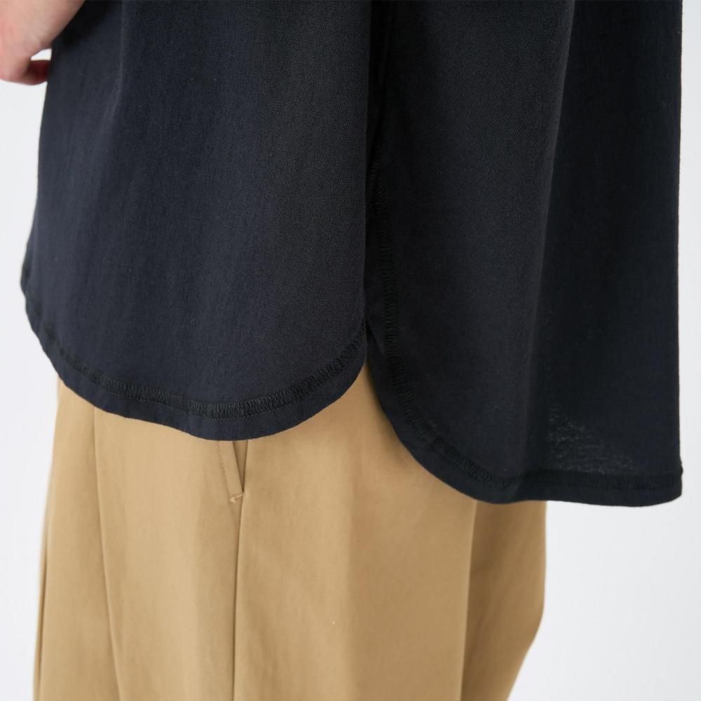 ほどよくゆとりのあるシルエットに、落ち感のある素材が加わり、きれいめにもカジュアルにもなじむ一枚です。