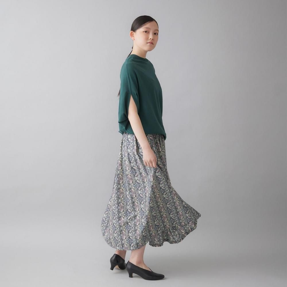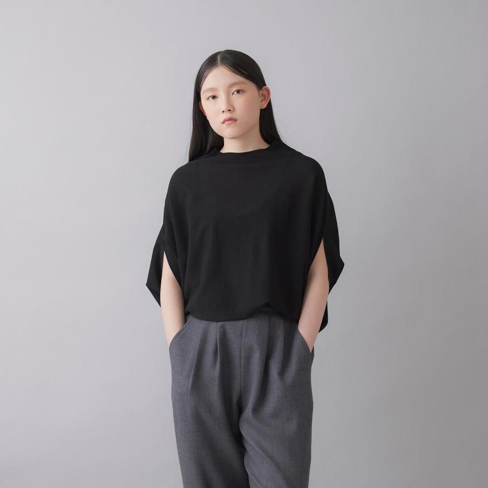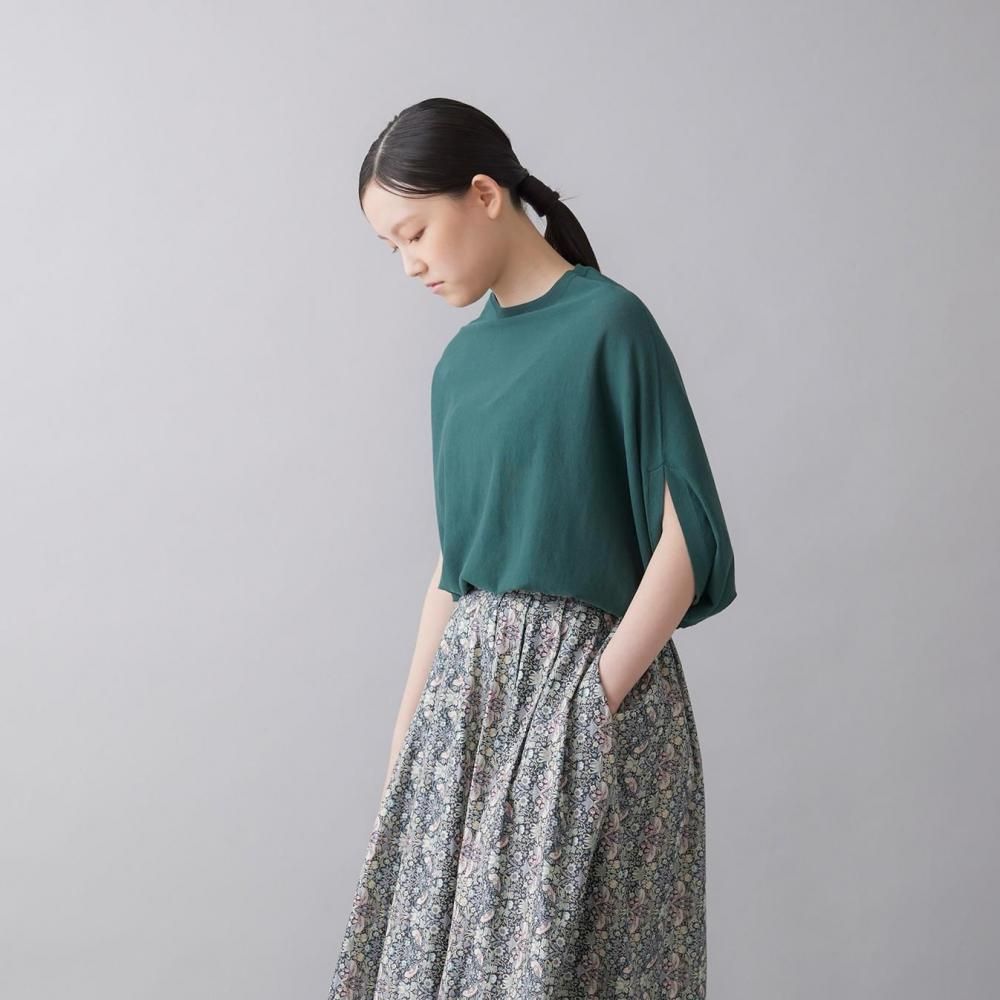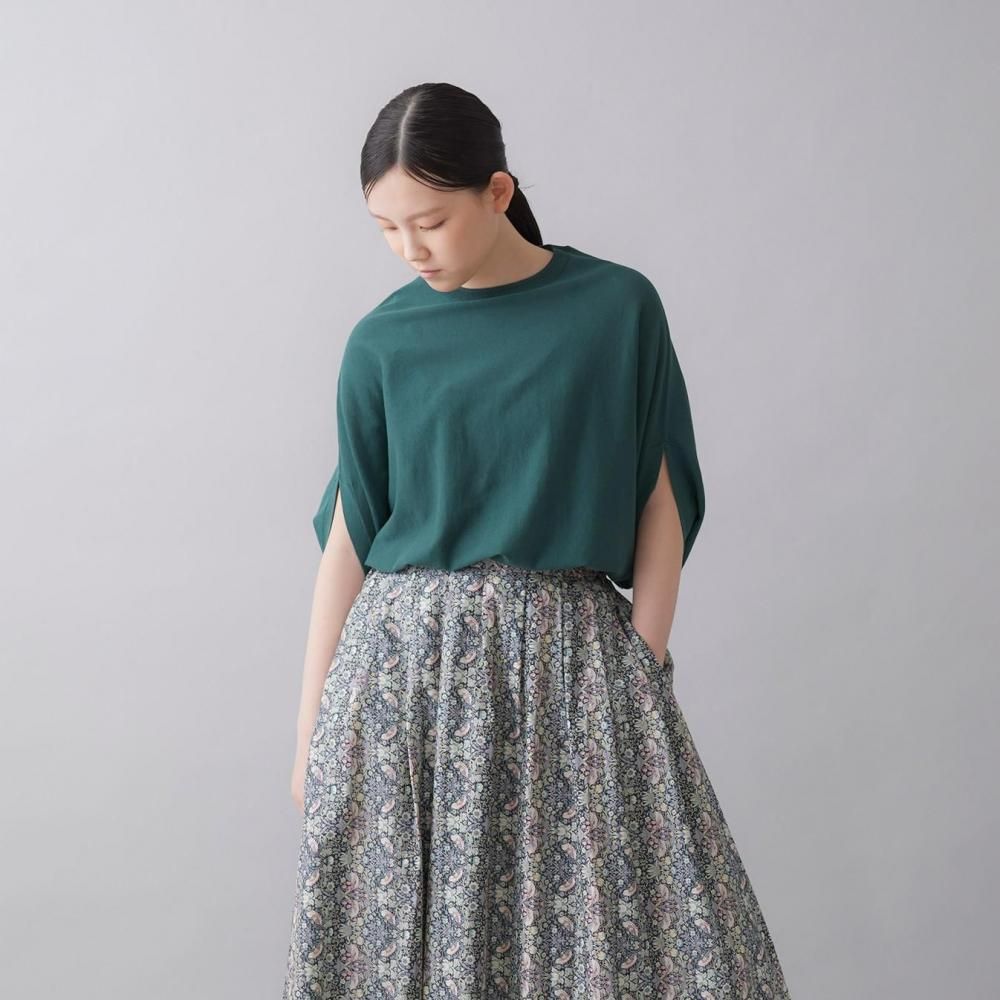 ポイントは袖口に入ったスリット、動きやすさをプラスしながら、さりげない肌見せで軽やかな印象を与えます。