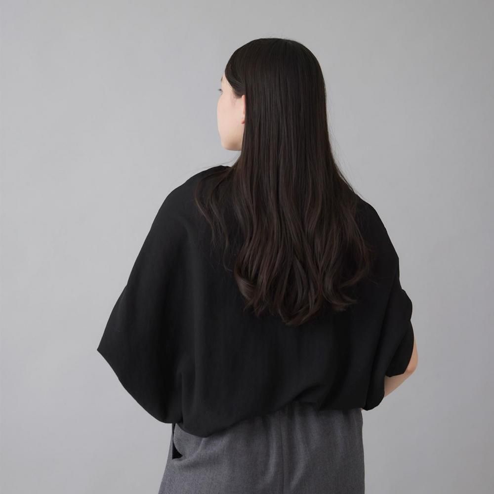 ドルマンスリーブで肩線と身頃以外は縫い目がなく、糸の美しい目面が際立ちます。