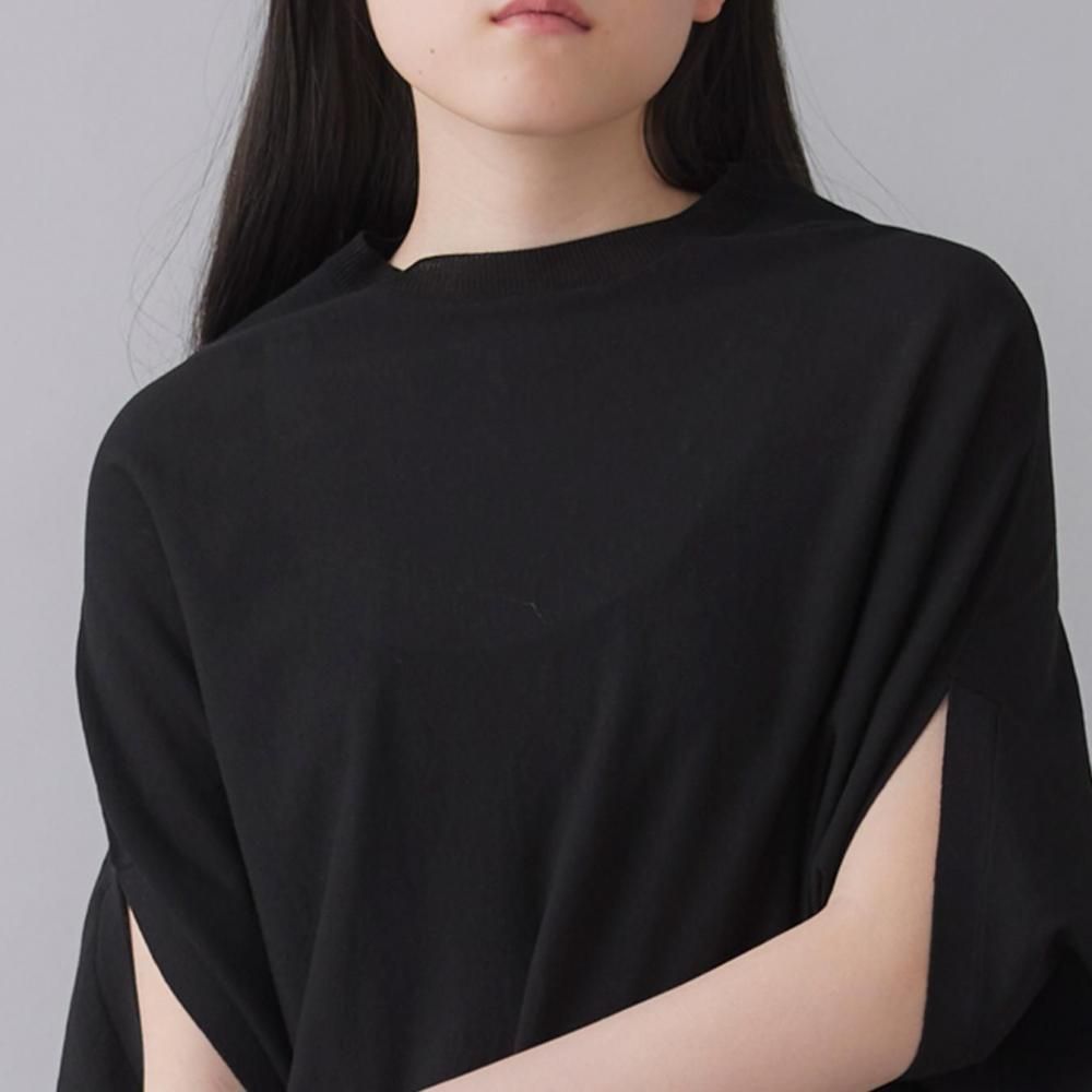 しなやかな落ち感と、袖のスリットがアクセントになったドルマンプルオーバー。