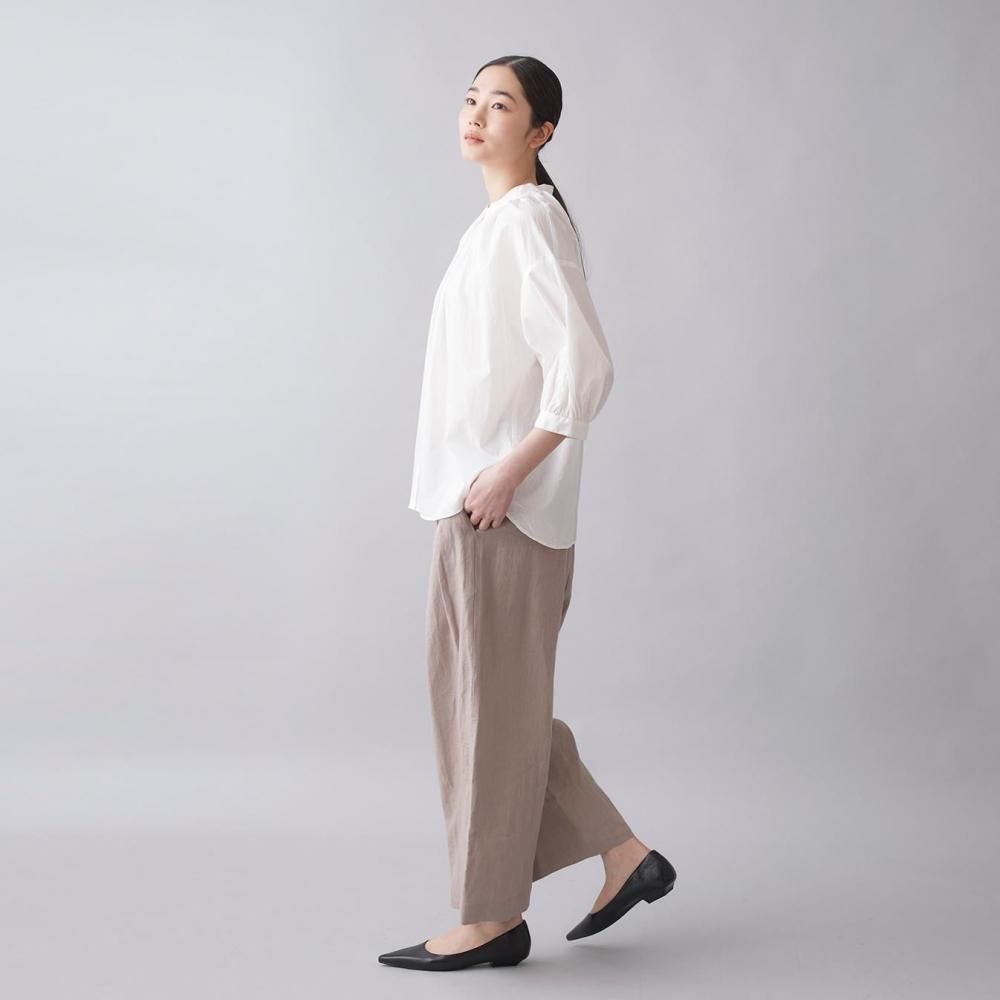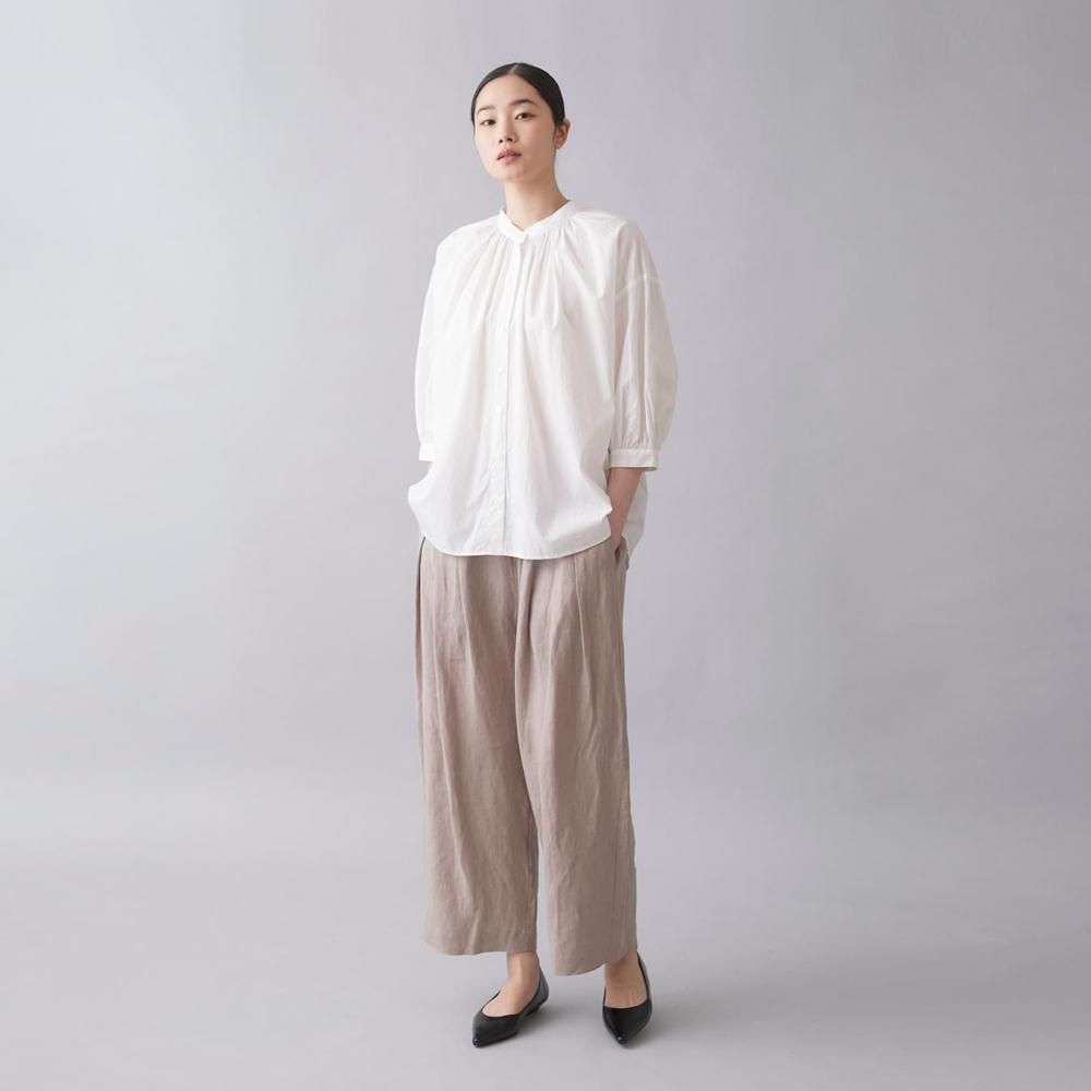 素材には、しなやかで落ち感があり、透け感の少ない40/1日本製リネンを使用。