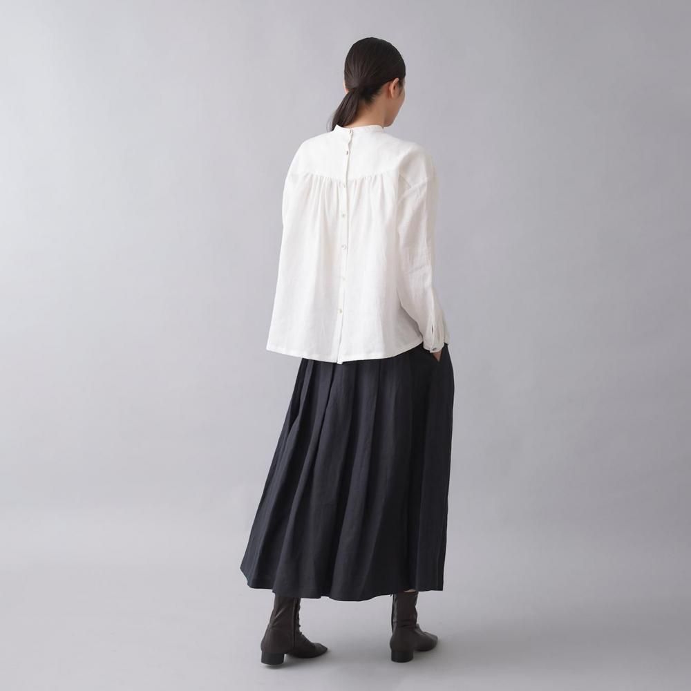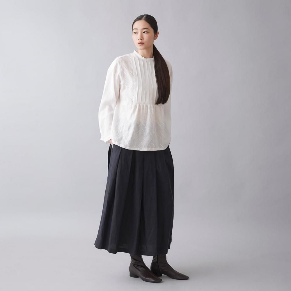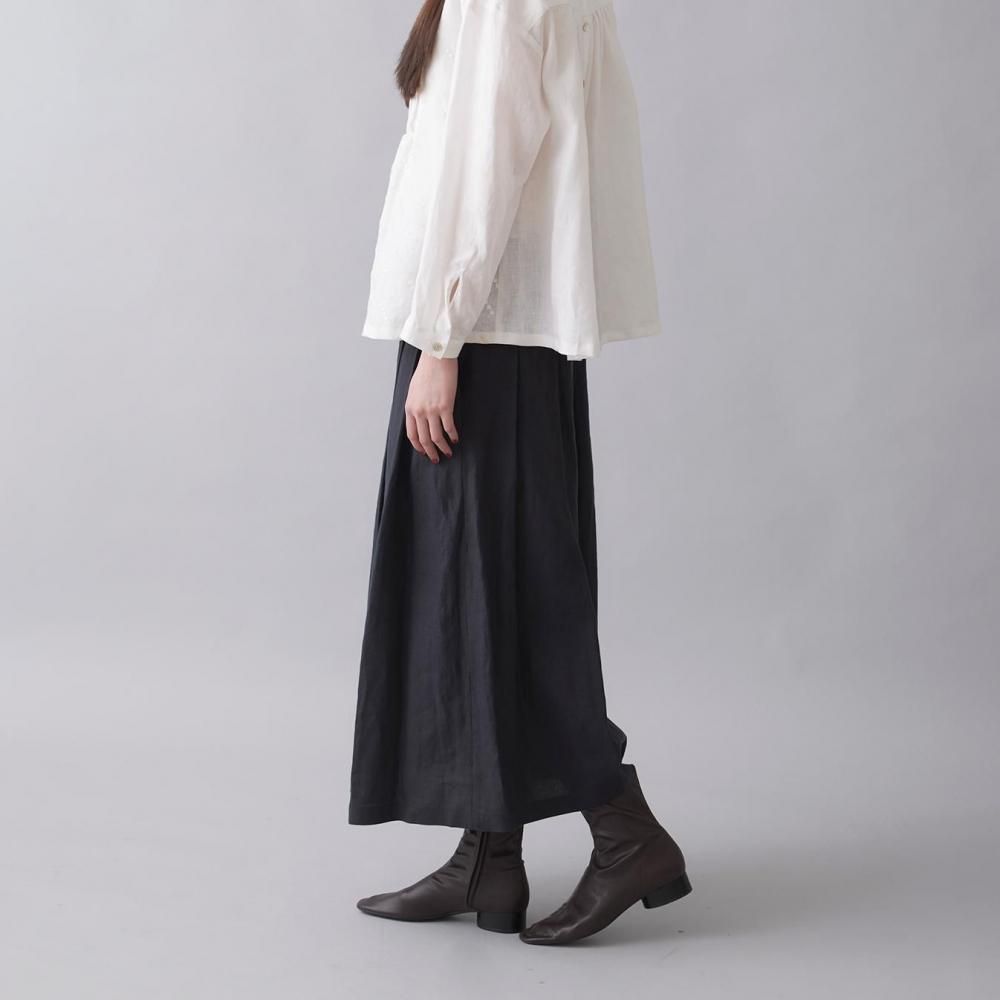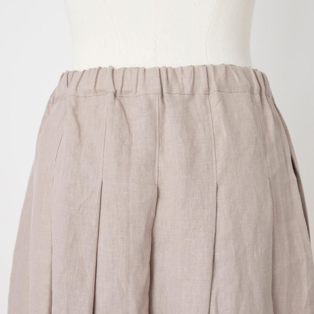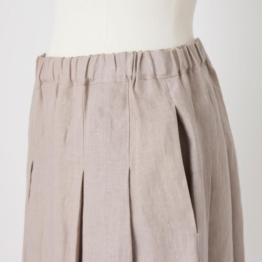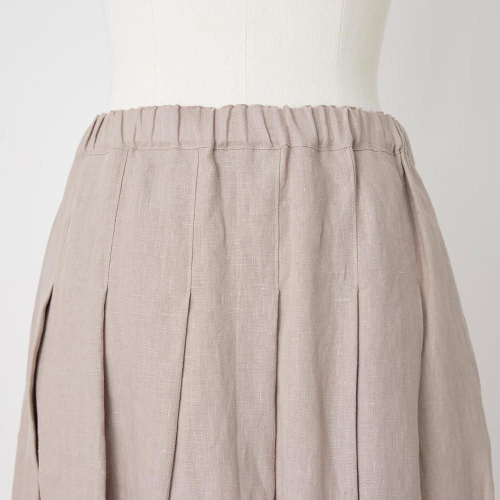 涼やかな着心地のリネン素材を使いながら、カラーは秋らしい深みを取り入れたロングタックスカート。