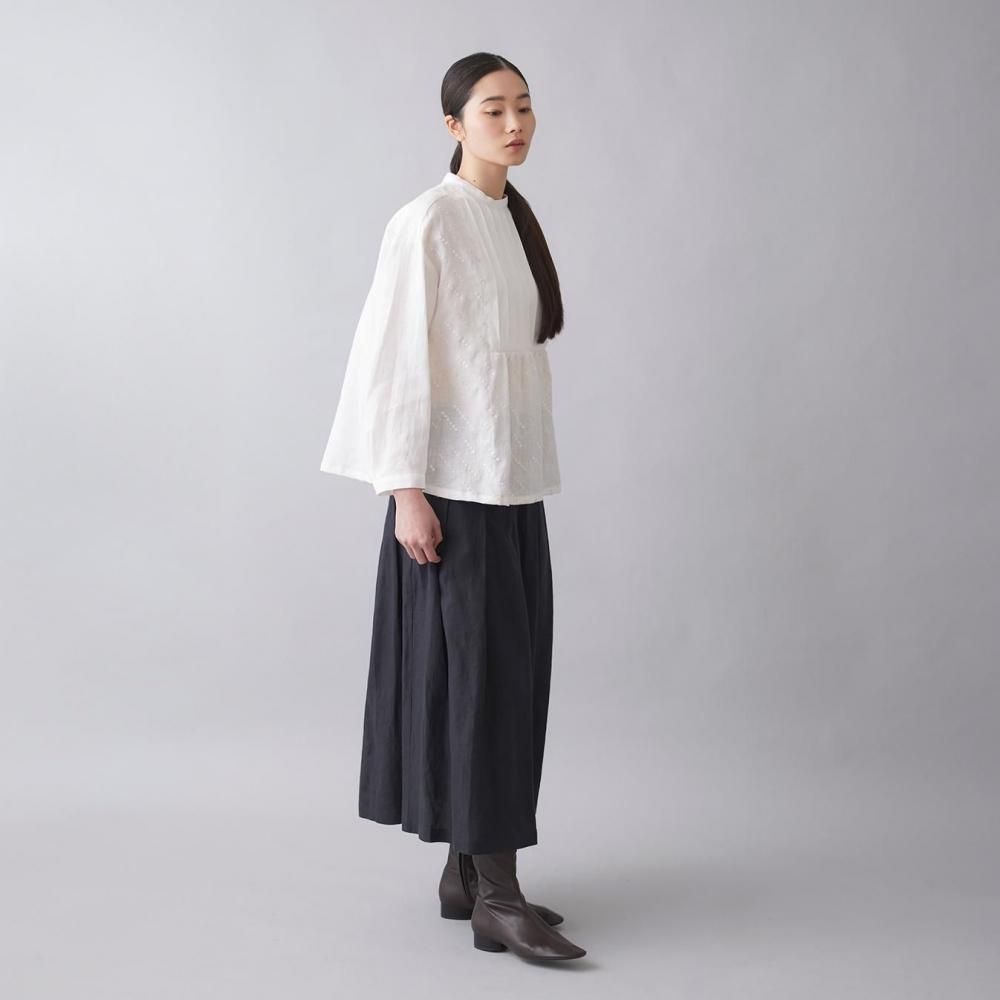 素材には、しなやかで落ち感があり、透け感の少ない40/1日本製リネンを使用。