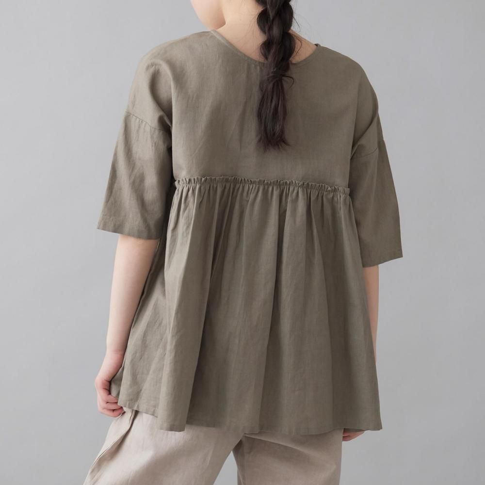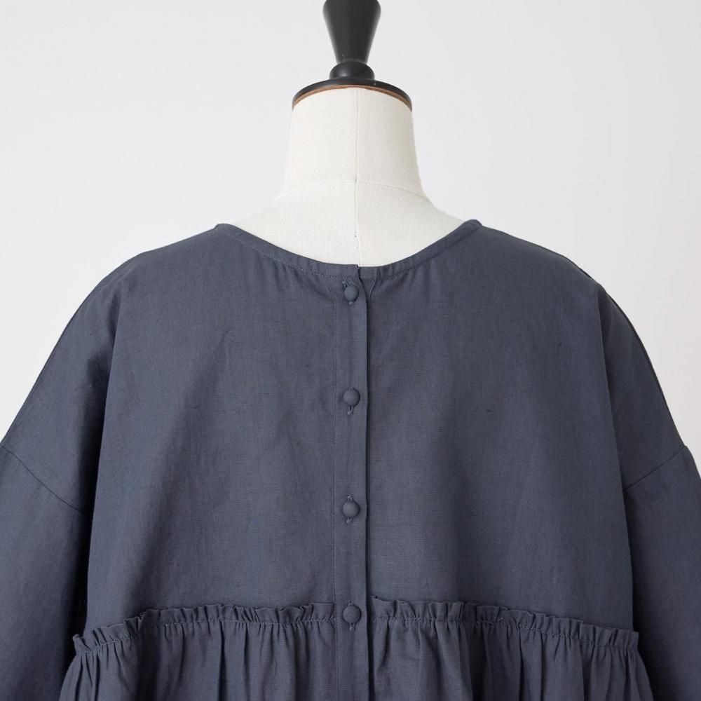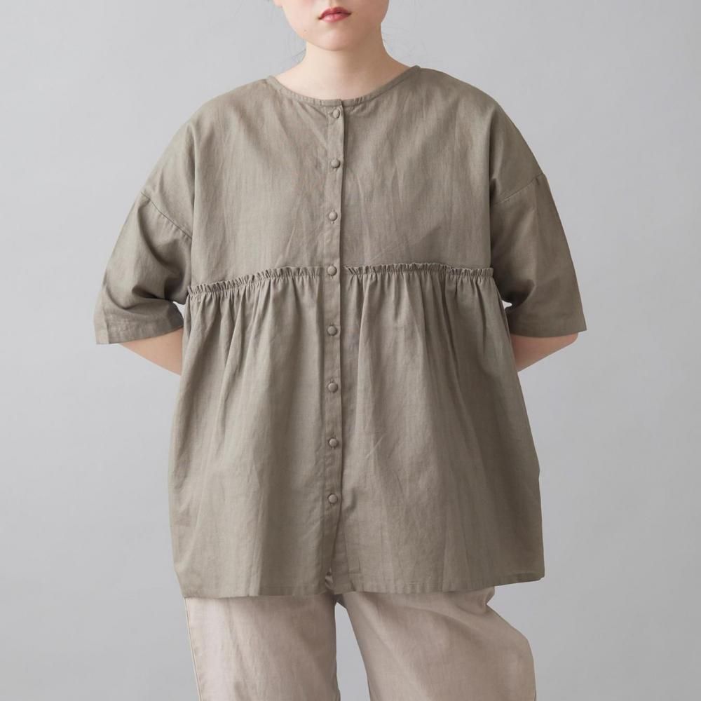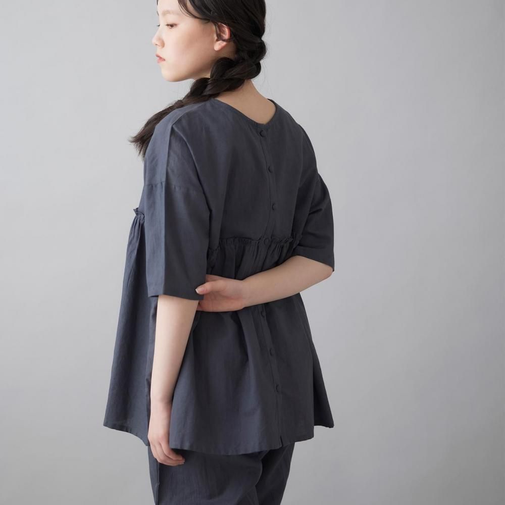 前後どちらを前にしても着られる2way仕様で、ボタンを前にすれば軽やかな羽織りとしても、後ろにすればすっきりとしたプルオーバーとして着用可能。
