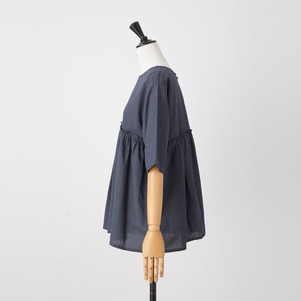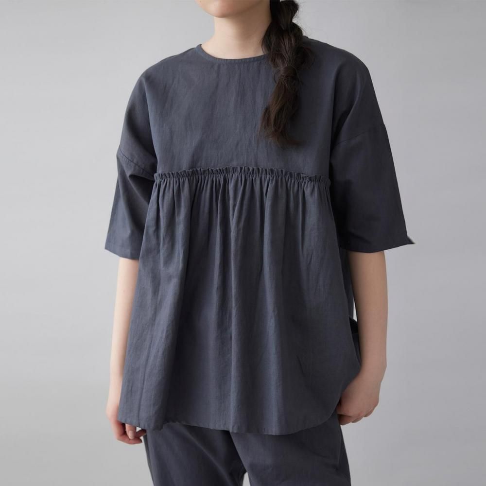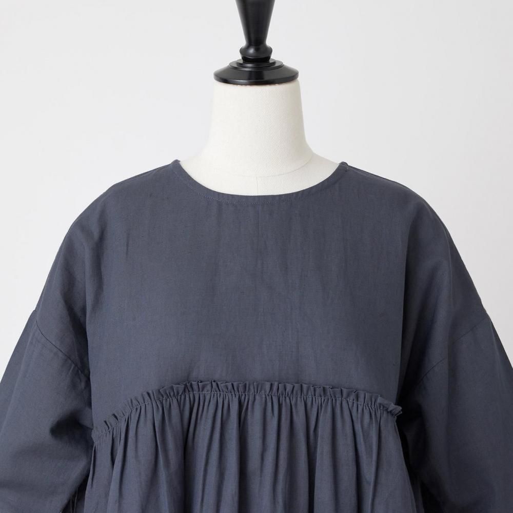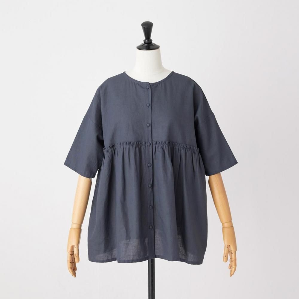 胸下の切替から広がるフリルが、さりげなく女性らしさを添える2wayブラウス。