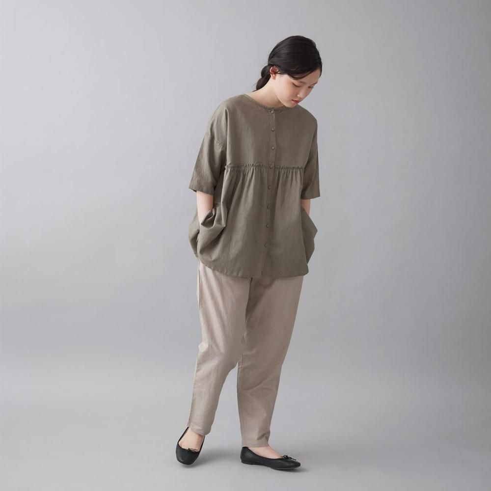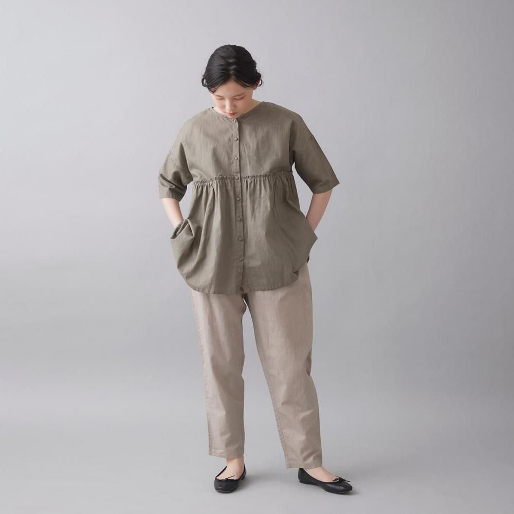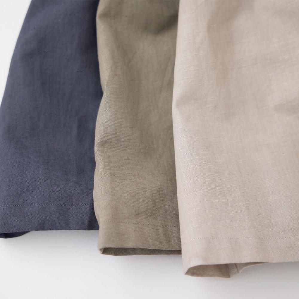 さらに、こちらのコットンリネンは麻特有の上品な光沢感がより強く表れ、ナチュラルでありながら大人らしい風合いをお楽しみいただけます。