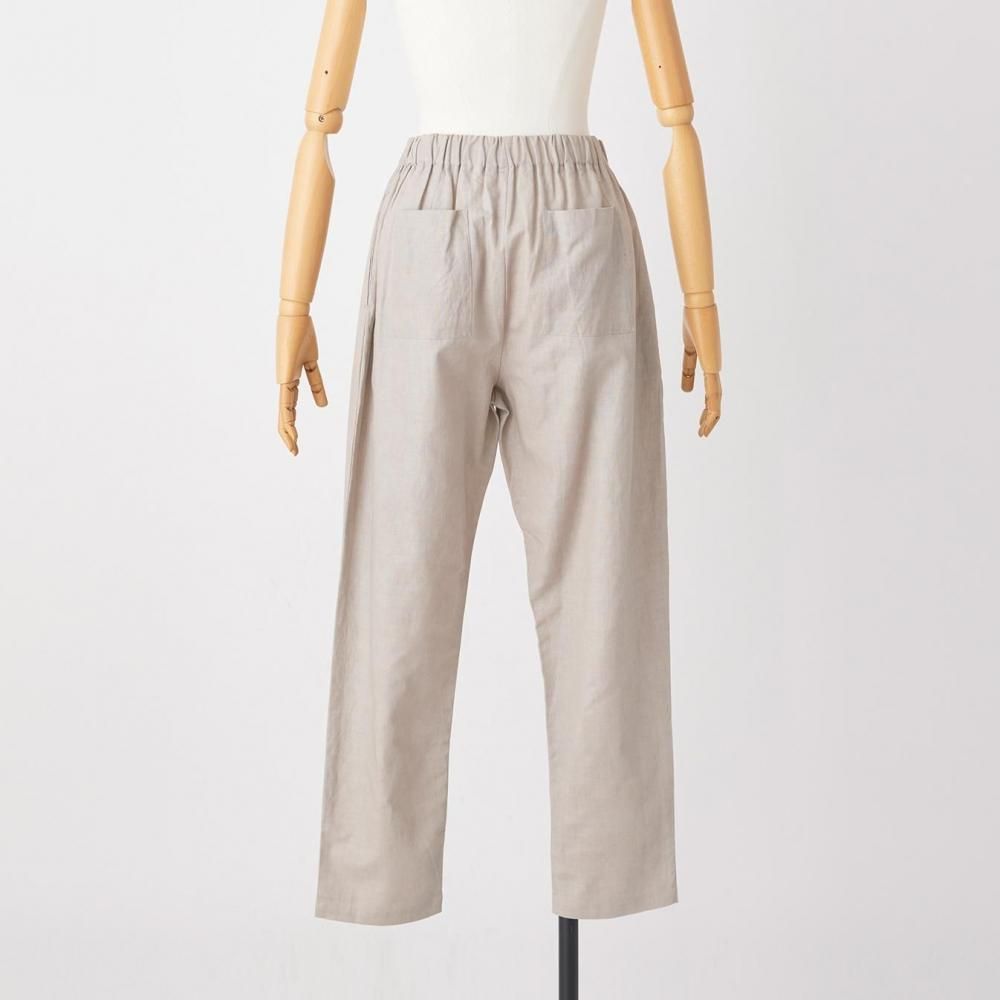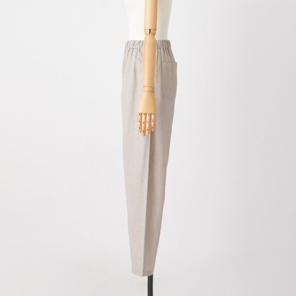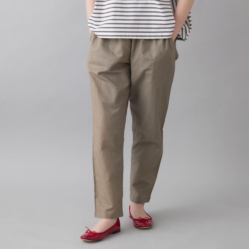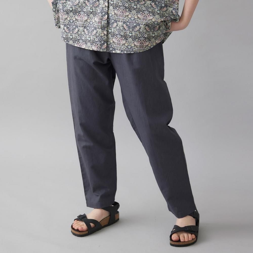 ウエストゴムで楽な履き心地ながらも、すっきりとしたシルエットで上品に見えるパンツです。