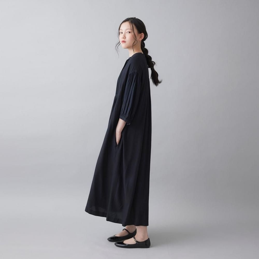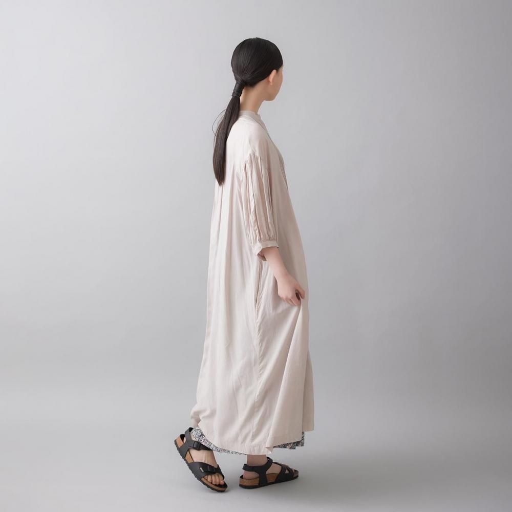 ゆったりとしたシルエットに繊細なディテールを効かせた、インド製モダールワンピース。