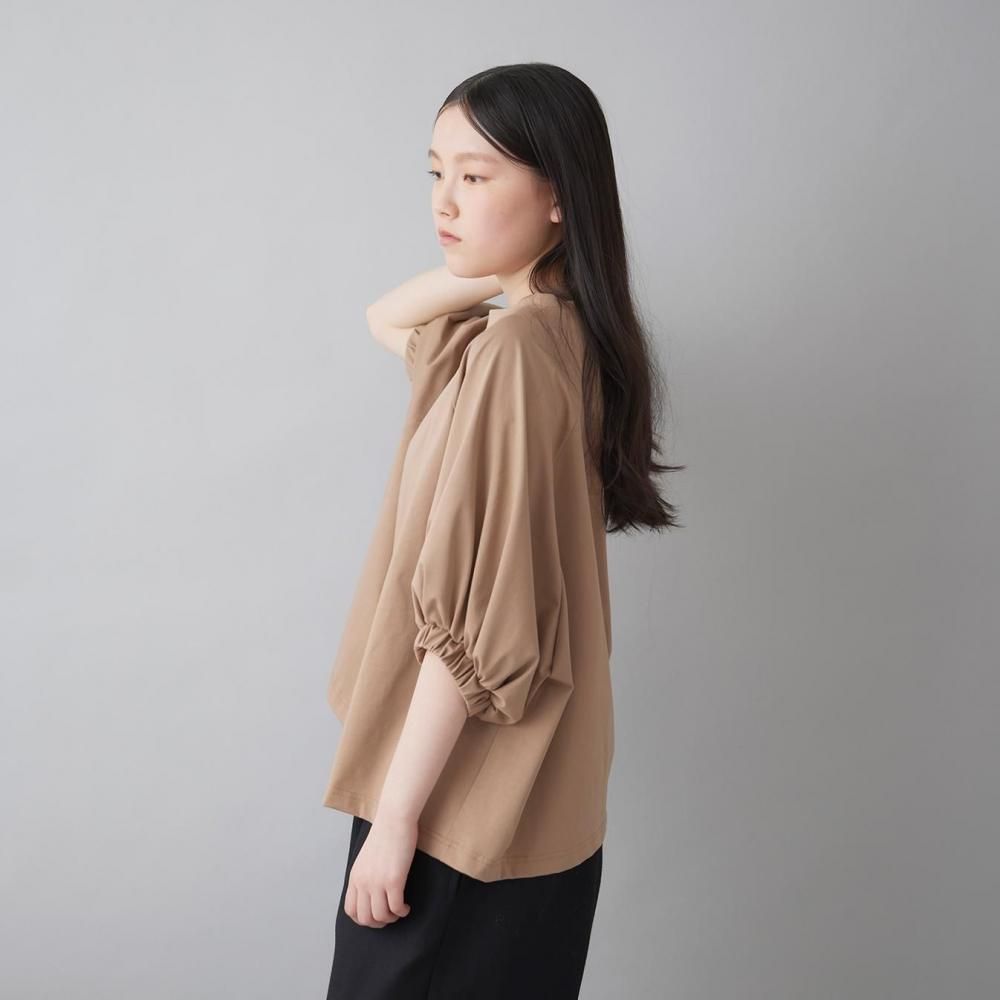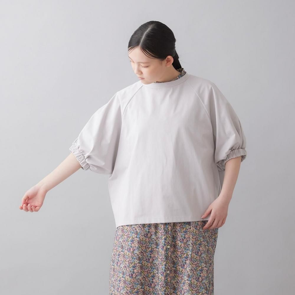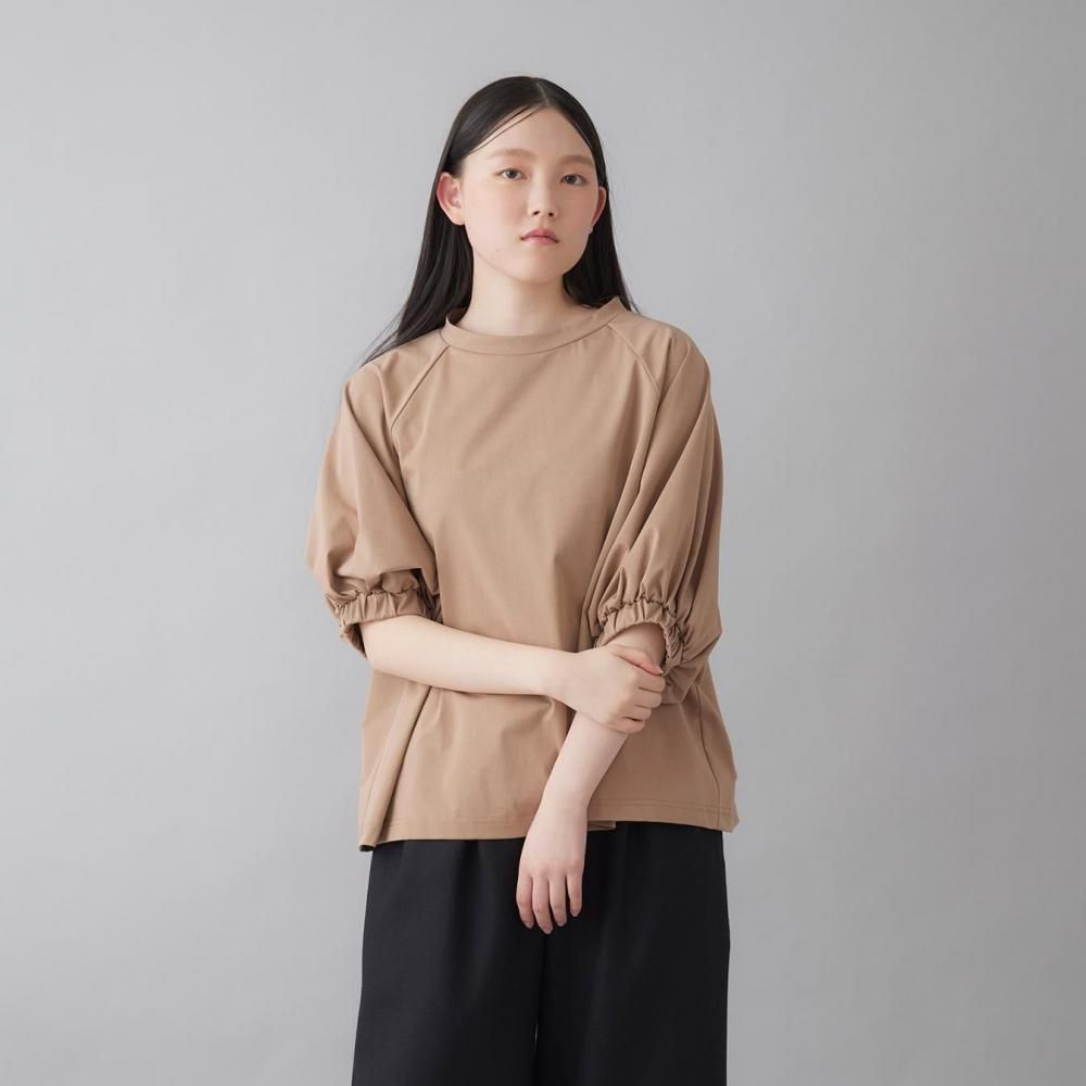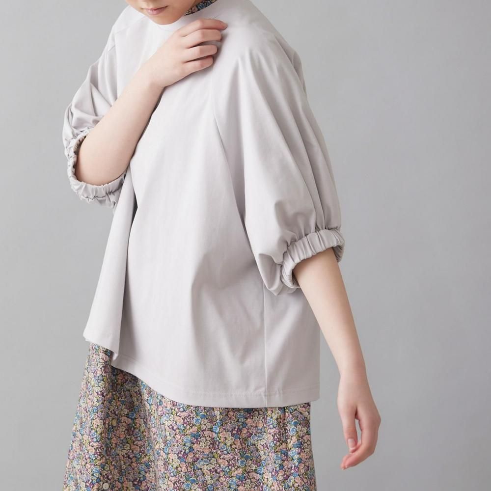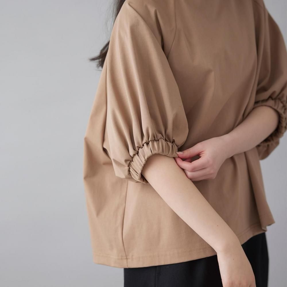 袖口にゴムを入れたふんわりシルエットの五分袖は、腕を華奢に見せつつ動きやすさも兼ね備えています。