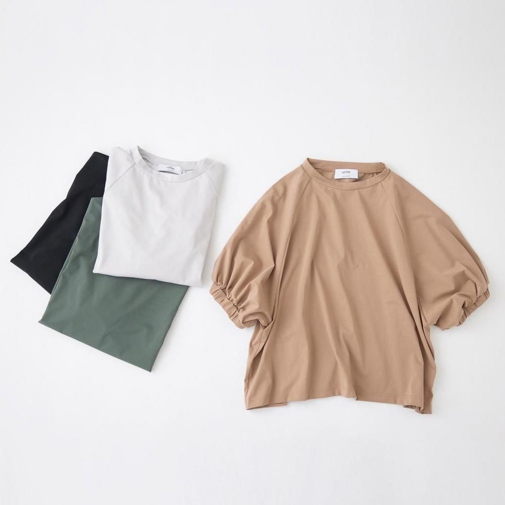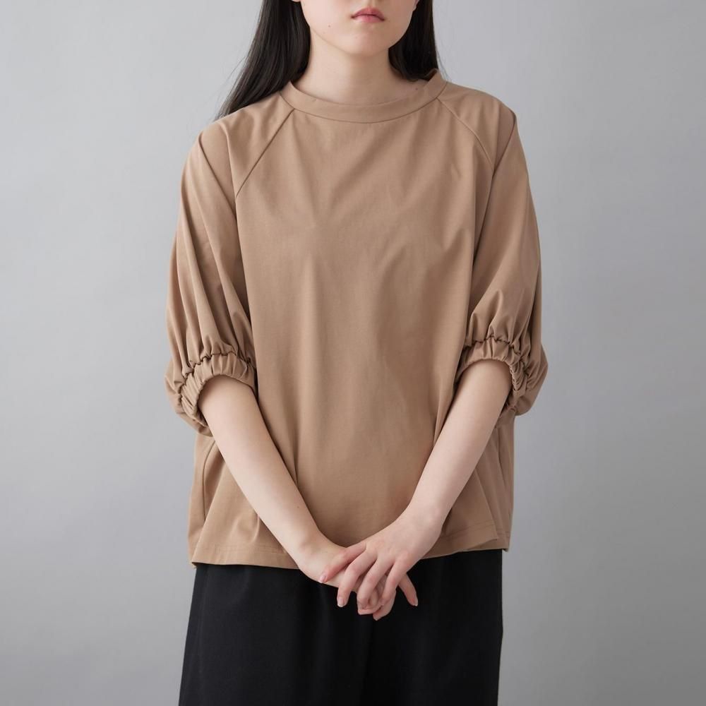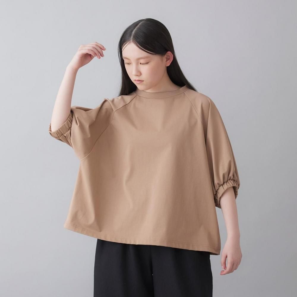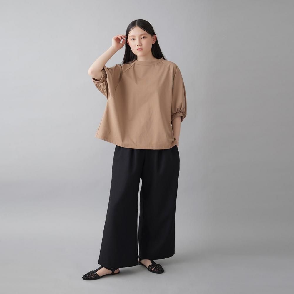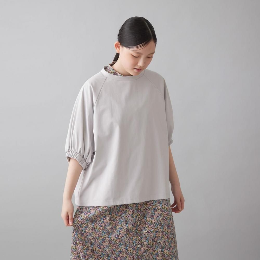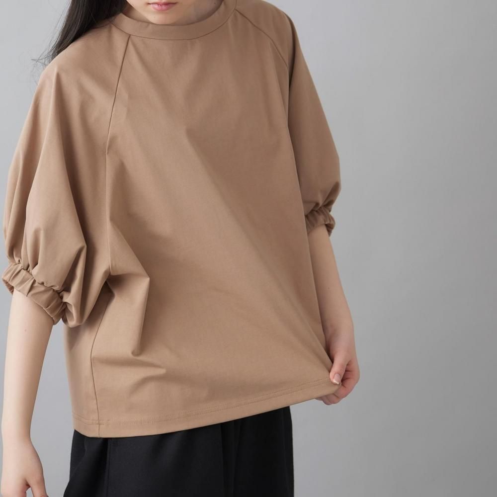 袖口にゴムを入れたふんわりシルエットの五分袖は、腕を華奢に見せつつ動きやすさも兼ね備えています。
