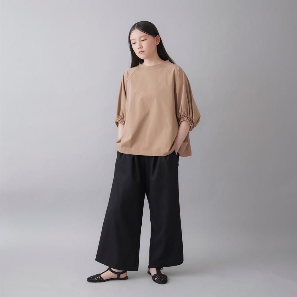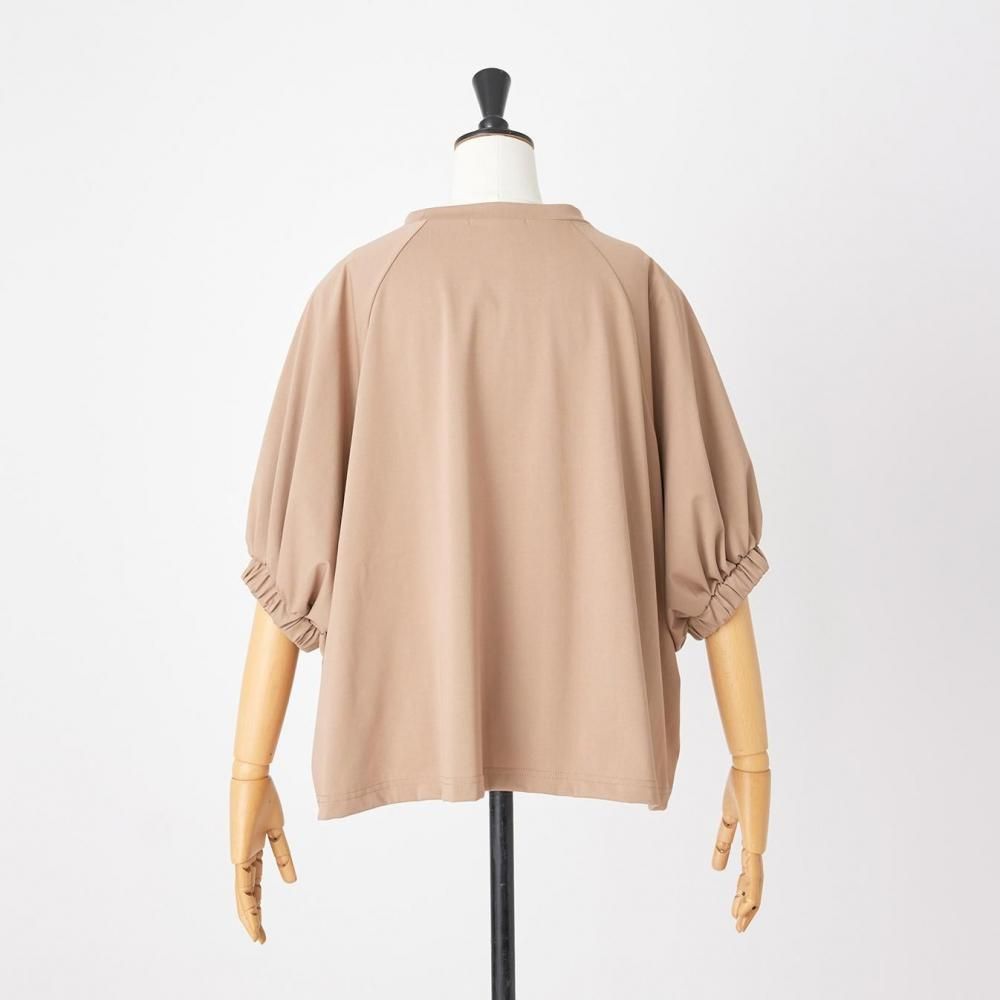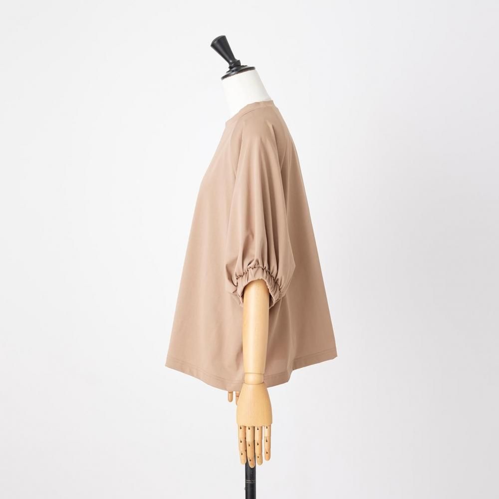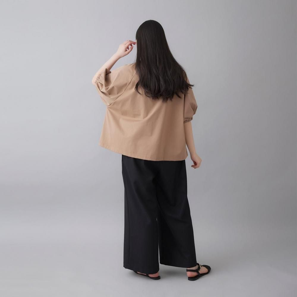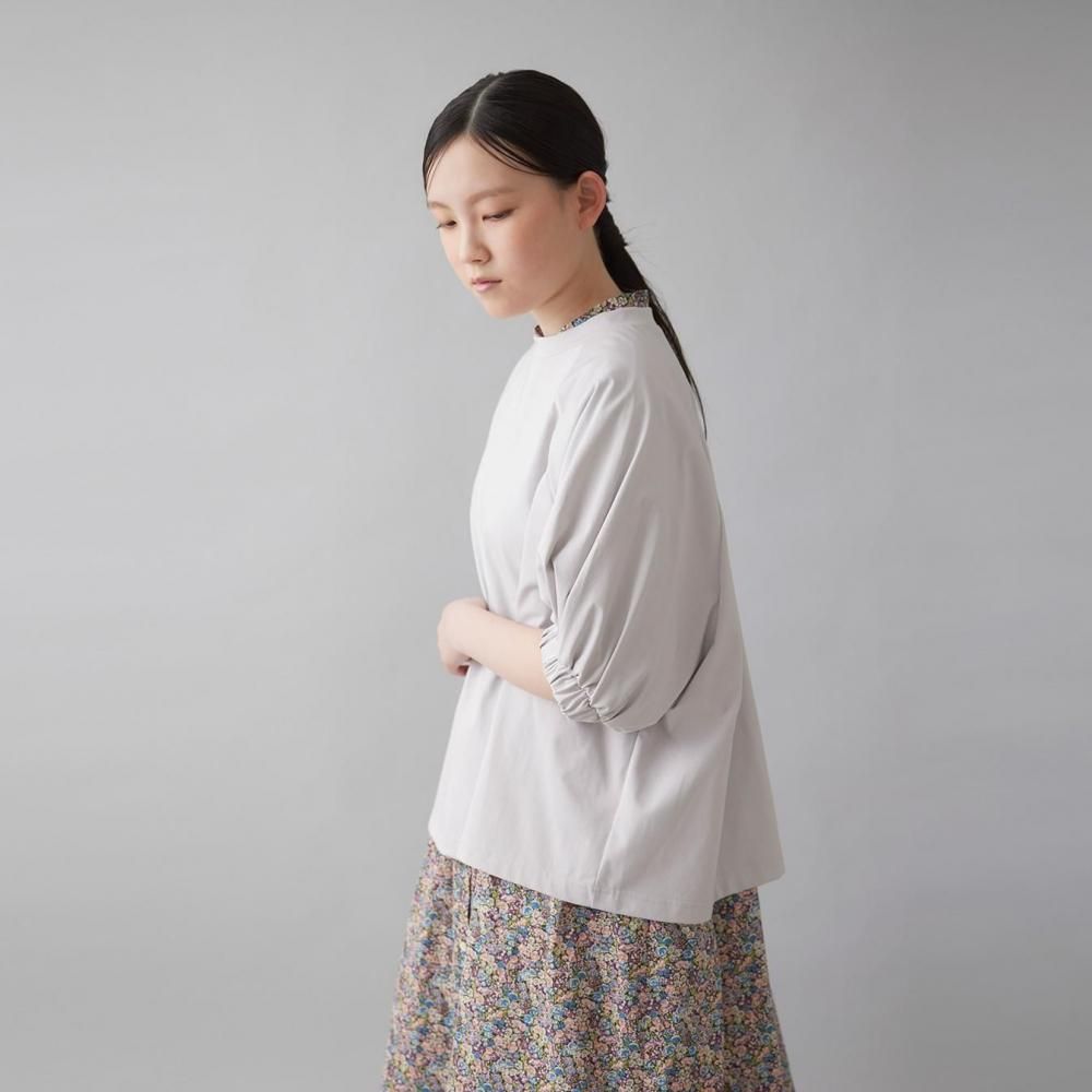 袖口にゴムを入れたふんわりシルエットの五分袖は、腕を華奢に見せつつ動きやすさも兼ね備えています。