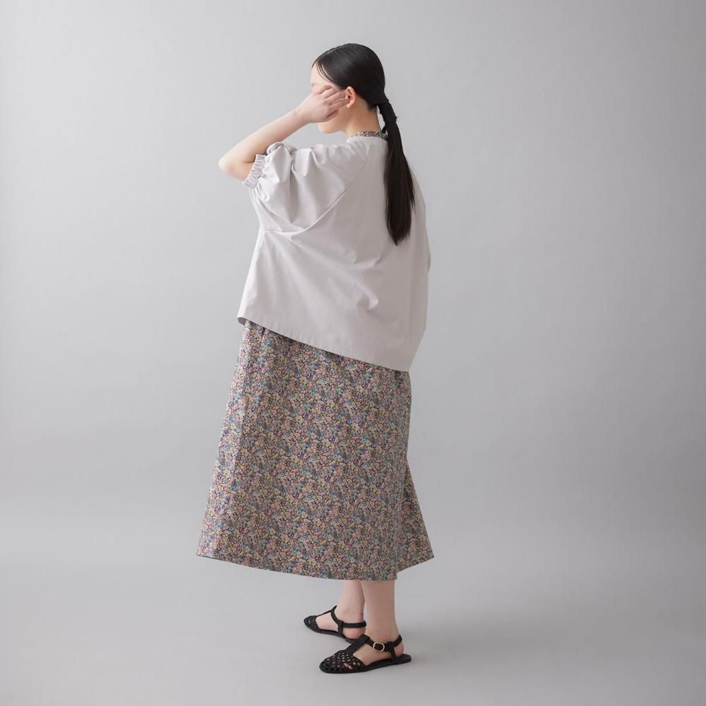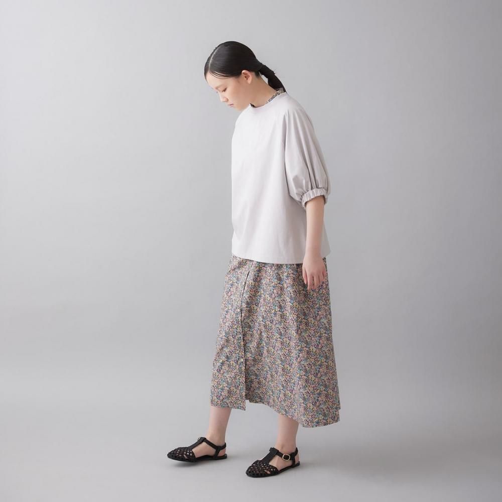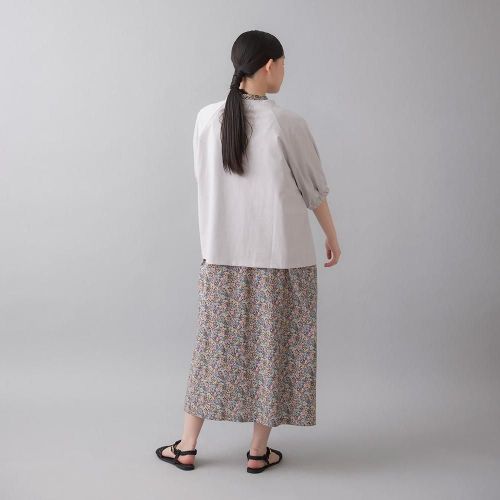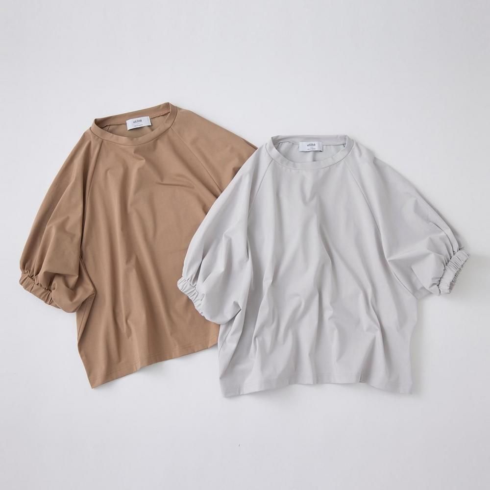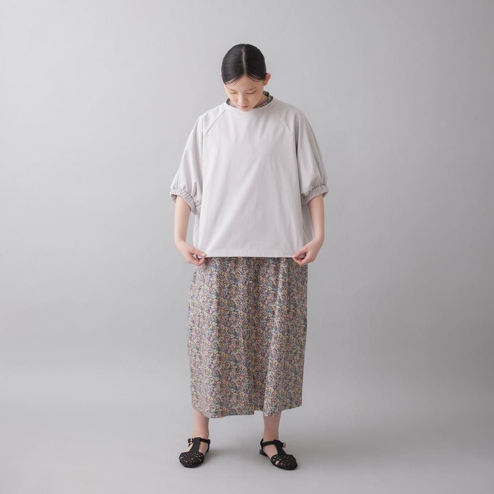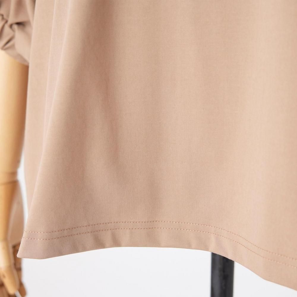 袖口にゴムを入れたふんわりシルエットの五分袖は、腕を華奢に見せつつ動きやすさも兼ね備えています。