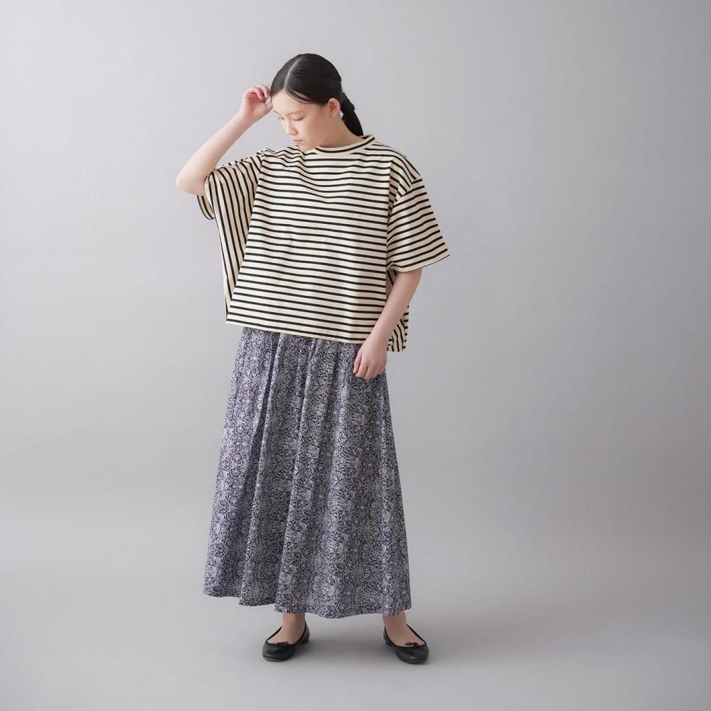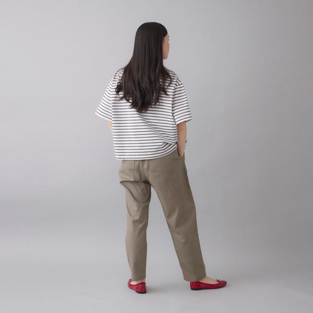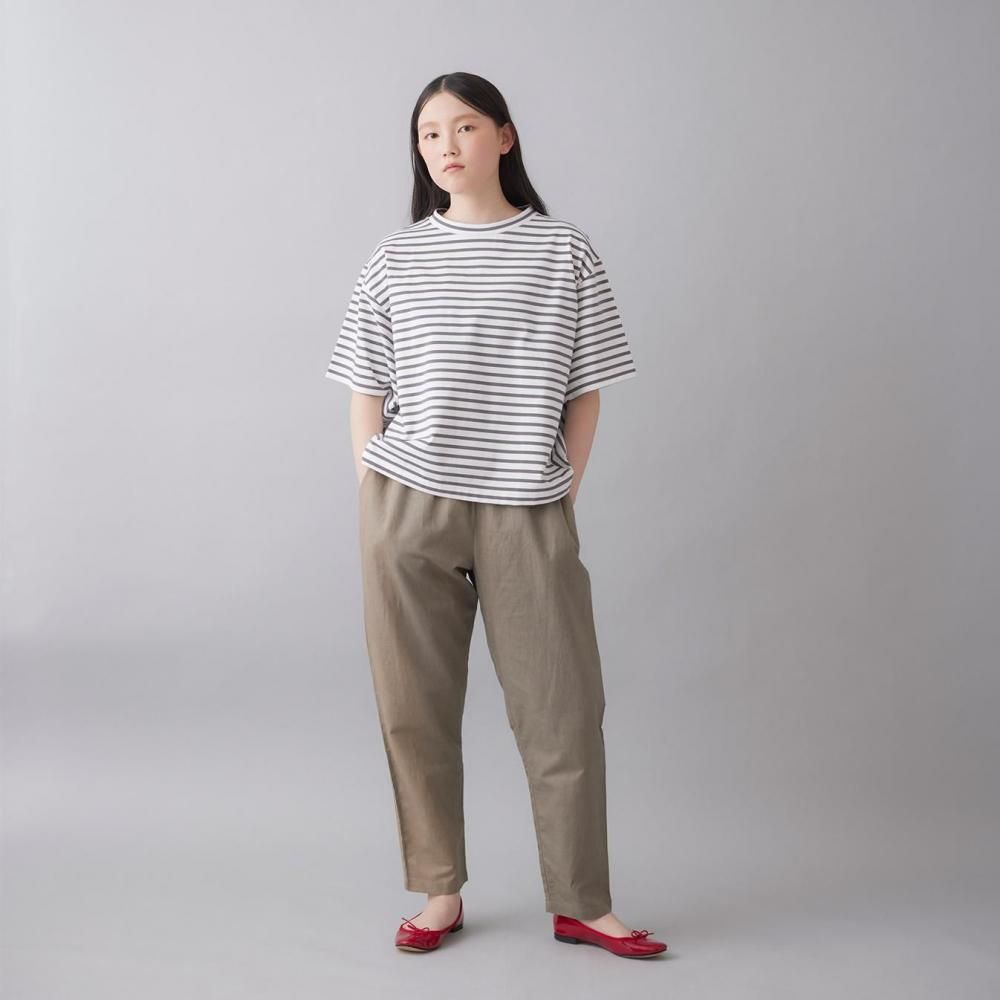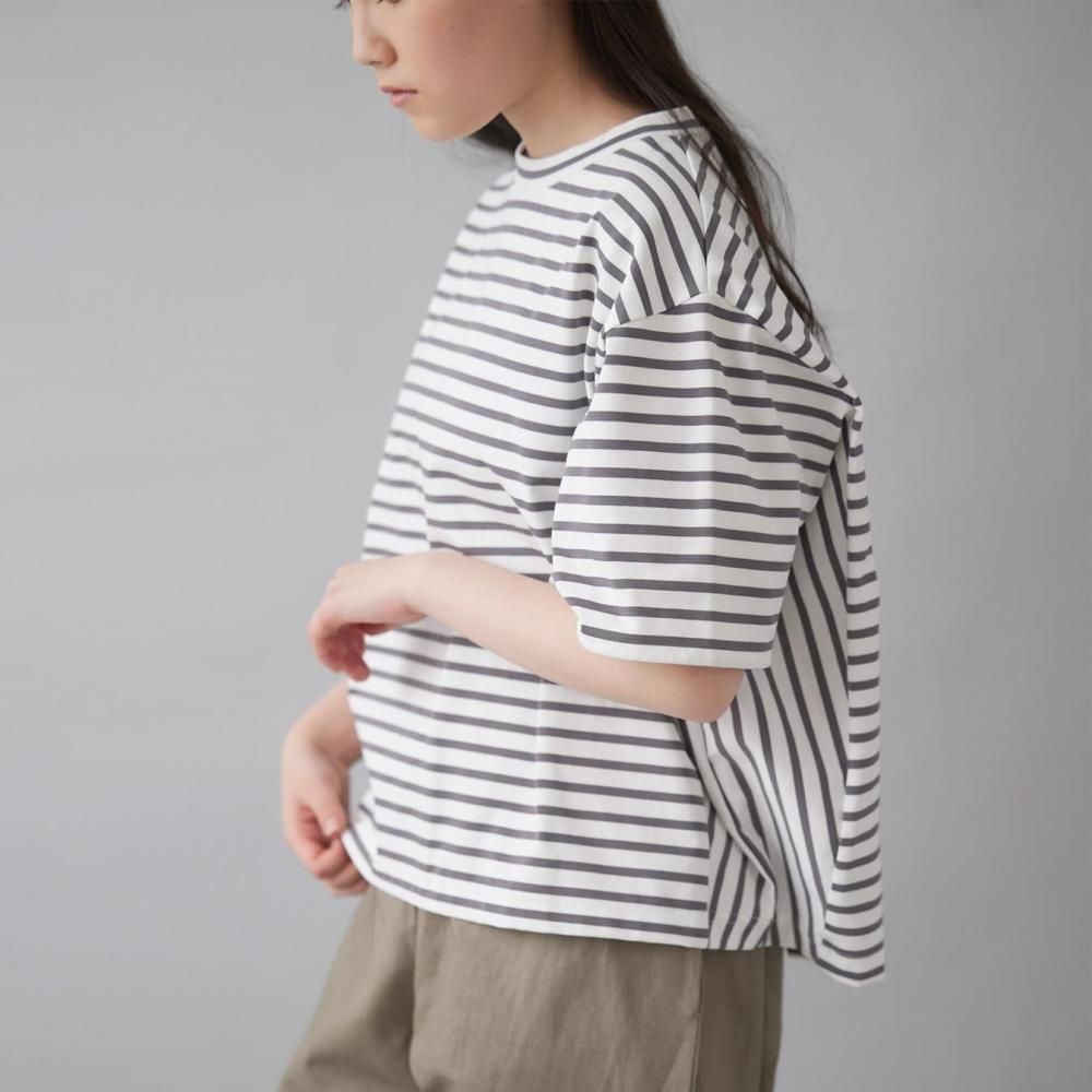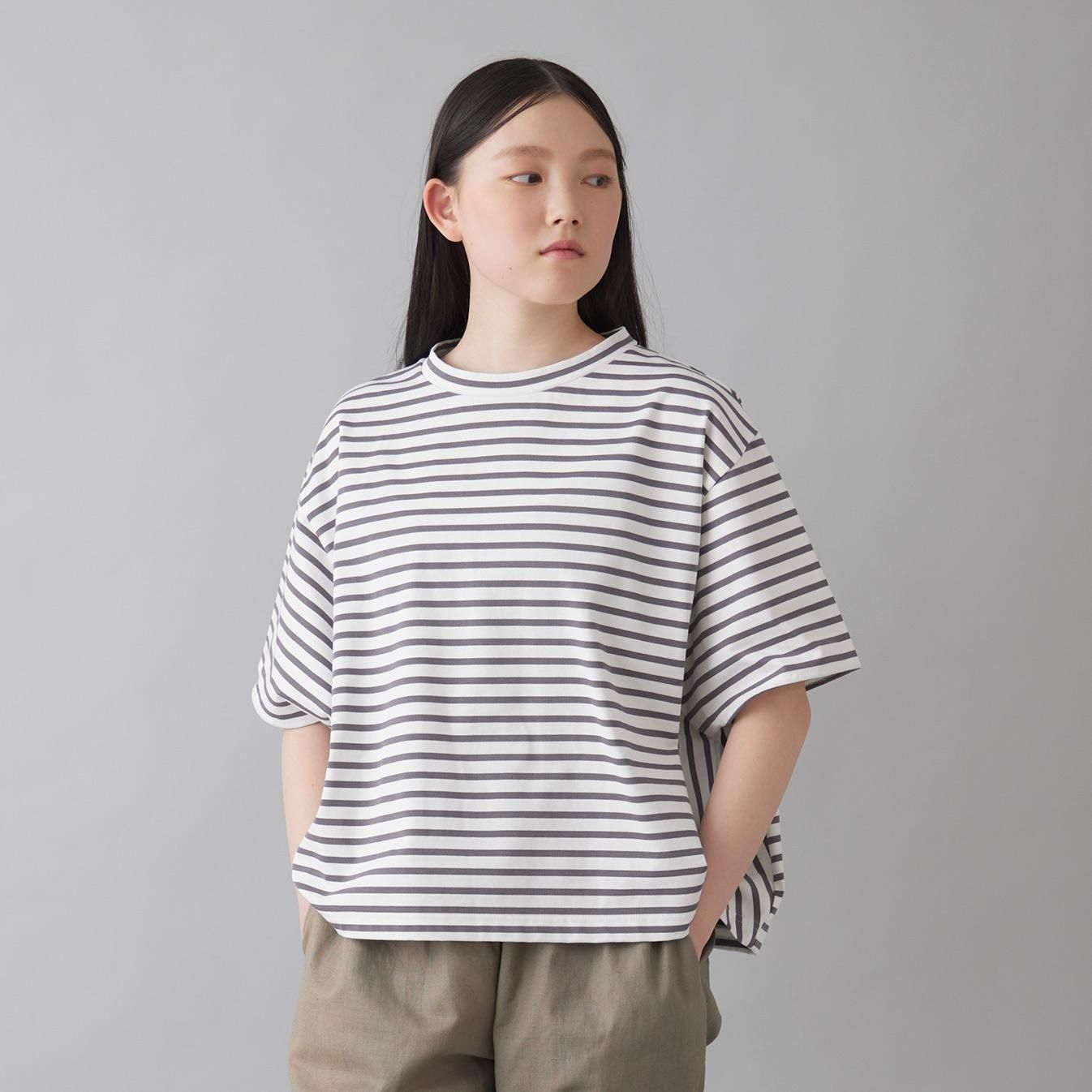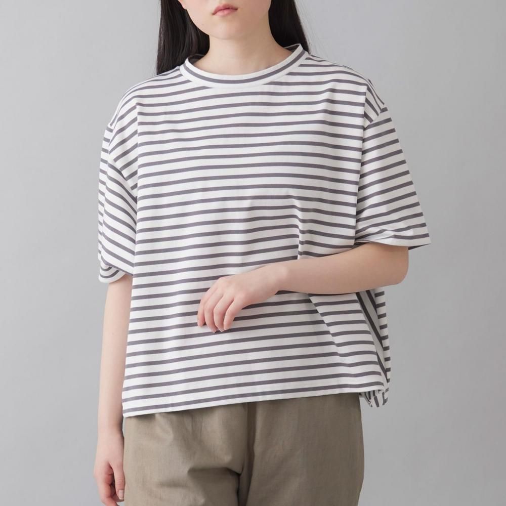 微強撚糸で編み上げた天竺ボーダーは、さらりとしたシャリ感とハリを出しつつ、やわらかさも残しているのが特徴です。
