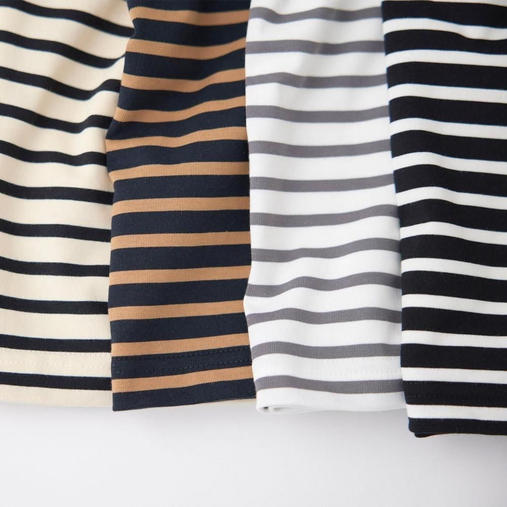 カジュアルに着こなしても、きれいめにスタイリングしても映える、大人にふさわしいボーダートップスです。