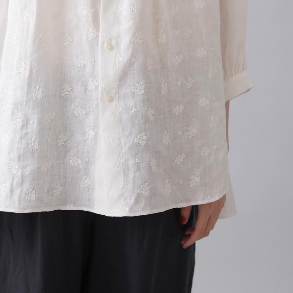 シロは、清潔感のあるやさしい雰囲気。刺繍糸も同色で仕上げているため全体に統一感がありながら、繊細な刺繍が表面にさりげない変化を生み出し、奥行きのある表情を演出します。