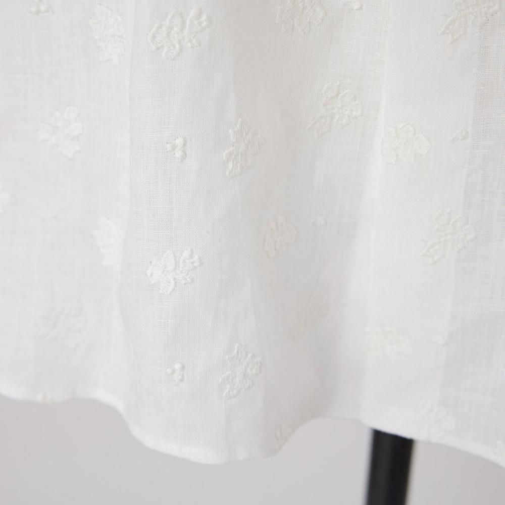 繊細な刺繍がシンプルなシルエットに華やぎを添えています。