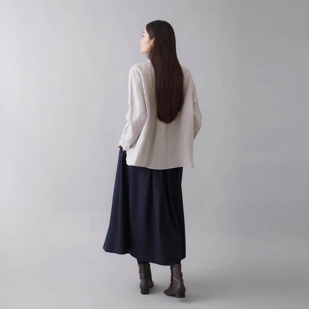 上質なリネン素材ならではのさらりとした肌ざわりと、洗いざらし風のやわらかな風合いに仕上げています。
