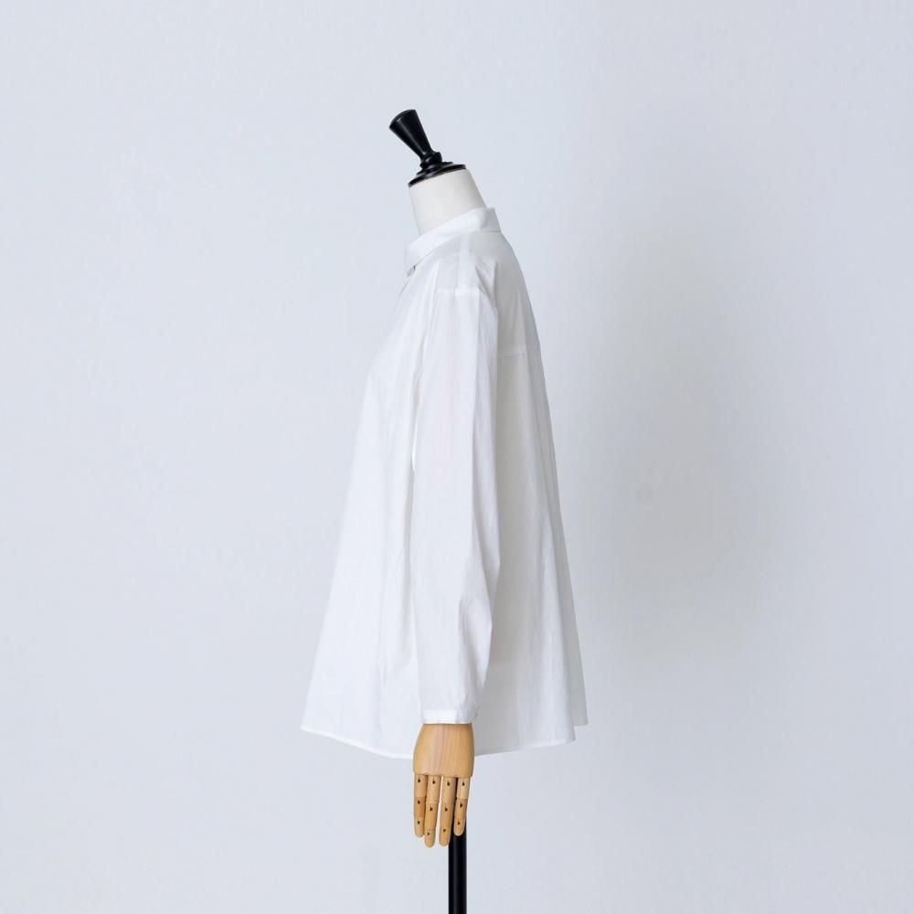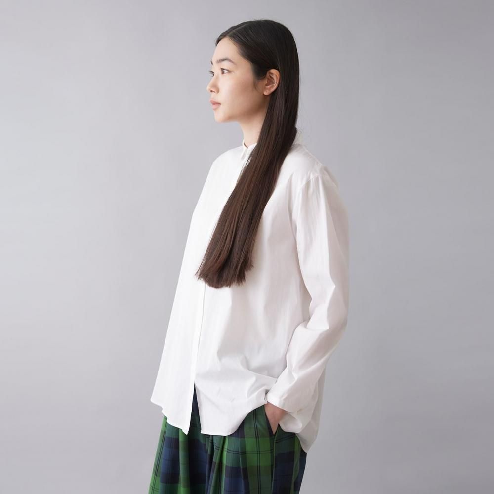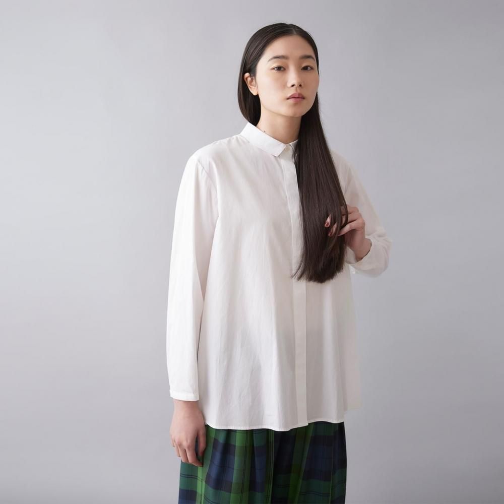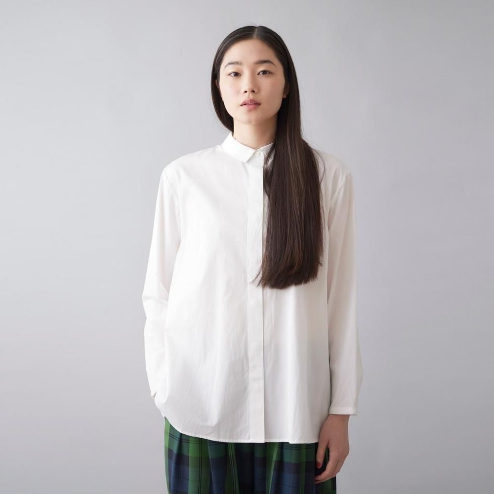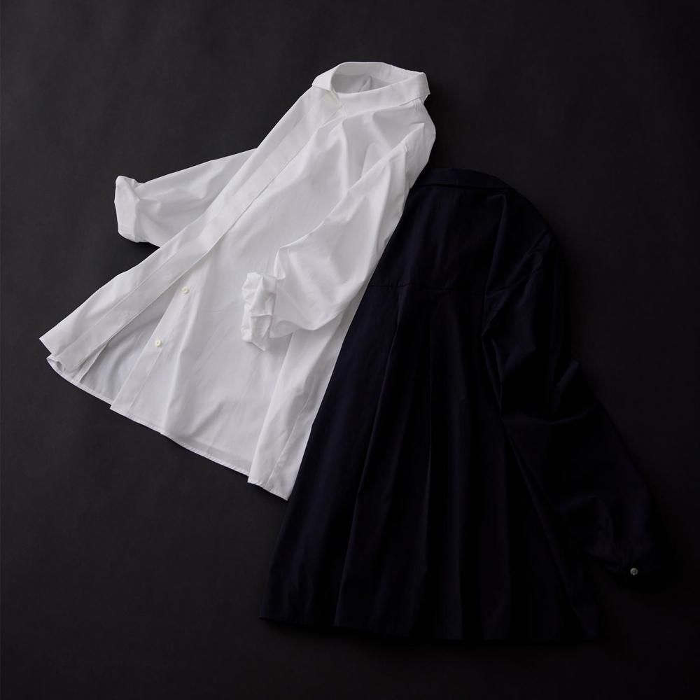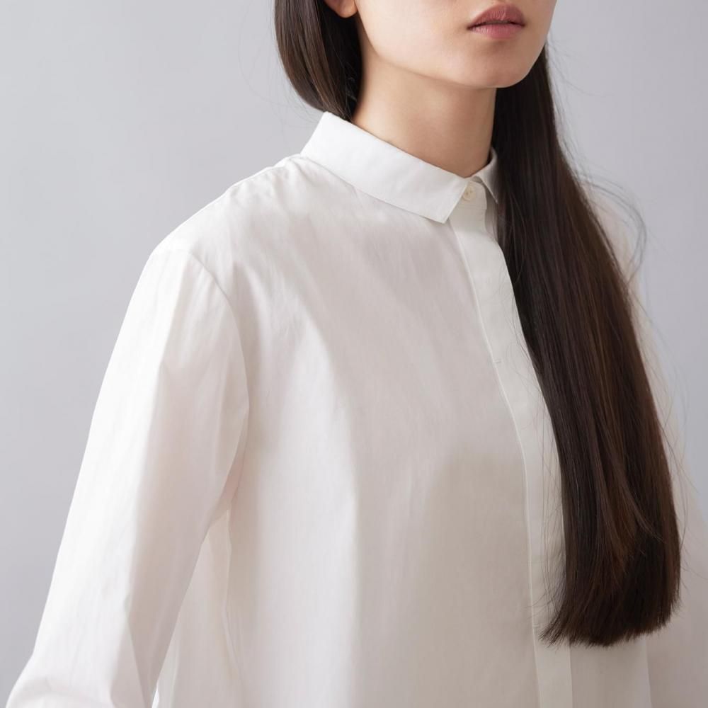 清潔感のあるシロは、顔まわりを明るく見せてくれる万能カラー。どんなスタイルにも合わせやすく、一枚持っていると重宝します。