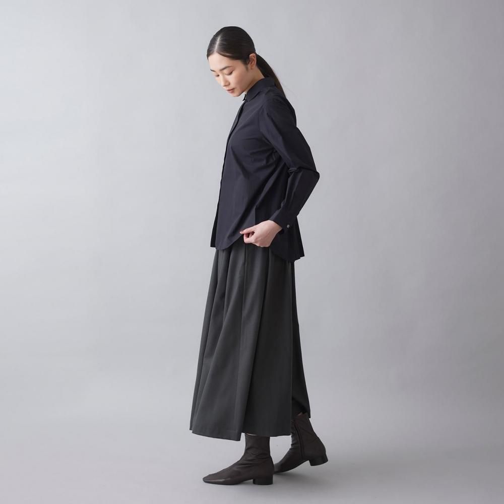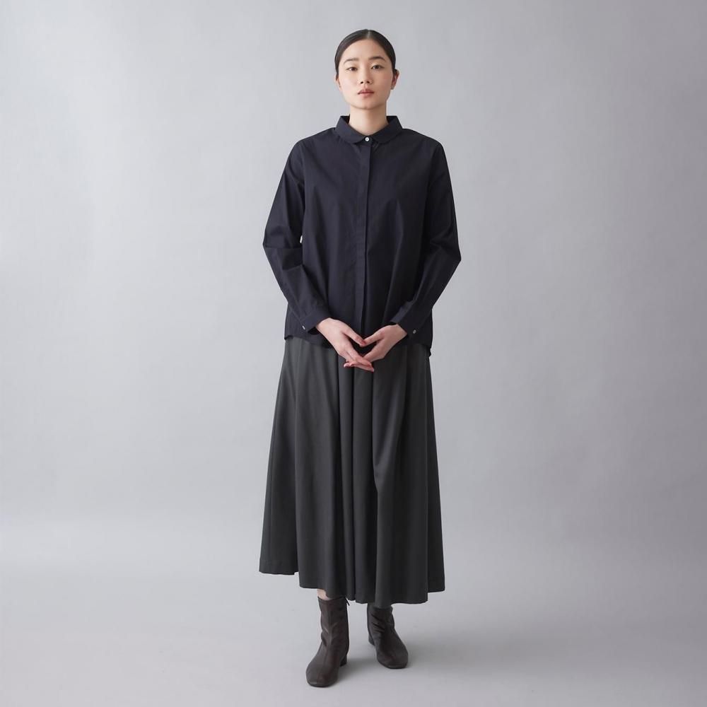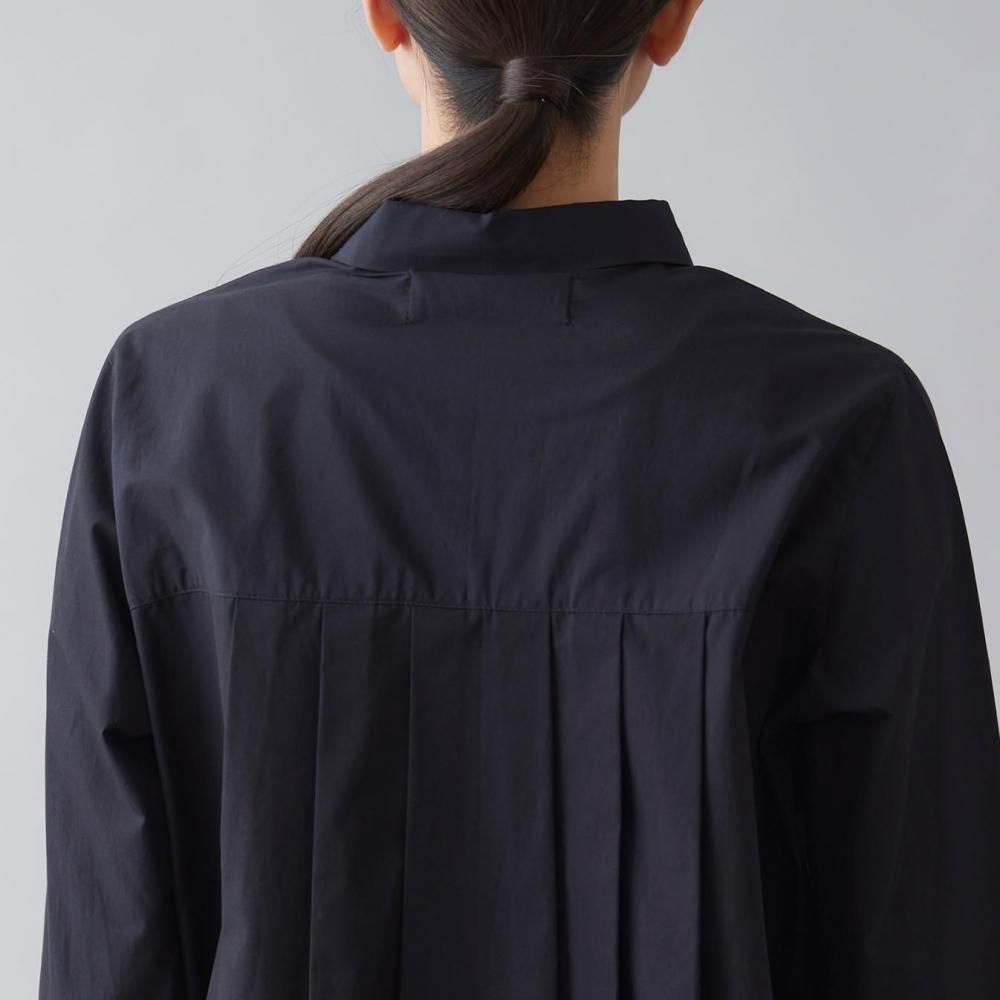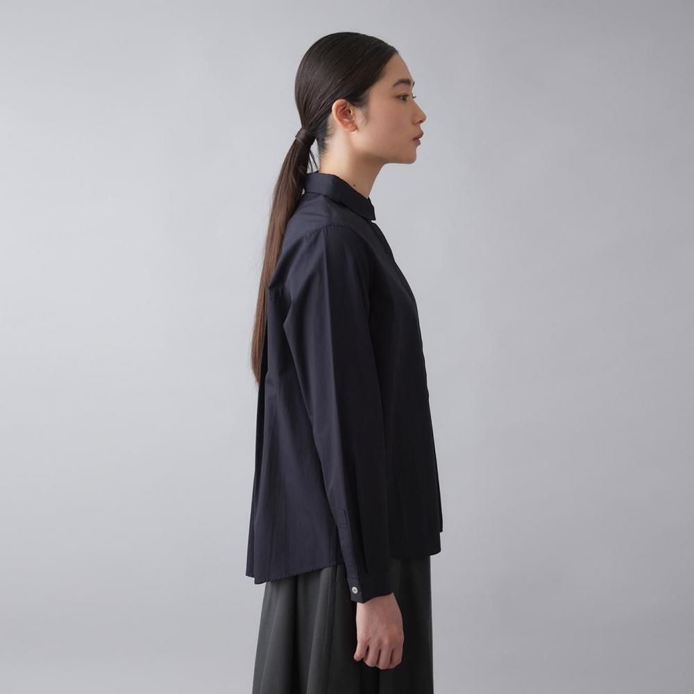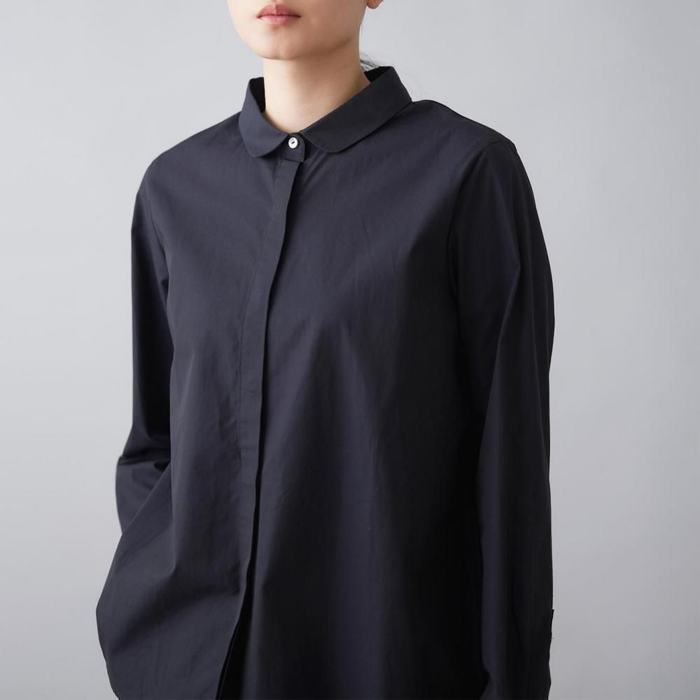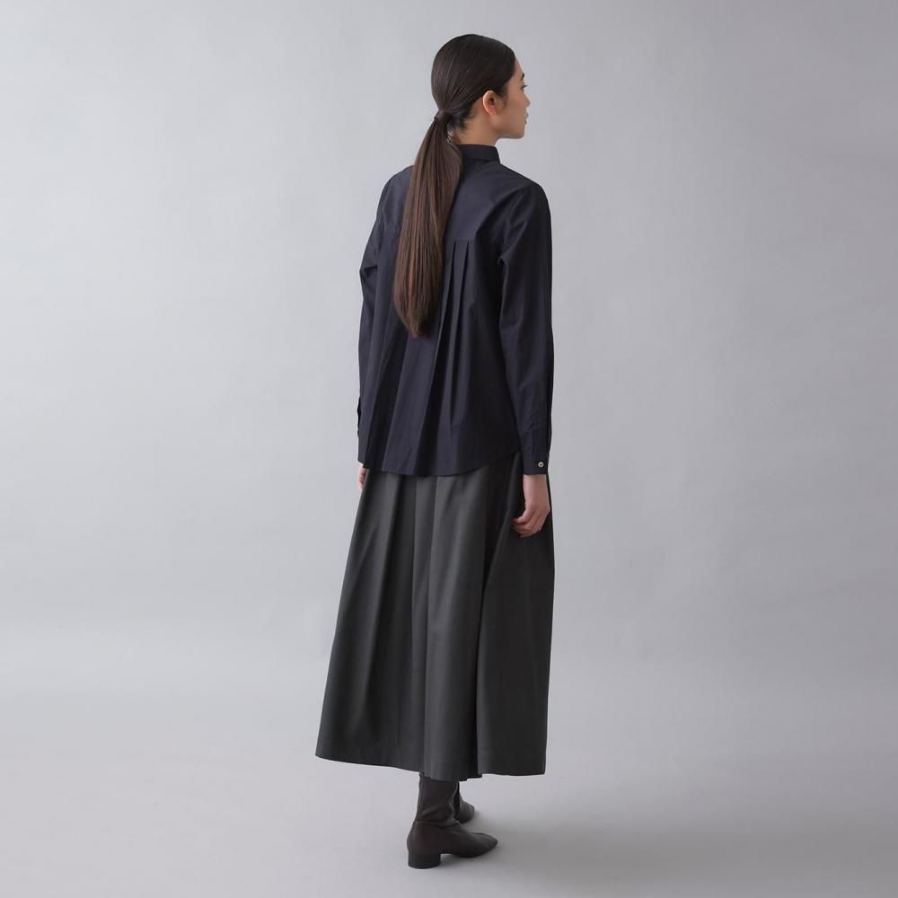 丸襟のやわらかな雰囲気と、後ろ見頃に施したタックの立体感が調和し、シンプルながらも上品な存在感のある一枚です。