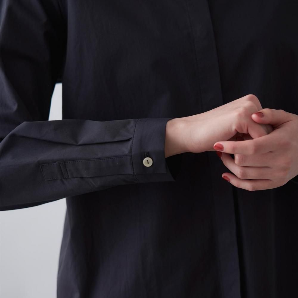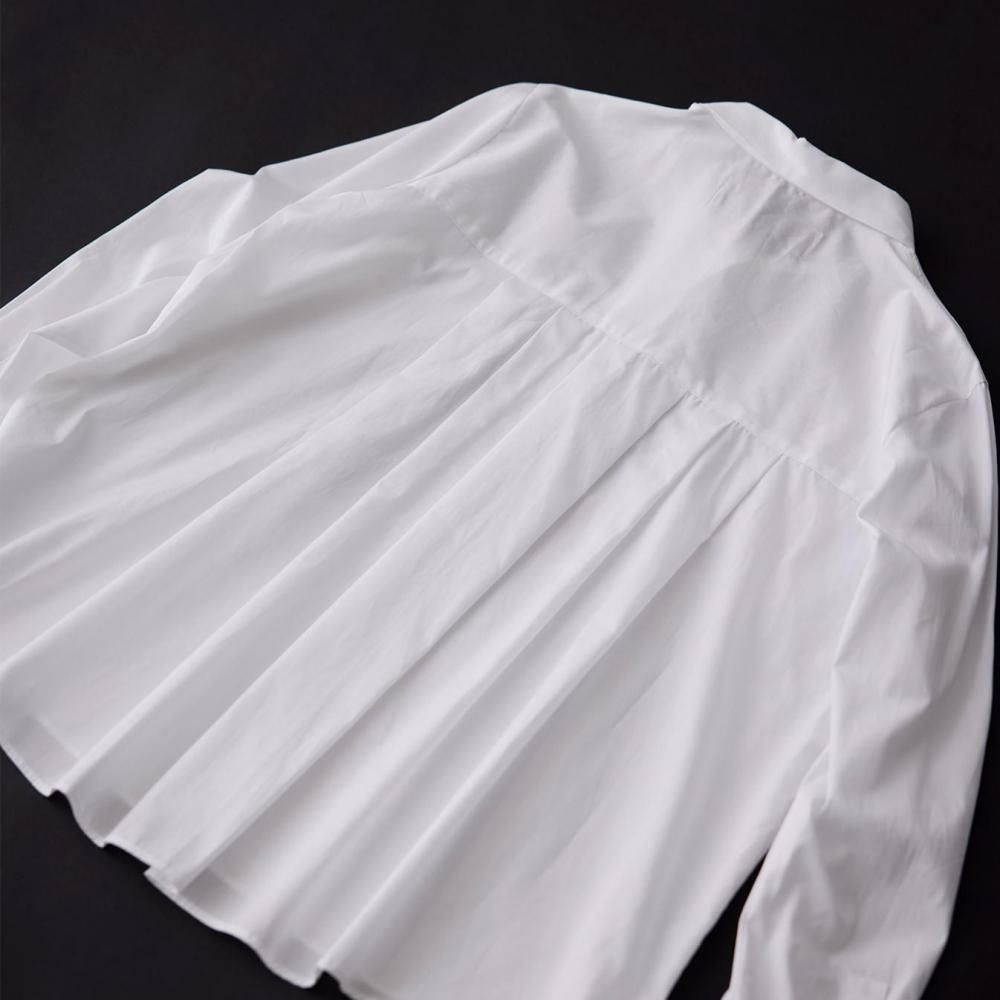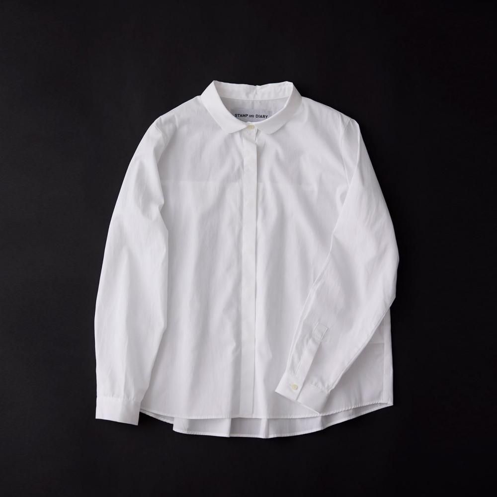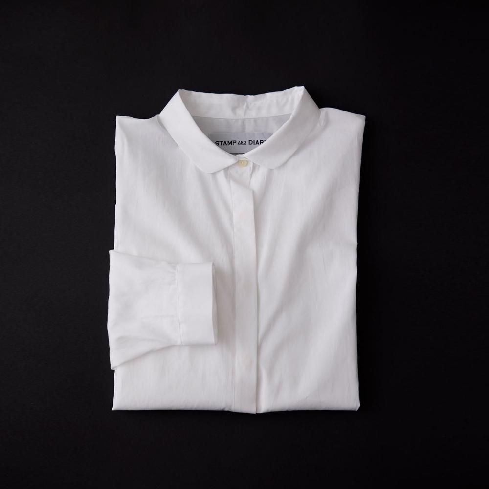 STAMP AND DIARYが大切にしてきた定番デザイン、小さな丸襟と後ろタックを取り入れたバックタックブラウス