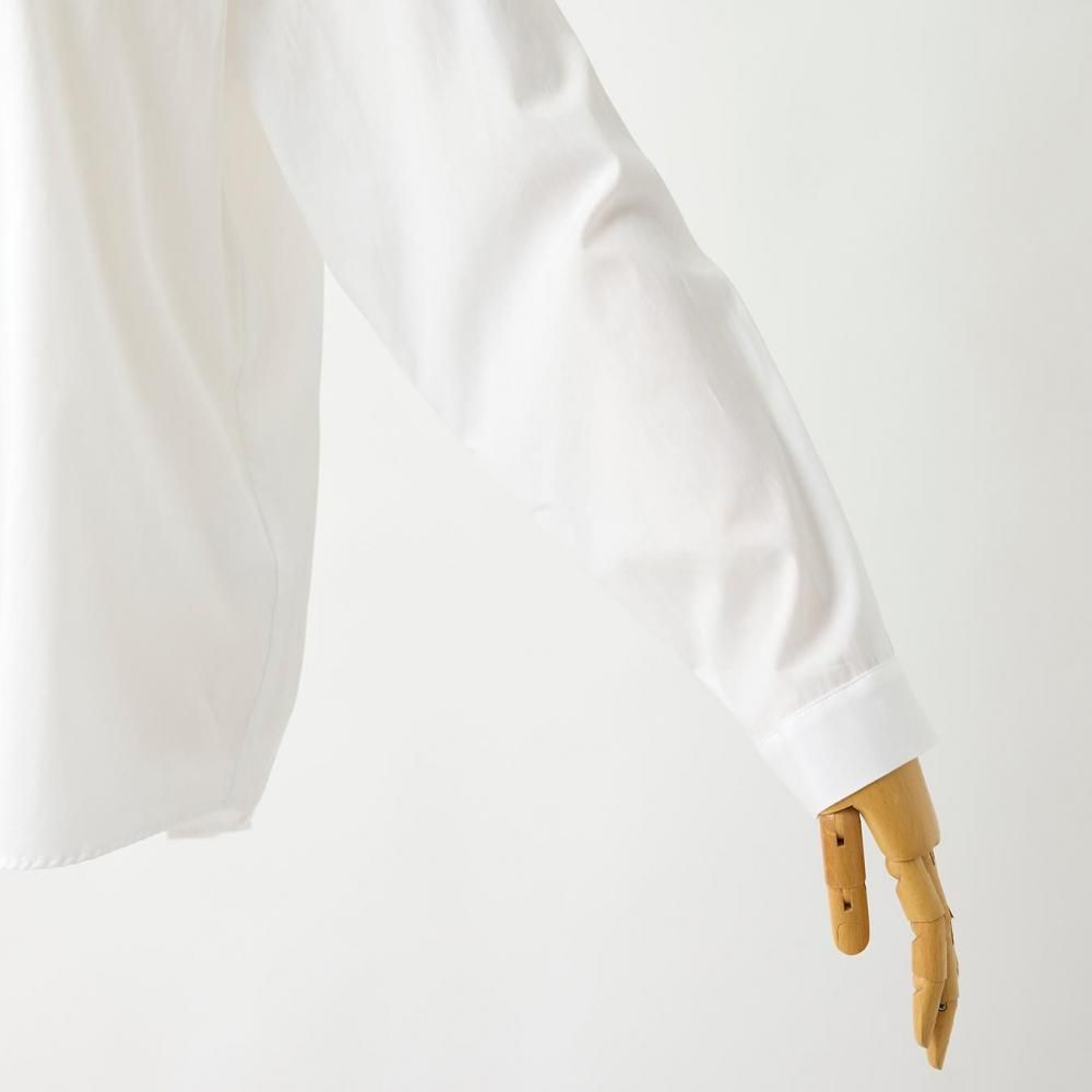 清潔感のあるシロは、顔まわりを明るく見せてくれる万能カラー。どんなスタイルにも合わせやすく、一枚持っていると重宝します。