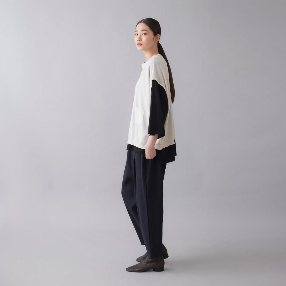 縦糸に強撚のコットン、横糸に強撚のリヨセルを使用することで、ほどよい落ち感のある上品な素材です。