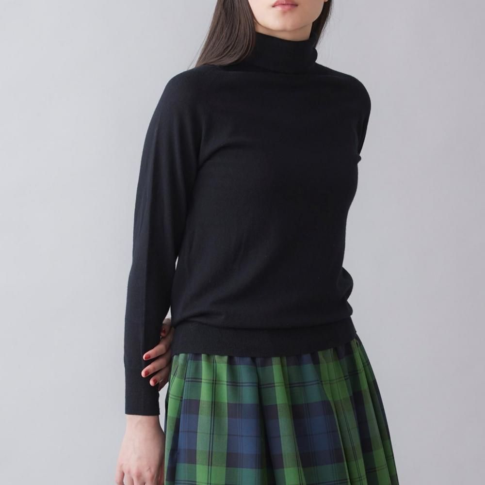一枚でさらりと着ても、カーディガンやジャケットのインナーとしても活躍する、シンプルで着回しやすいタートルネックニットです。薄手で軽やか、タイトすぎないほどよいフィット感がすっきりとしたシルエットをつくります。