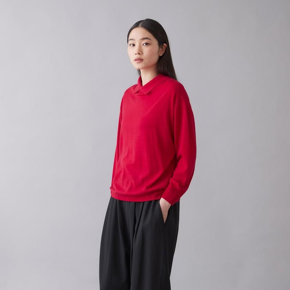 STAMP AND DIARYの冬の定番素材「スムースウール」を使用した、襟付きプルオーバー。