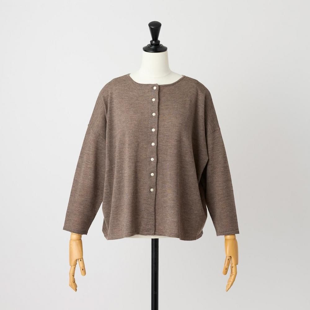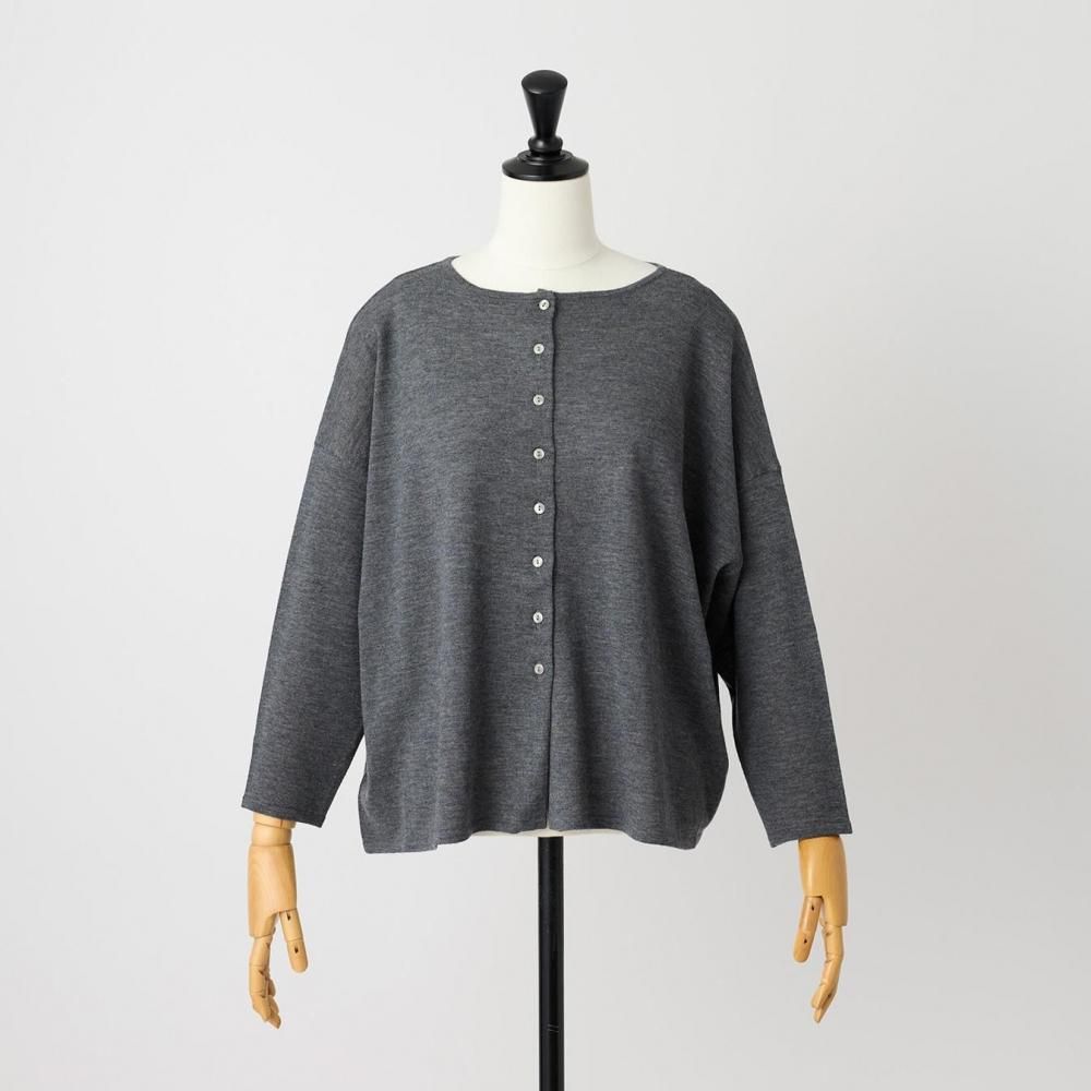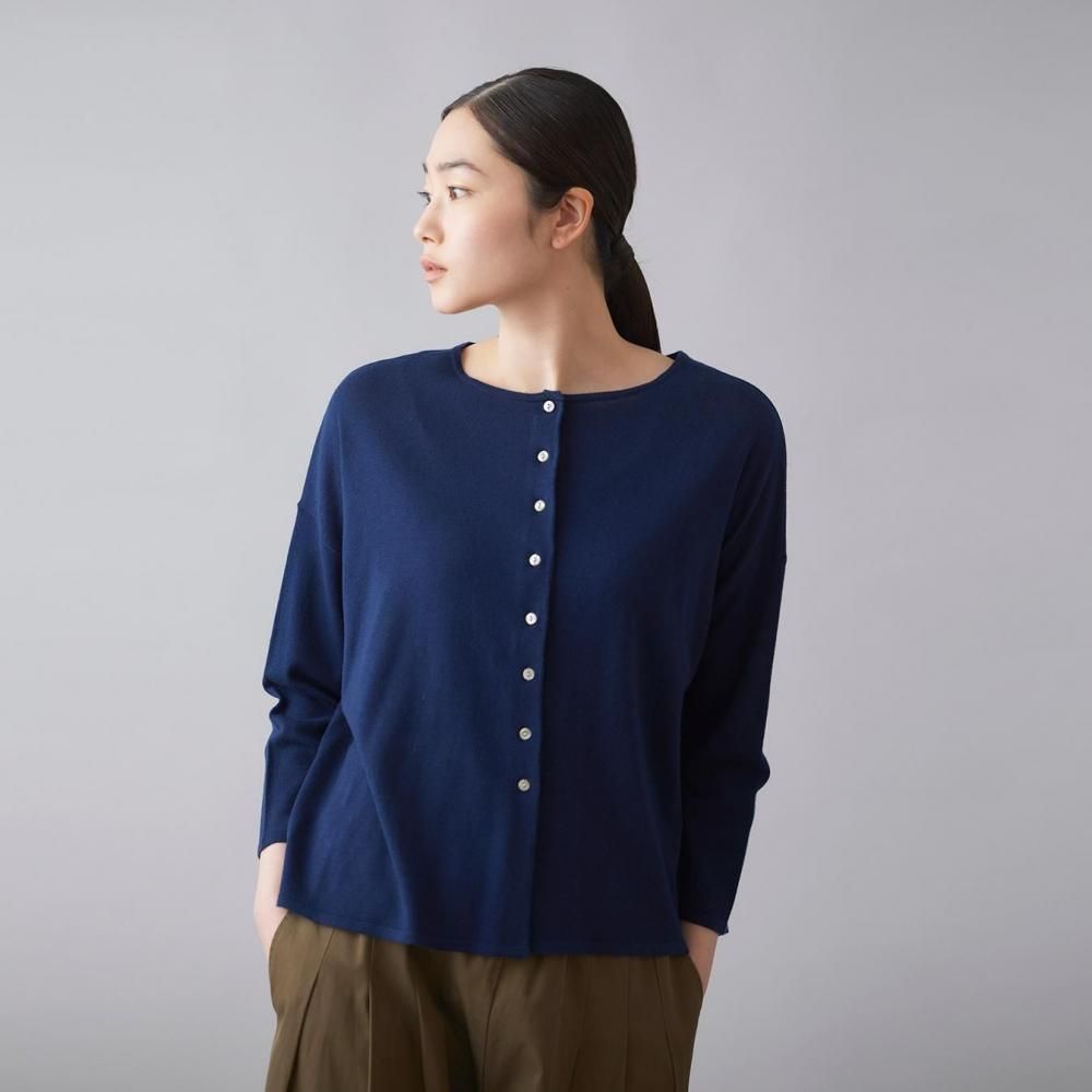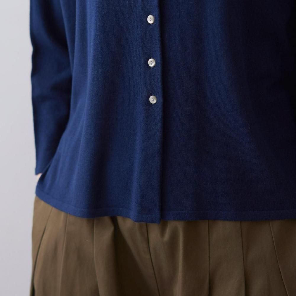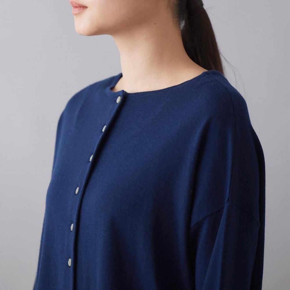 カーディガンとしてはもちろん、ボタンをすべて留めて後ろにまわせば、ワイドシルエットのプルオーバーとしても着られる便利なデザインです。