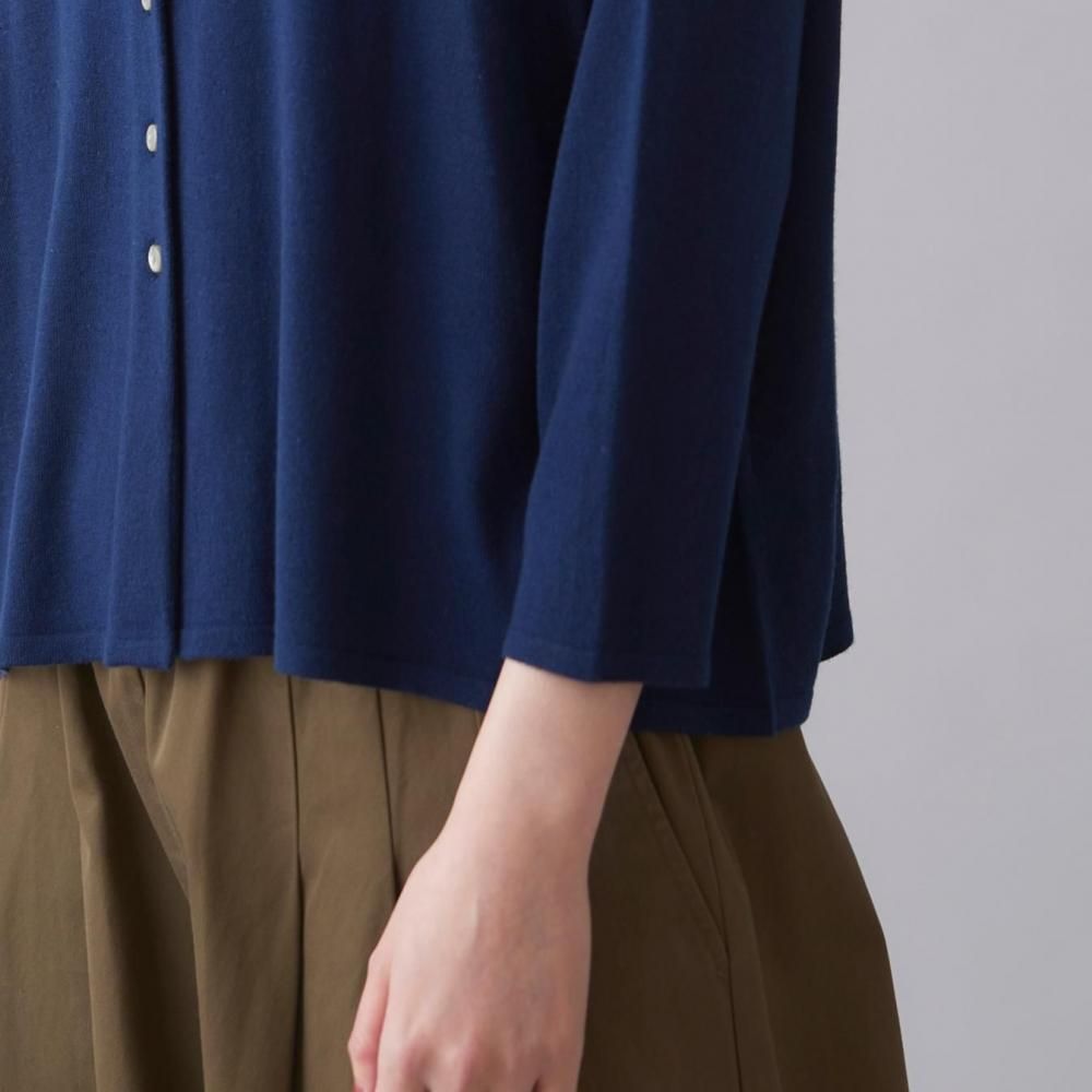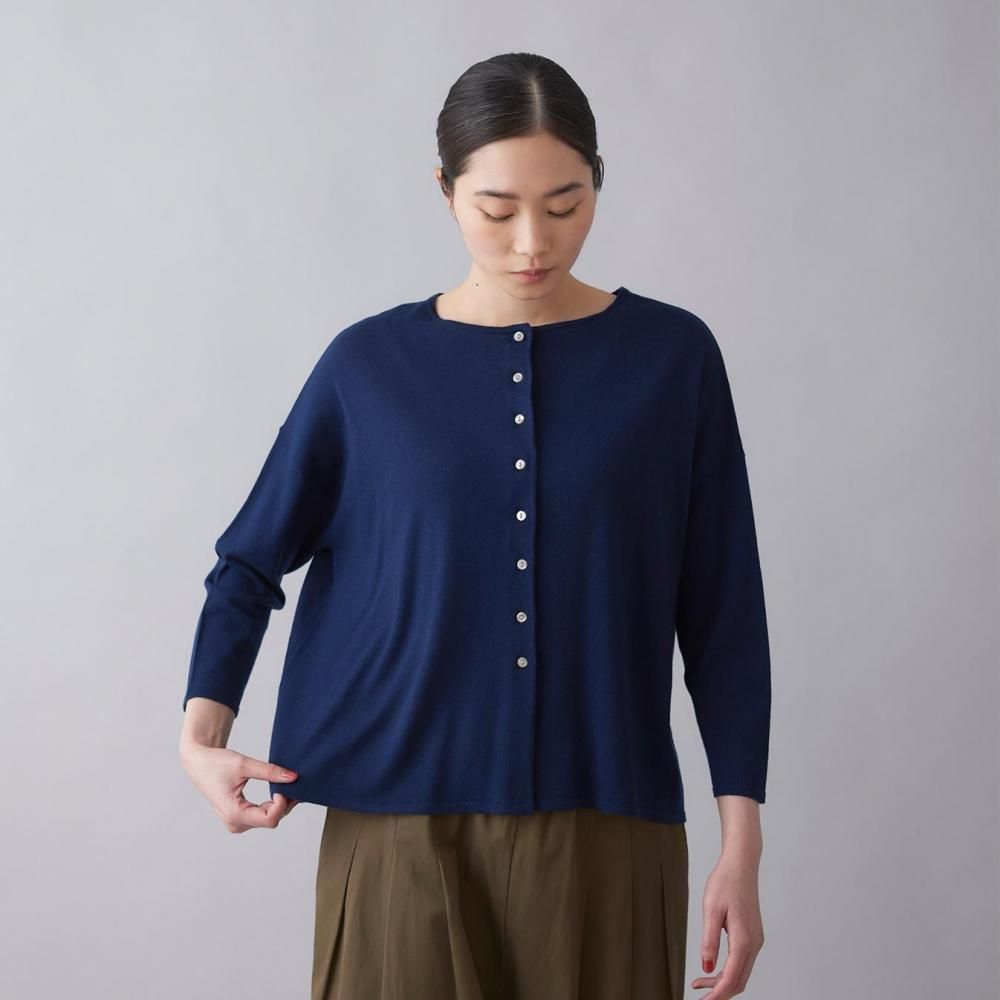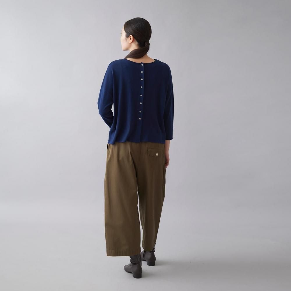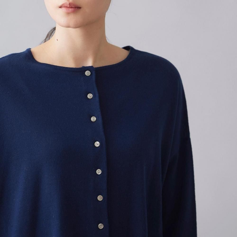 カーディガンとしてはもちろん、ボタンをすべて留めて後ろにまわせば、ワイドシルエットのプルオーバーとしても着られる便利なデザインです。