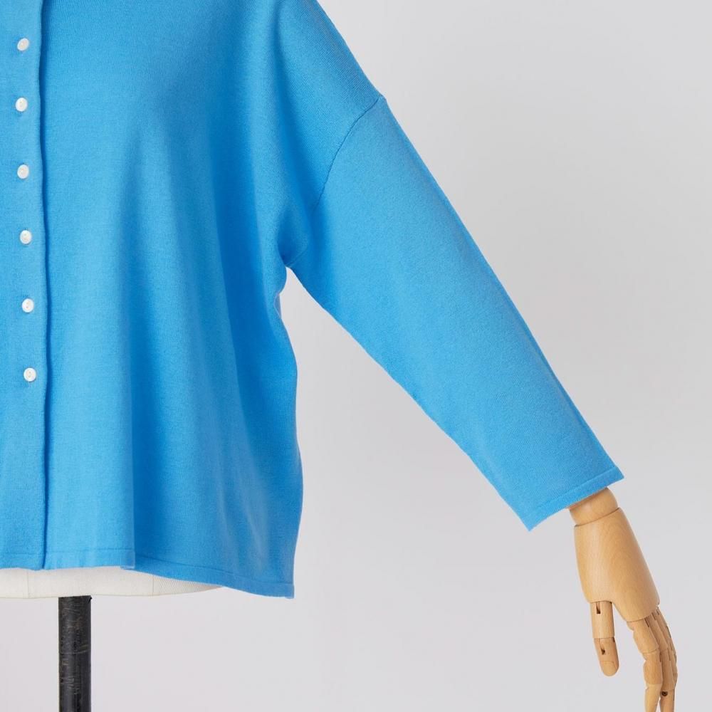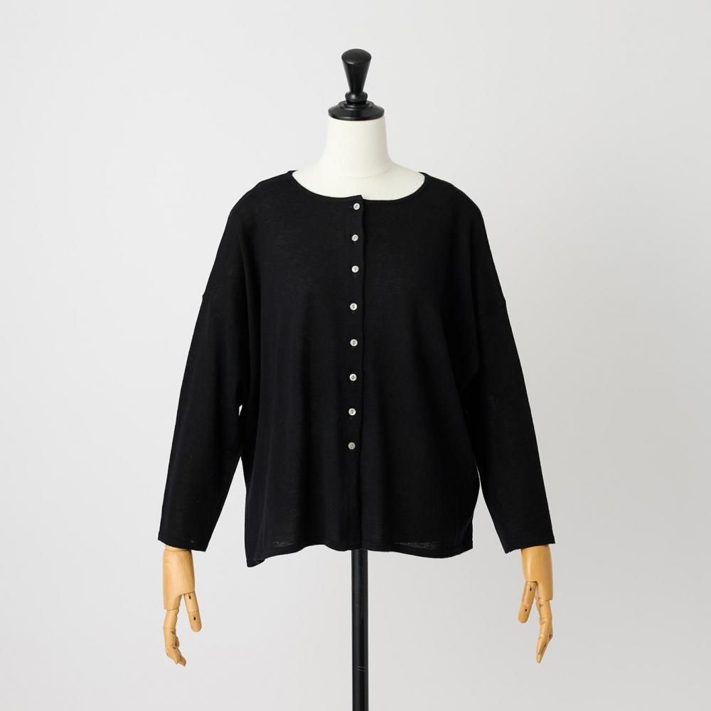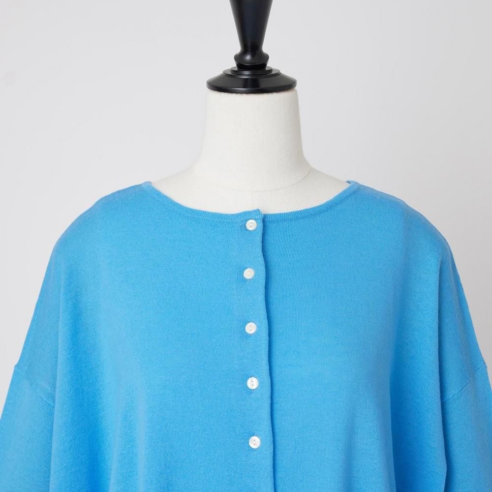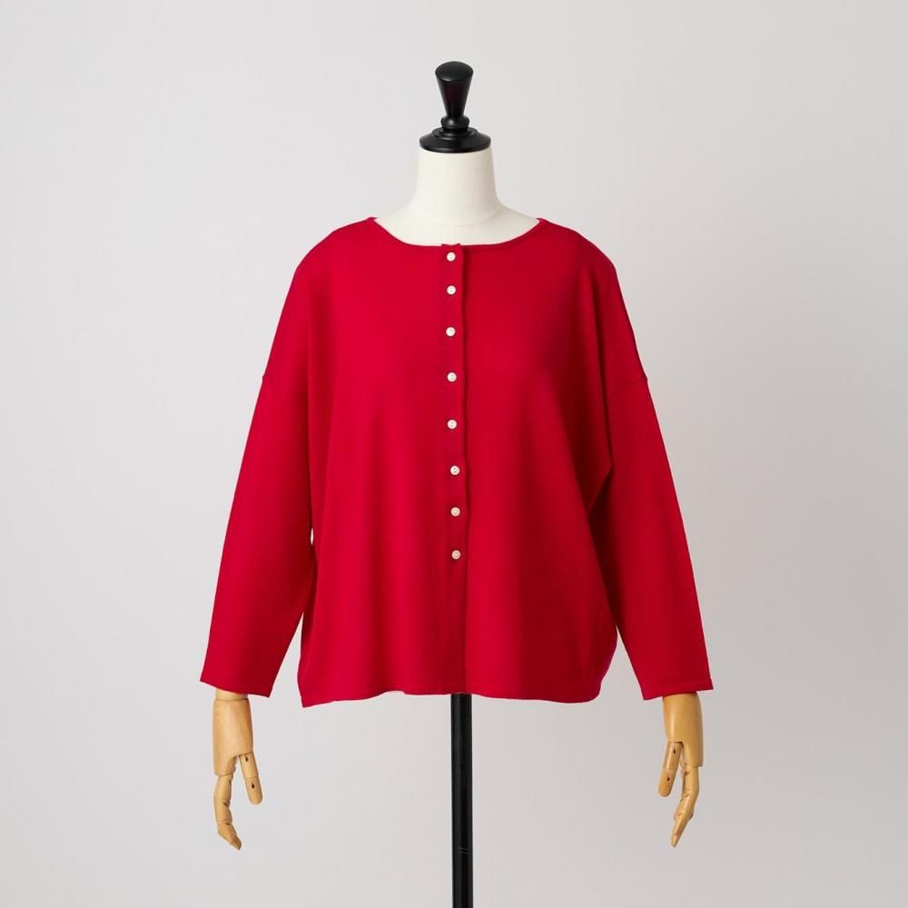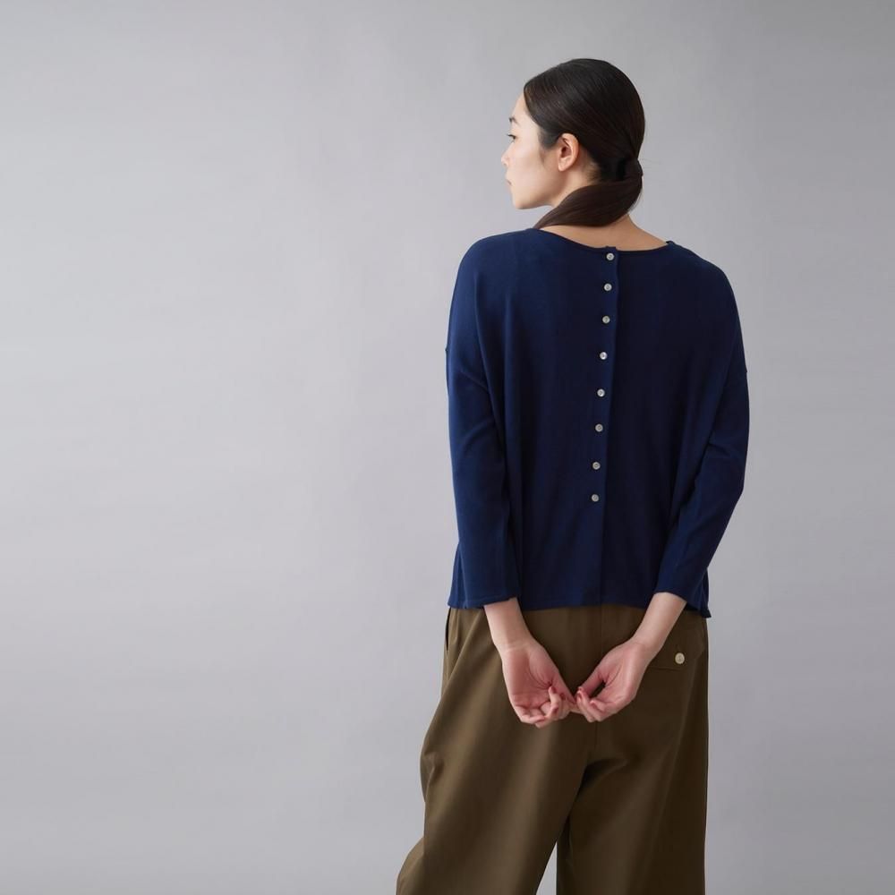 カーディガンとしてはもちろん、ボタンをすべて留めて後ろにまわせば、ワイドシルエットのプルオーバーとしても着られる便利なデザインです。